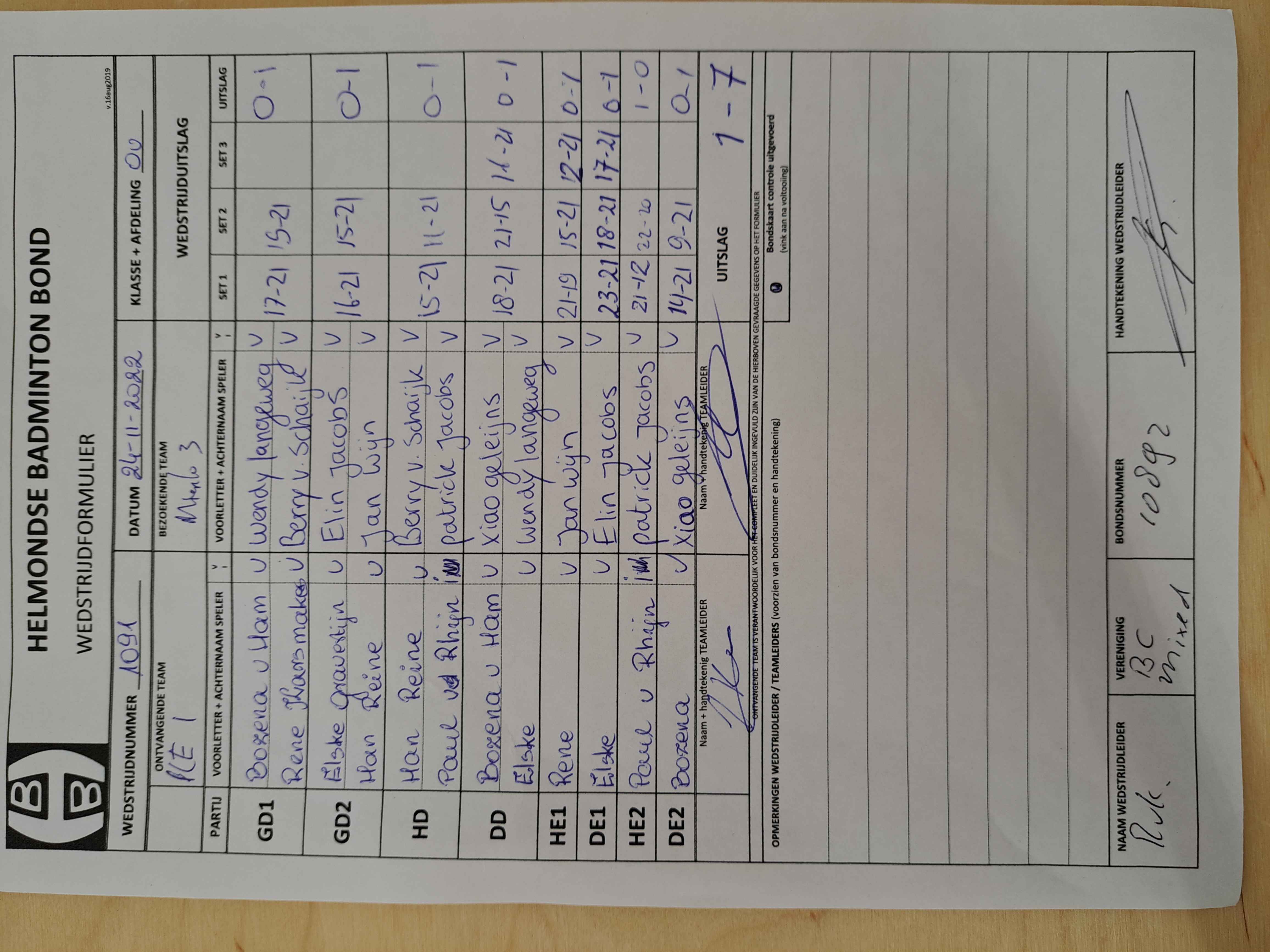 | 1091 | do. 24-11-2022 | Eindhoven 1 | - | Mierlo 3 | 3 | 1 - 7 | |||
