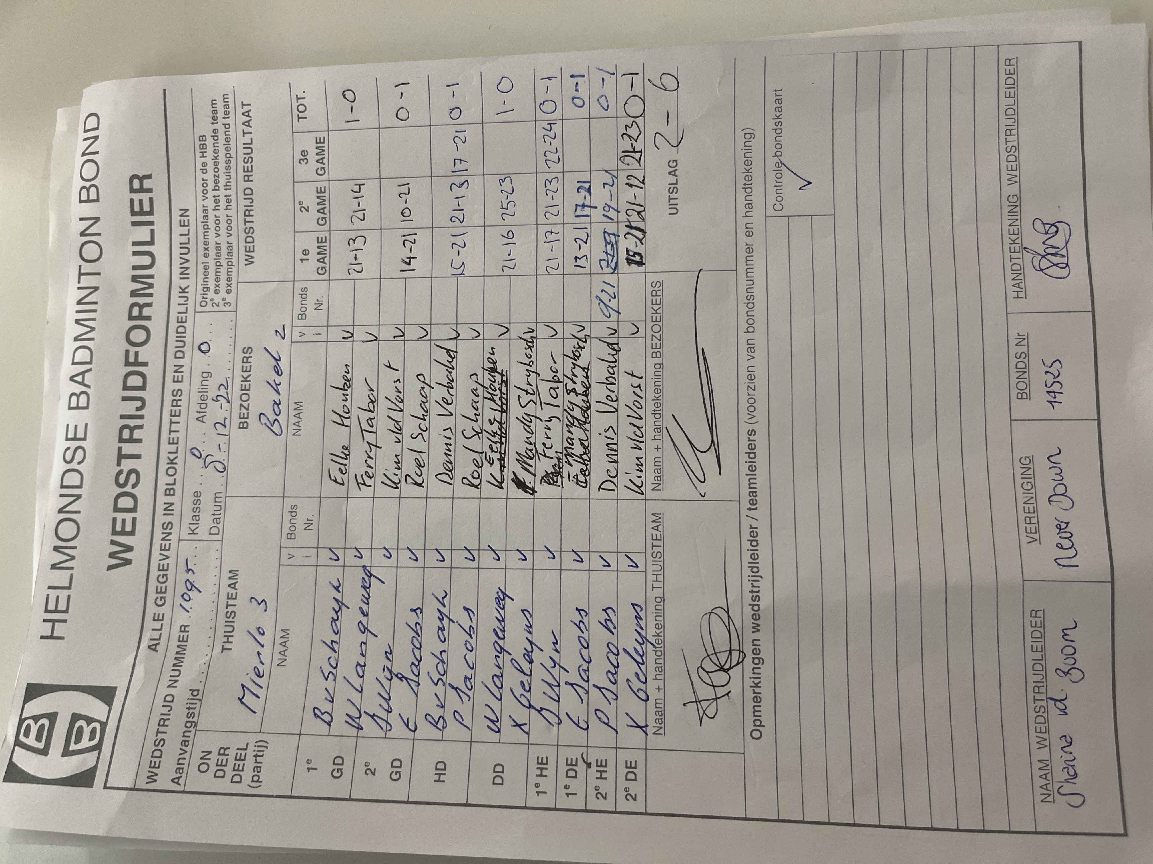 | 1095 | do. 08-12-2022 | Mierlo 3 | - | Bakel 2 | 2 | 2 - 6 | |||