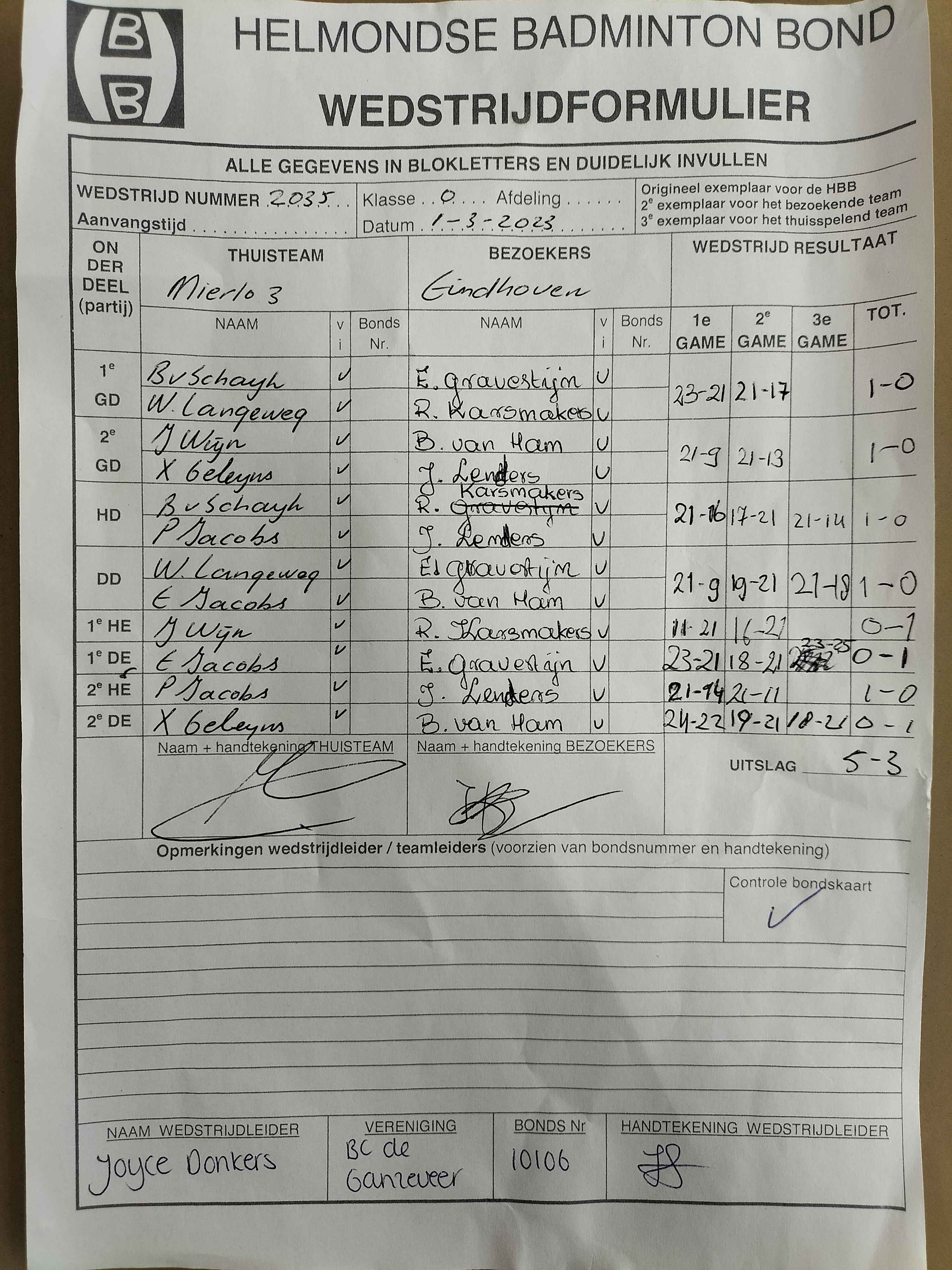 | 2039 | do. 16-03-2023 | Bakel 2 | - | Mierlo 3 | 5 | 7 - 1 | |||