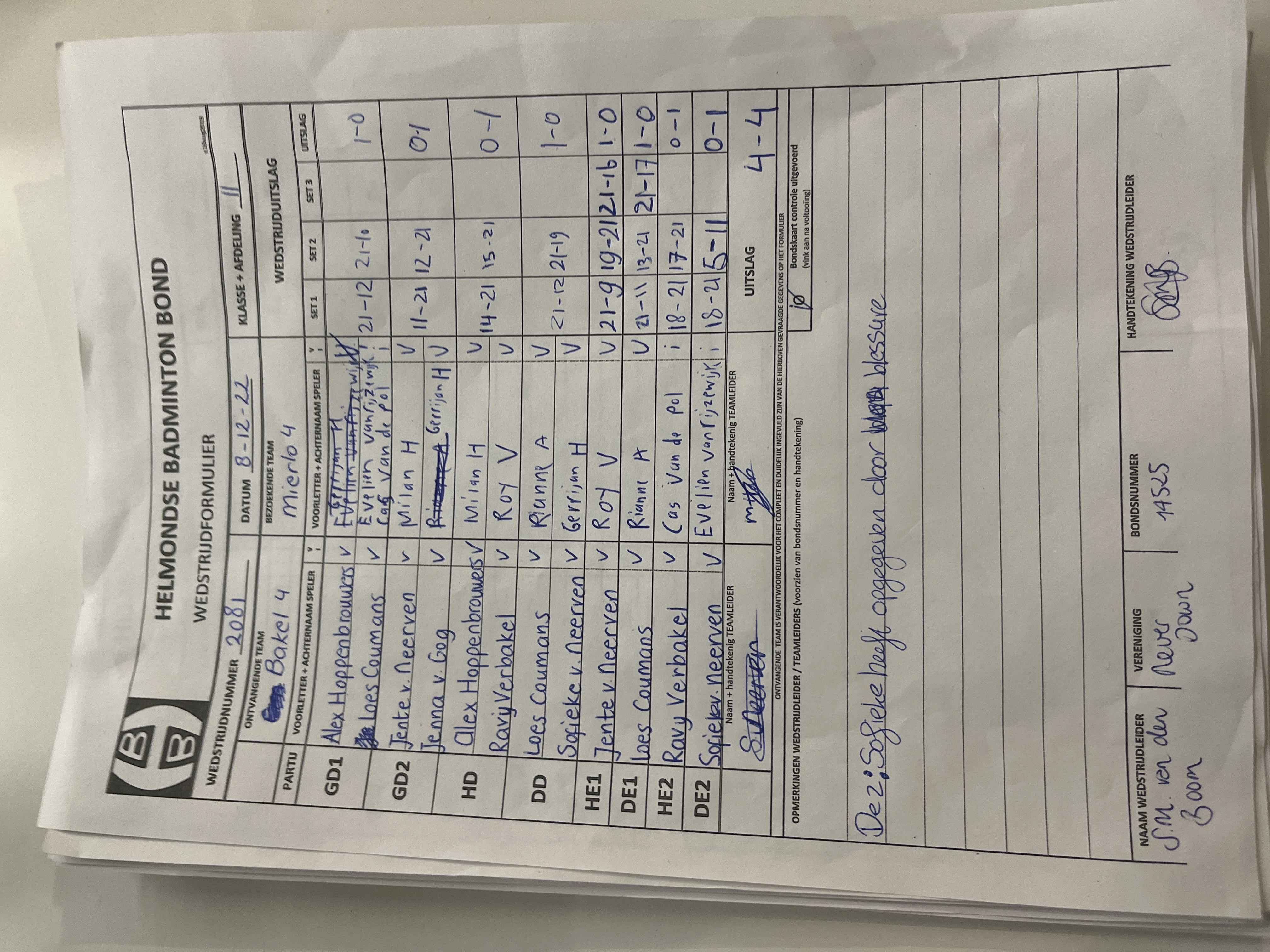 | 2081 | do. 08-12-2022 | Bakel 4 | - | Mierlo 4 | 14 | 4 - 4 | |||