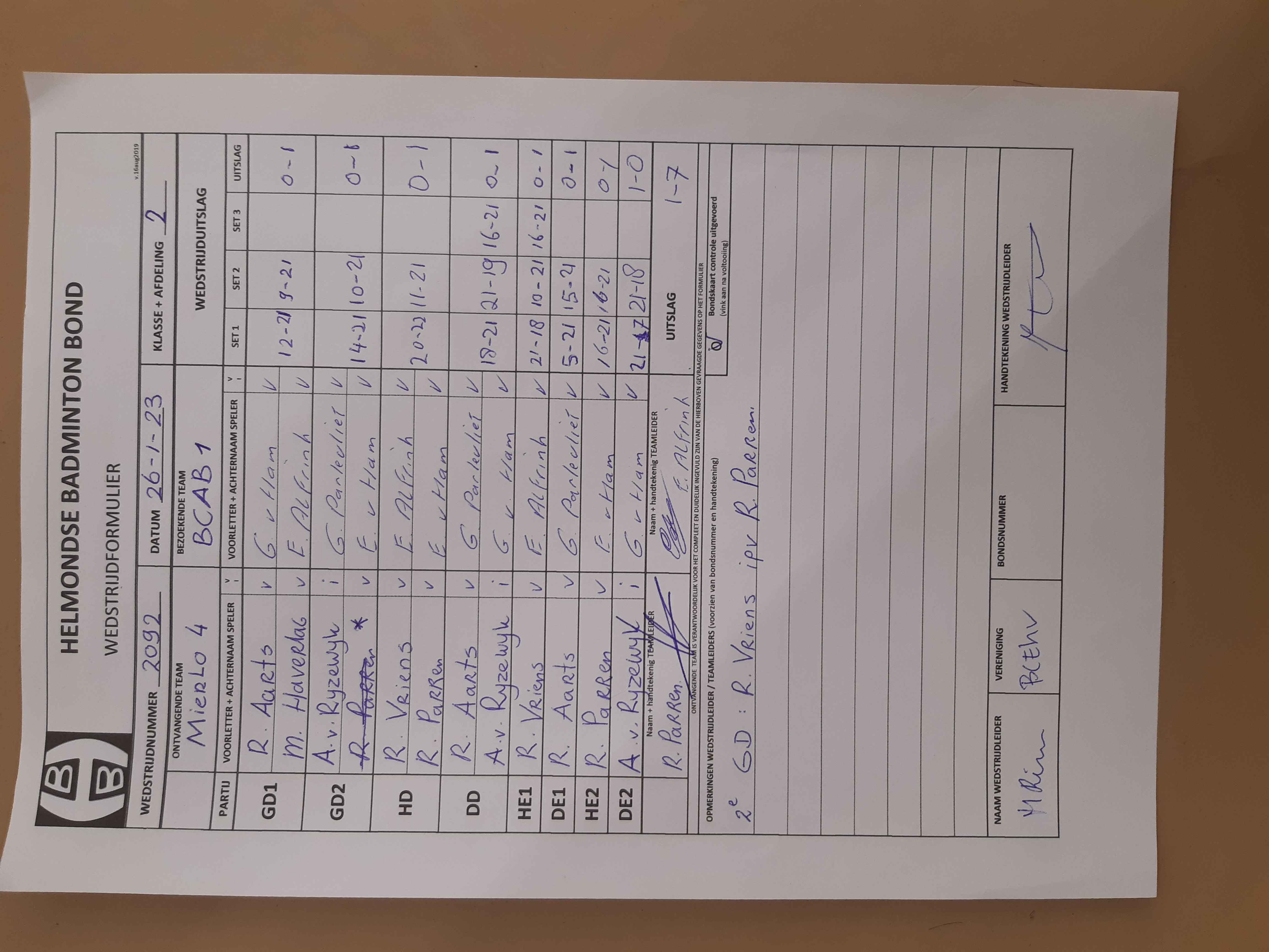 | 2092 | do. 26-01-2023 | Mierlo 4 | - | BCAB 1 | 14 | 1 - 7 | |||