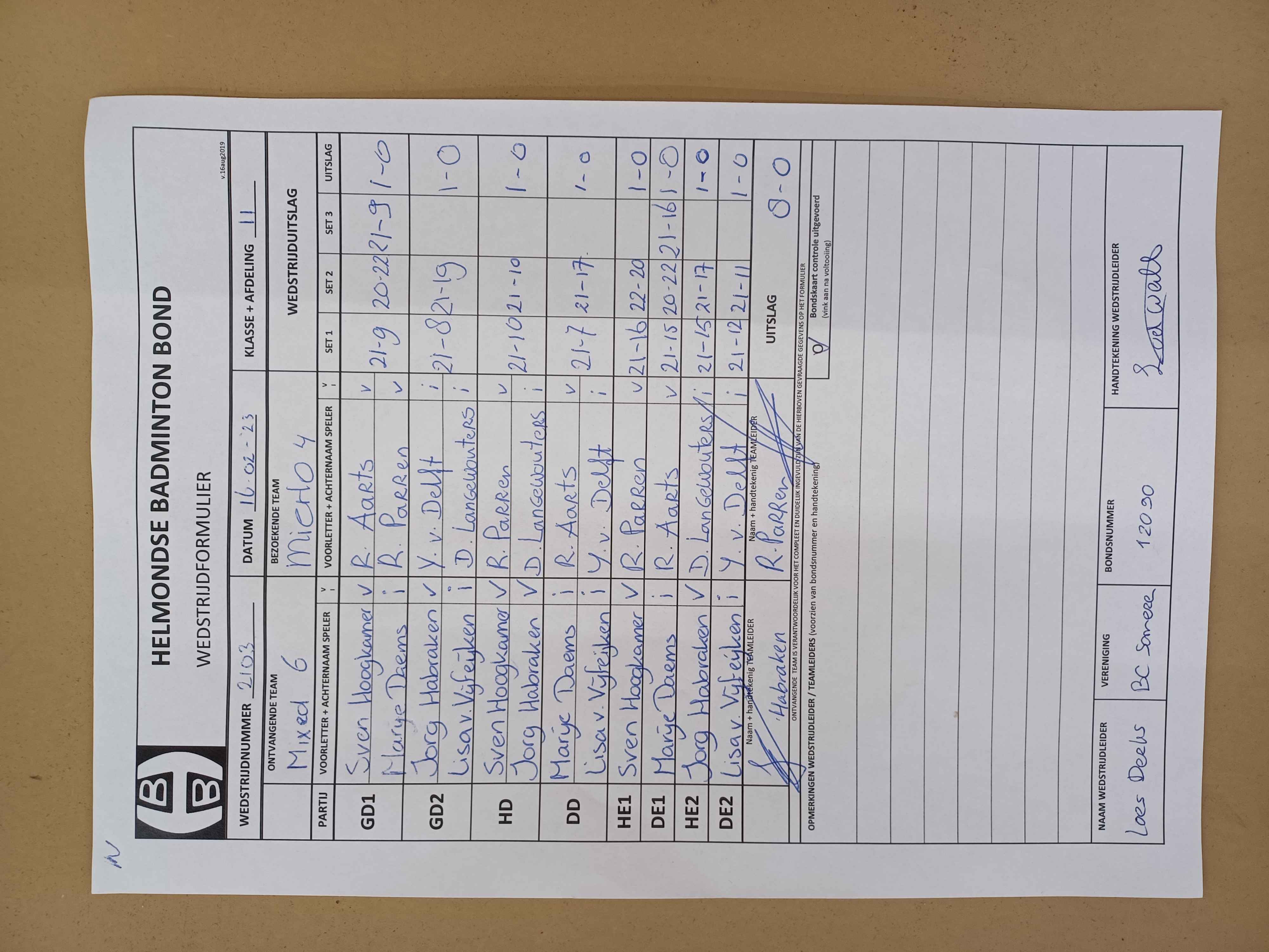 | 2103 | do. 16-02-2023 | Mixed 6 | - | Mierlo 4 | 15 | 8 - 0 | |||