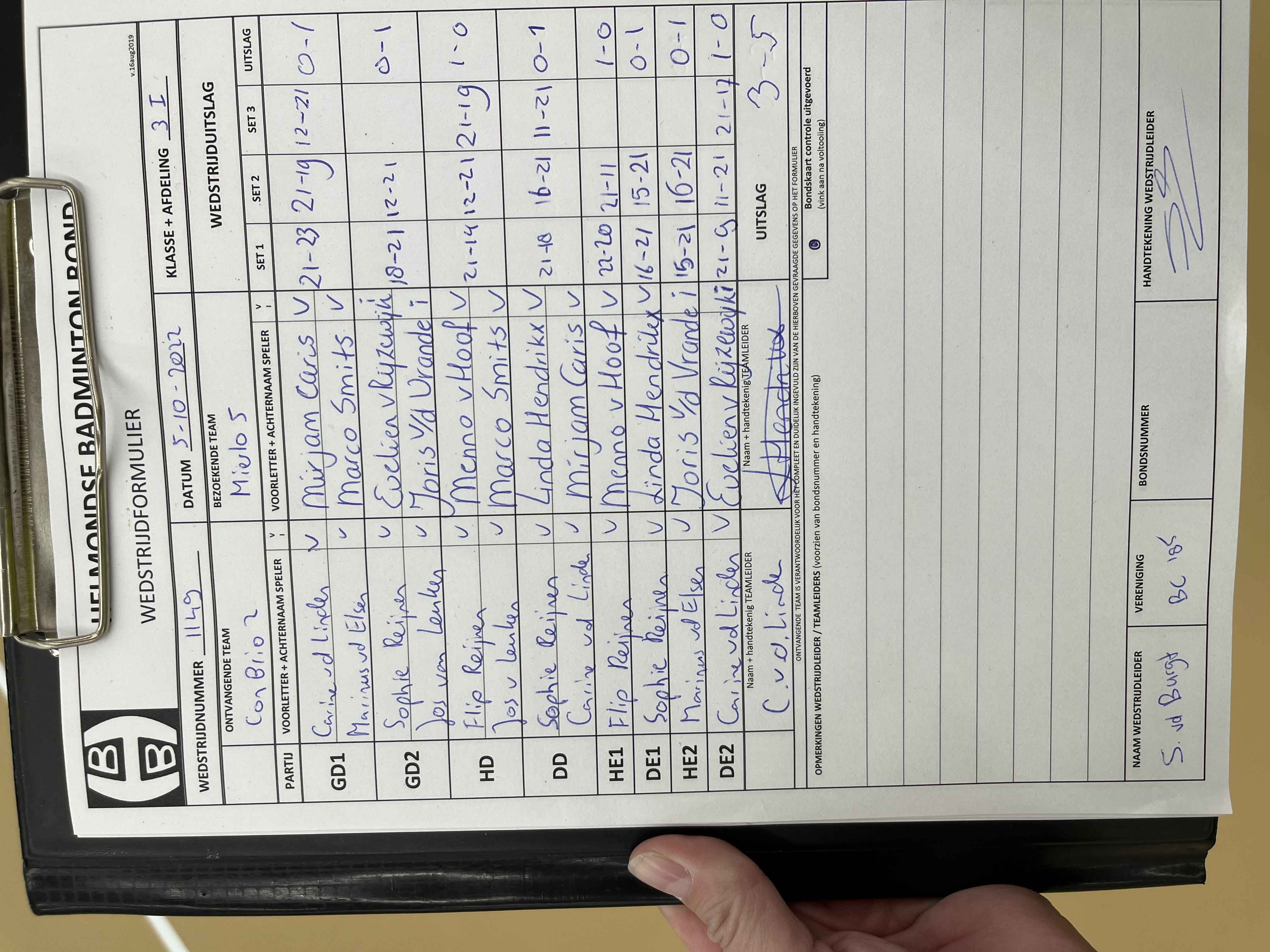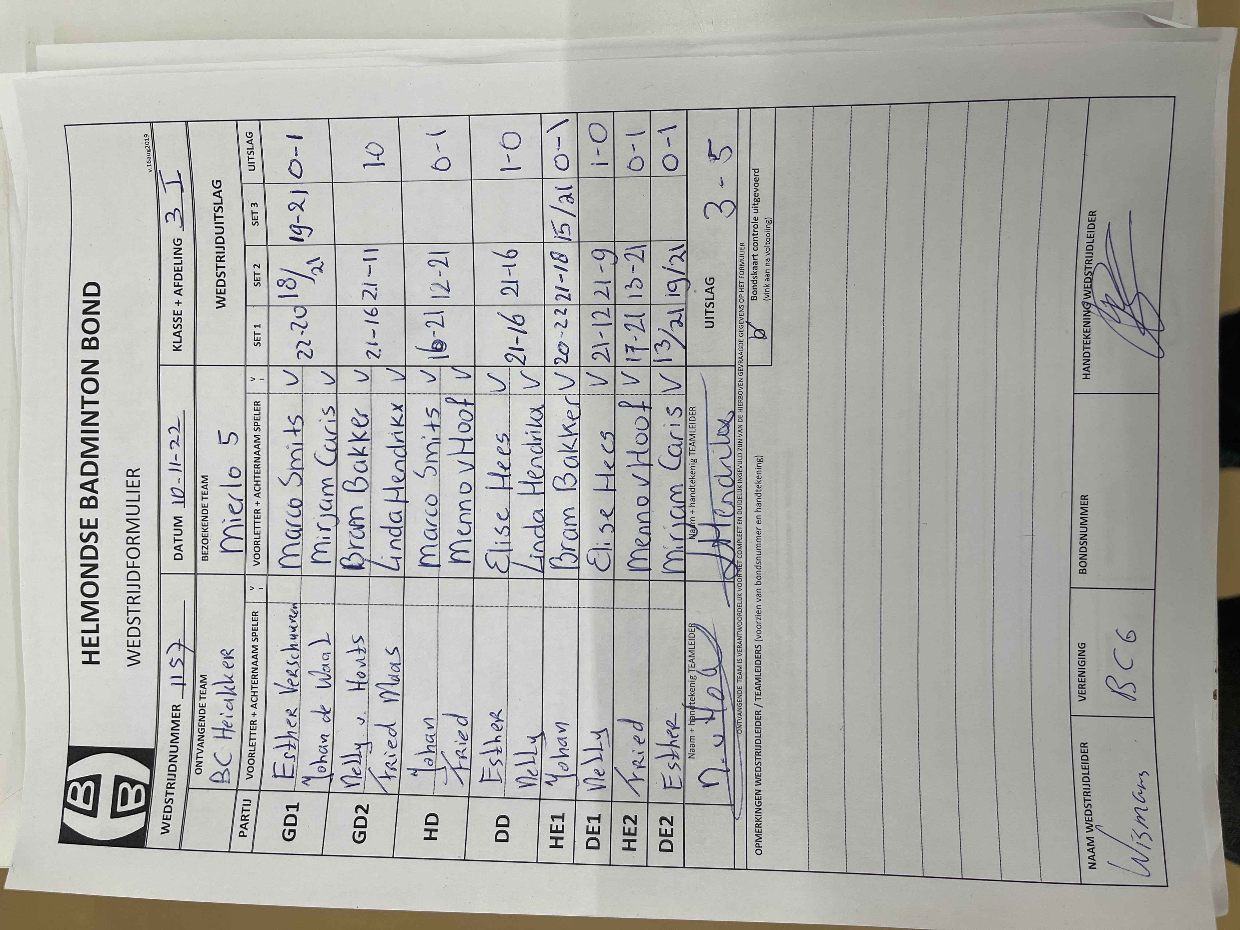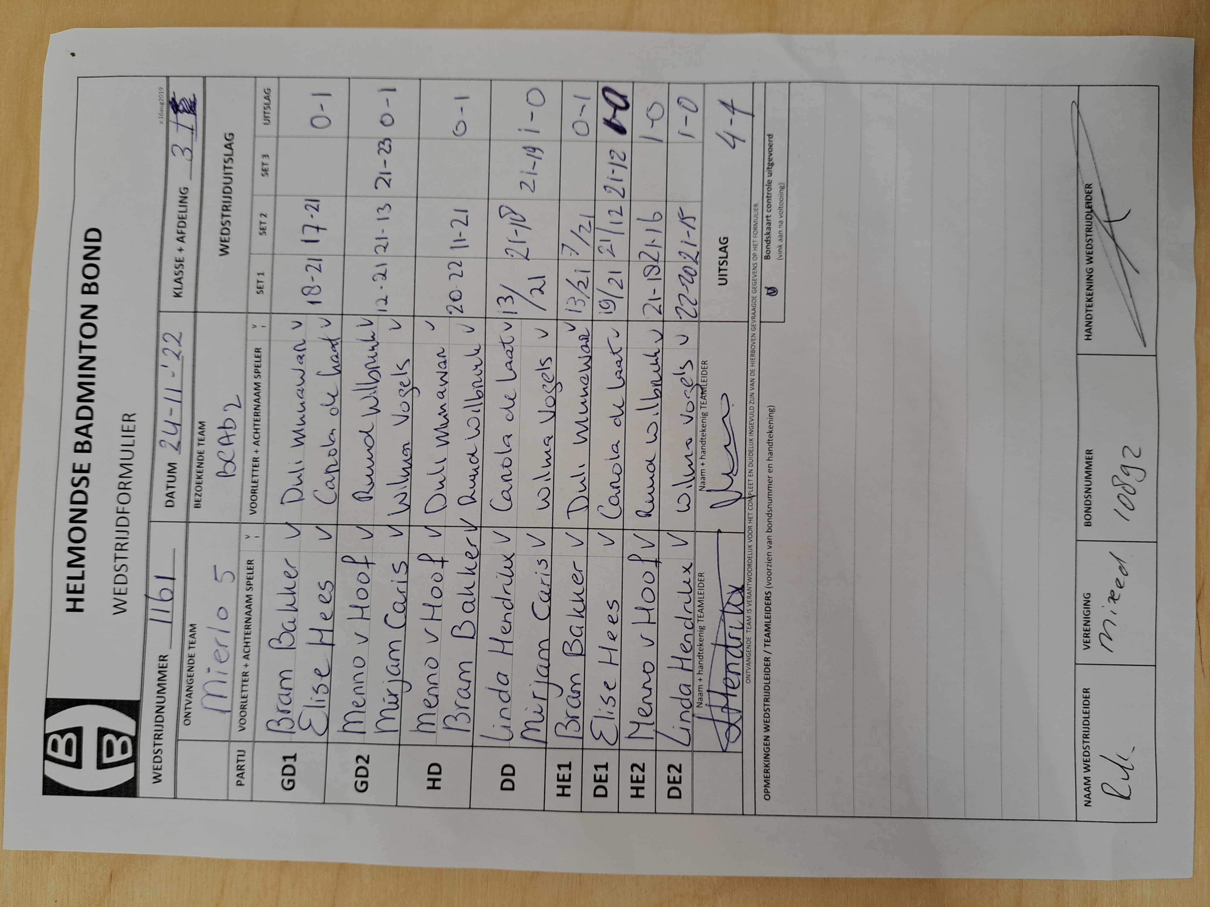 | 1161 | do. 24-11-2022 | Mierlo 5 | - | BCAB 2 | 5 | 4 - 4 | |||