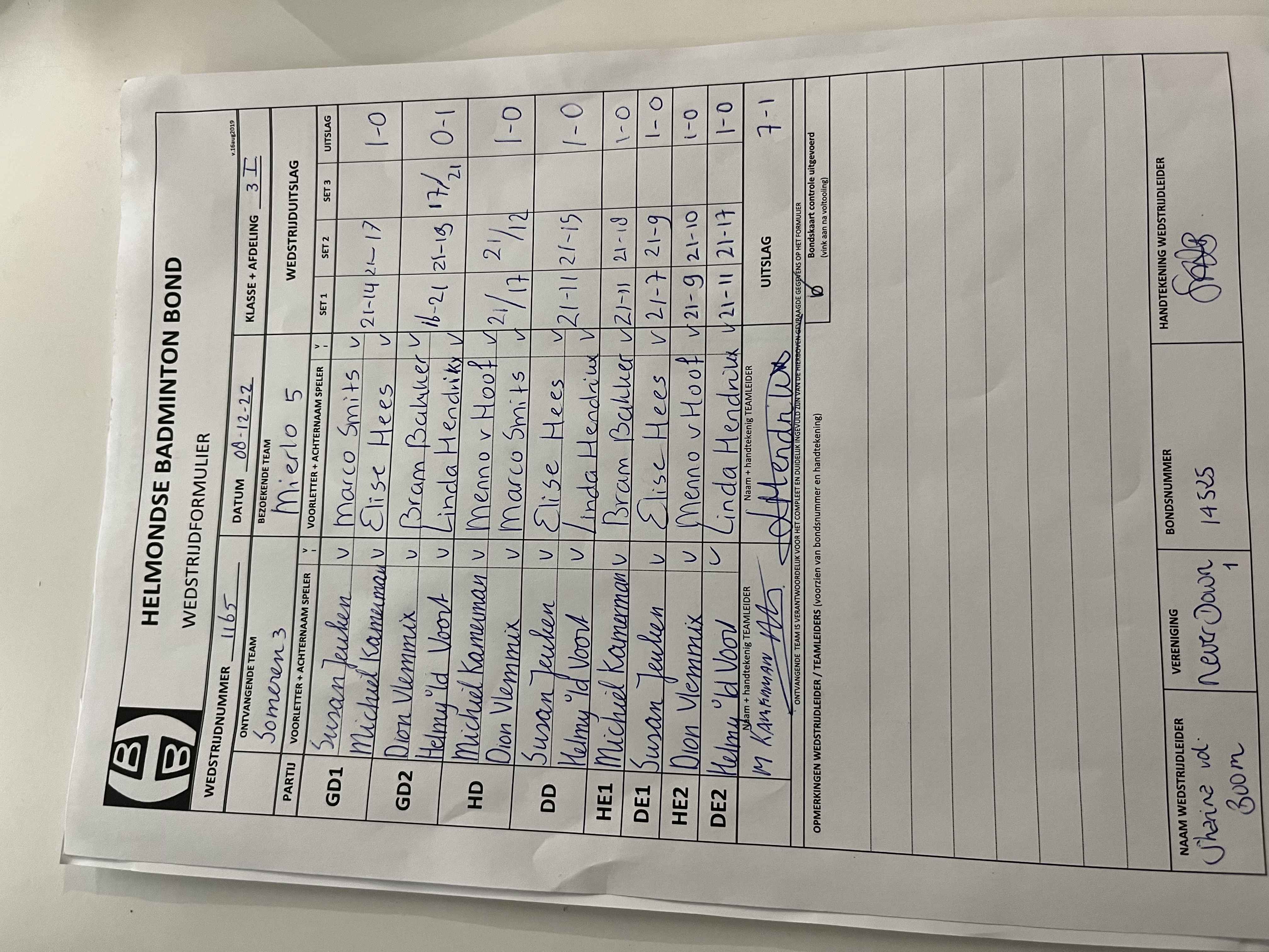 | 1165 | do. 08-12-2022 | Someren 3 | - | Mierlo 5 | 3 | 7 - 1 | |||