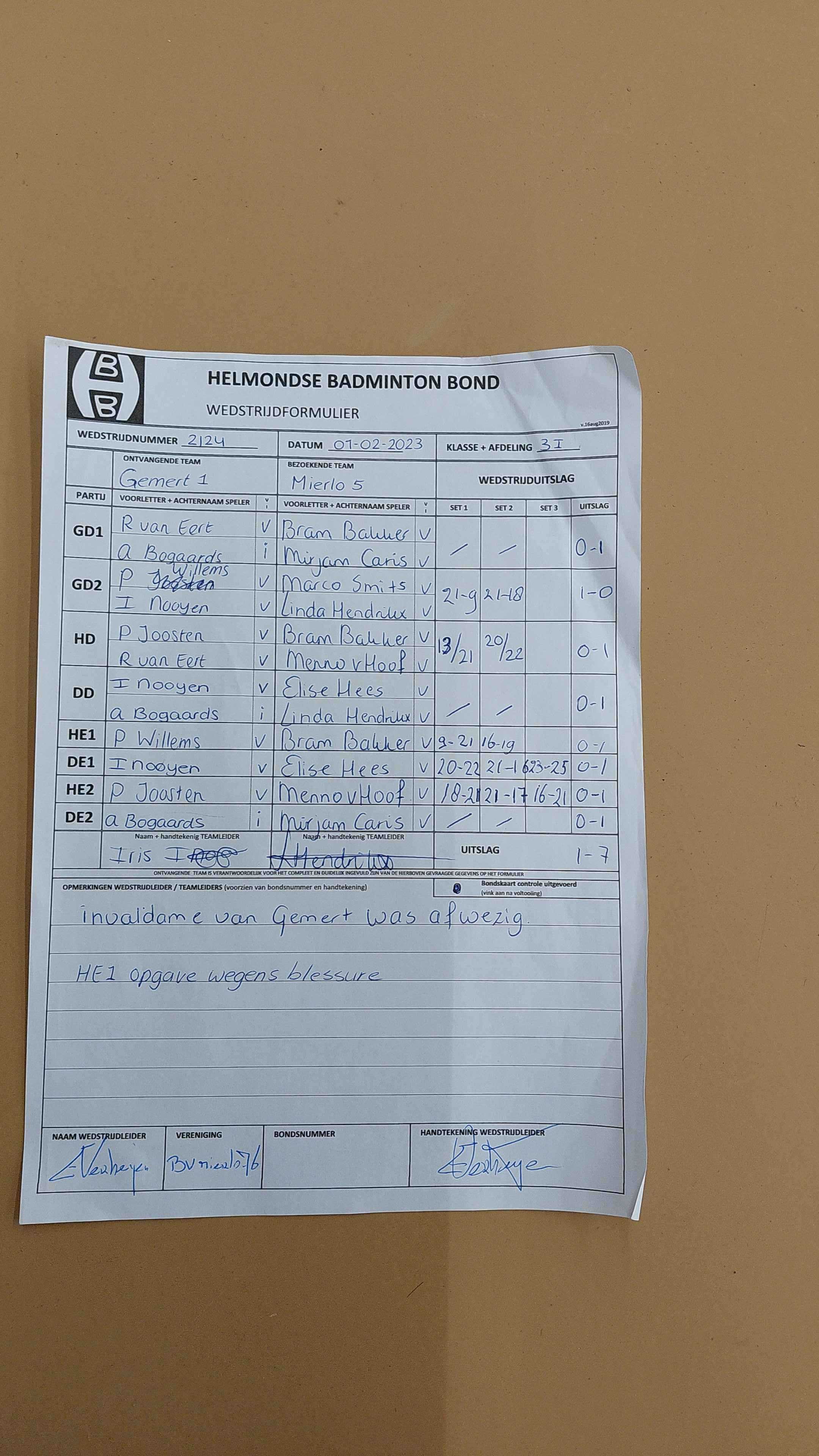 | 2124 | wo. 01-02-2023 | Gemert 1 | - | Mierlo 5 | 2 | 1 - 7 | |||