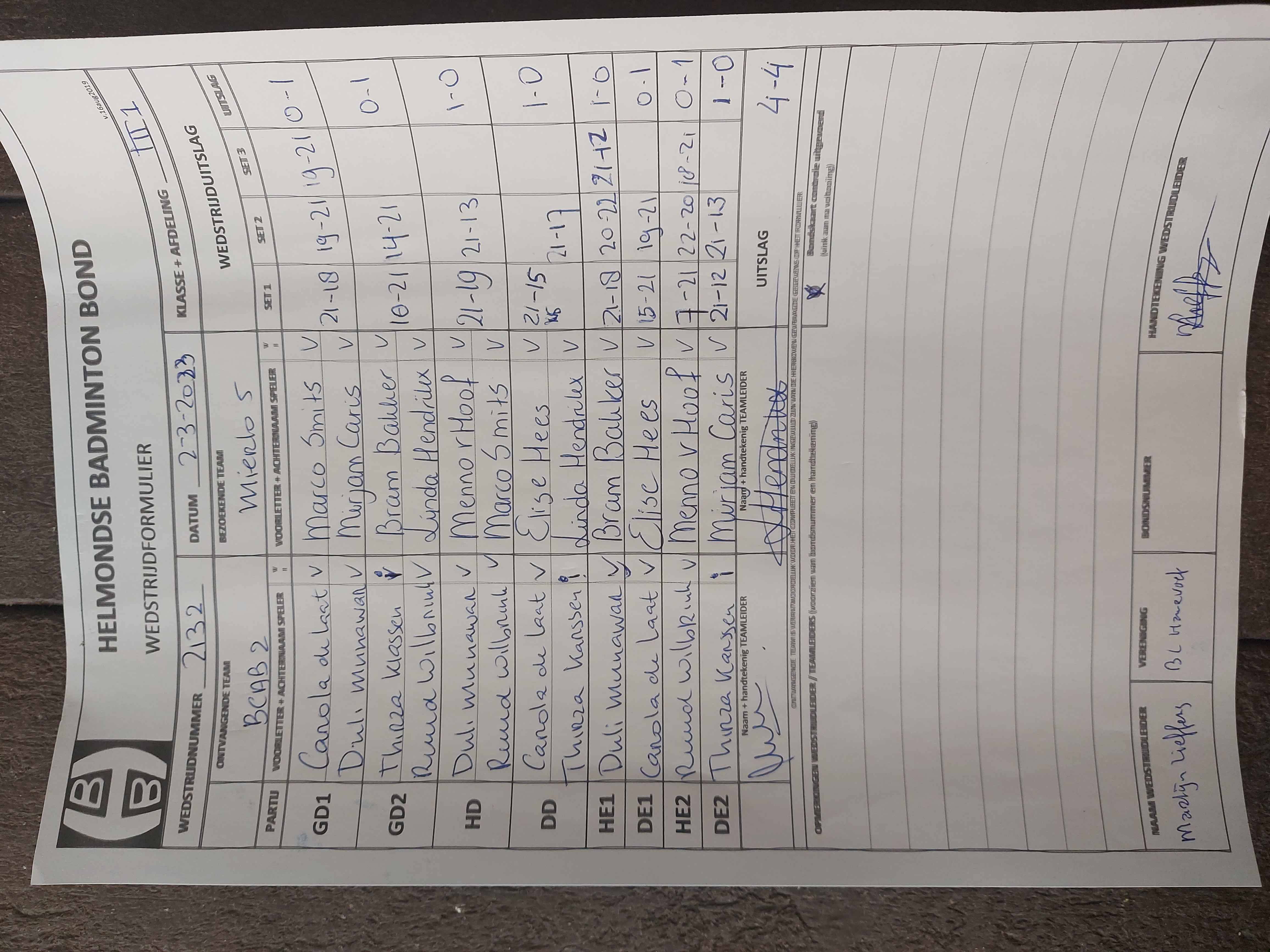 | 2132 | do. 02-03-2023 | BCAB 2 | - | Mierlo 5 | 4 | 4 - 4 | |||