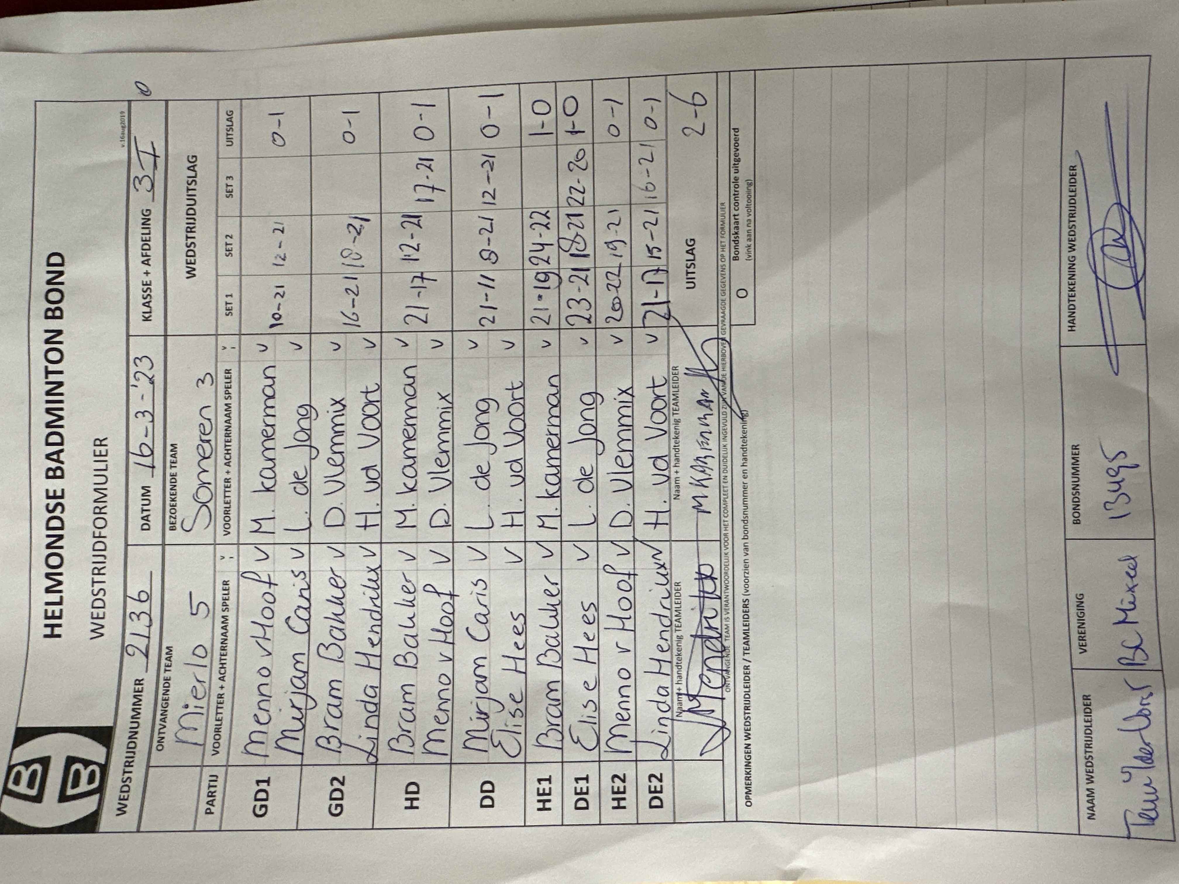 | 2136 | do. 16-03-2023 | Mierlo 5 | - | Someren 3 | 11 | 2 - 6 | |||
