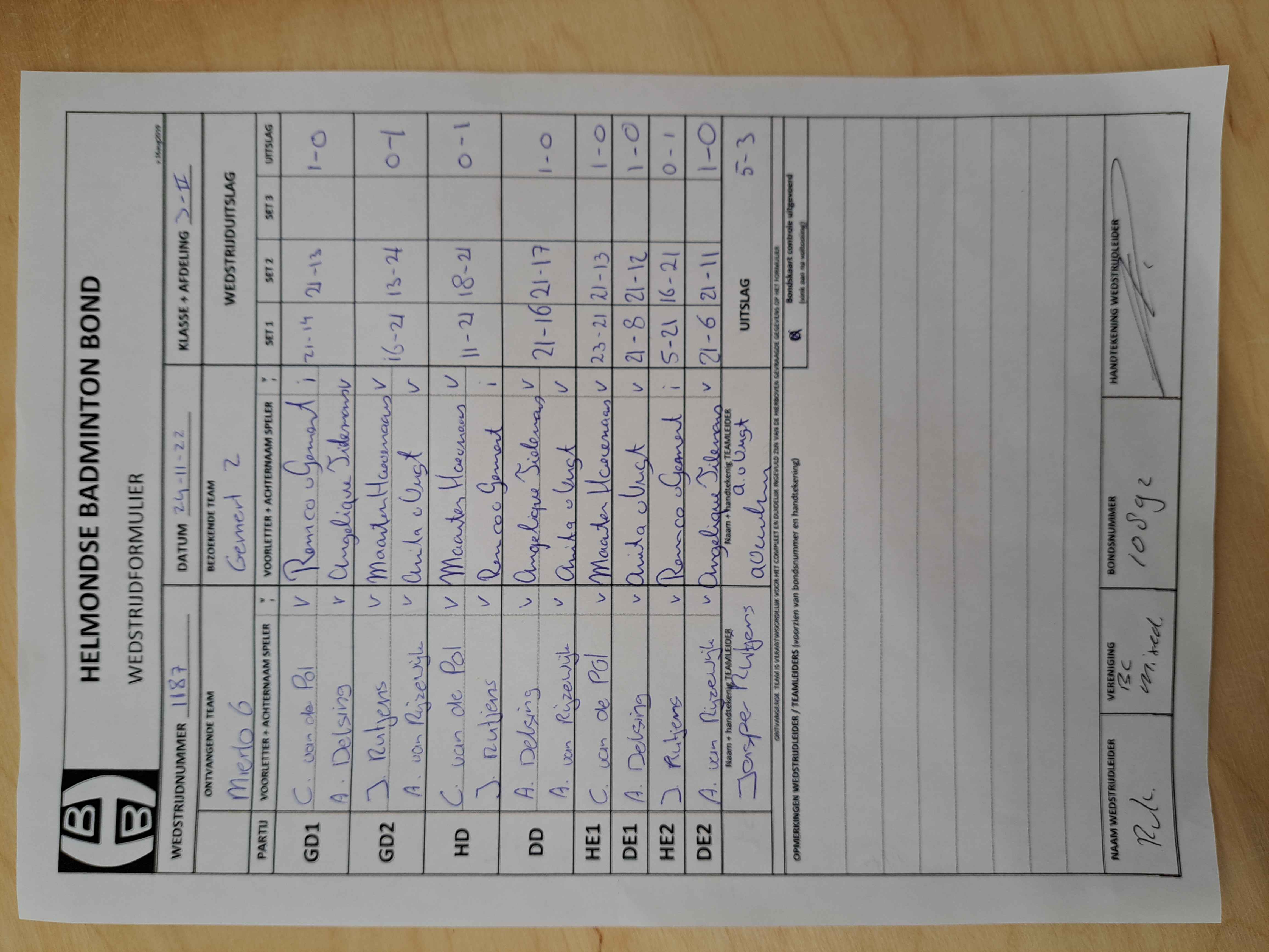 | 1187 | do. 24-11-2022 | Mierlo 6 | - | Gemert 2 | 13 | 5 - 3 | |||