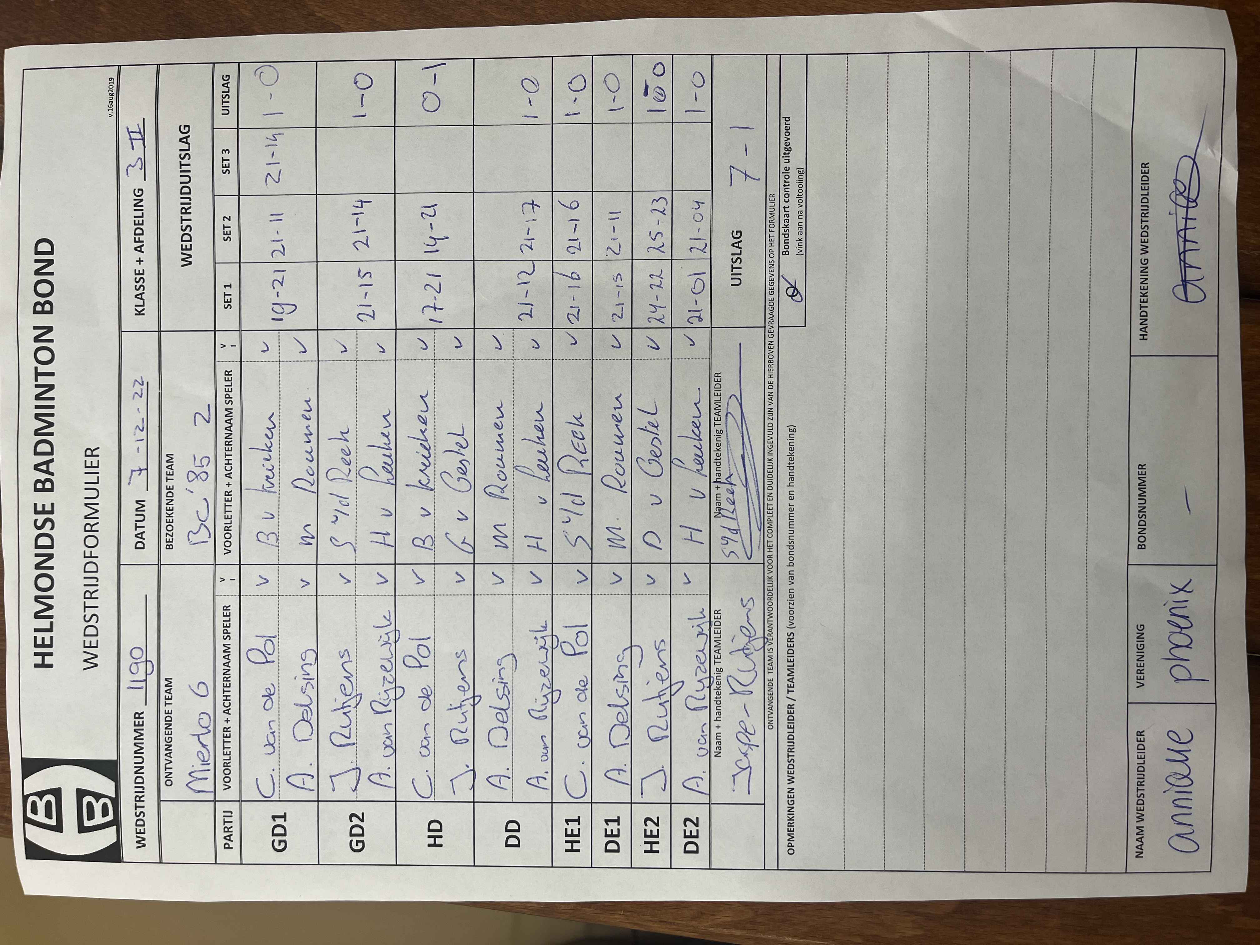 | 1190 | wo. 07-12-2022 | Mierlo 6 | - | BC '85 2 | 2 | 7 - 1 | |||