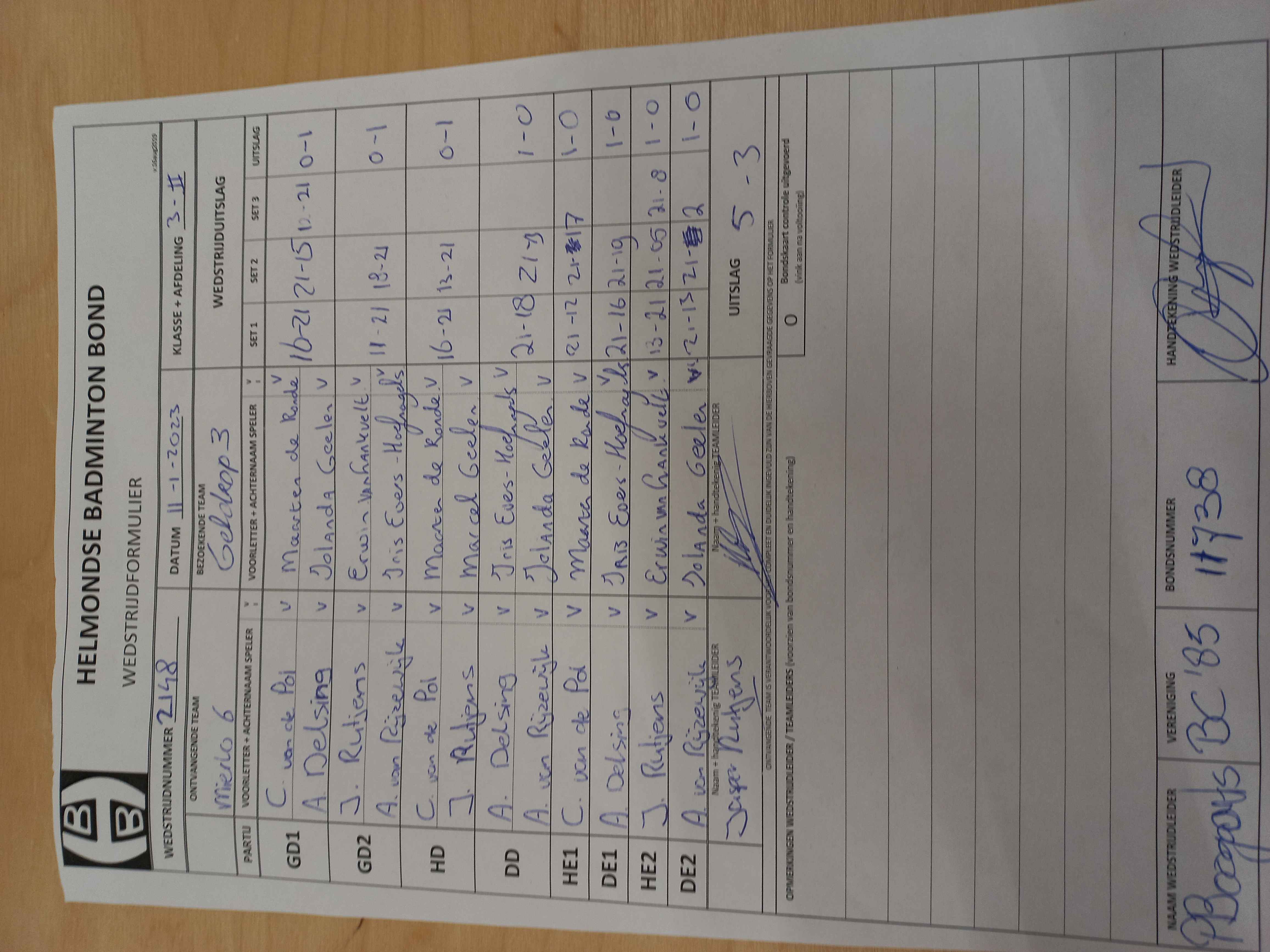 | 2148 | wo. 11-01-2023 | Mierlo 6 | - | Geldrop 3 | 3 | 5 - 3 | |||