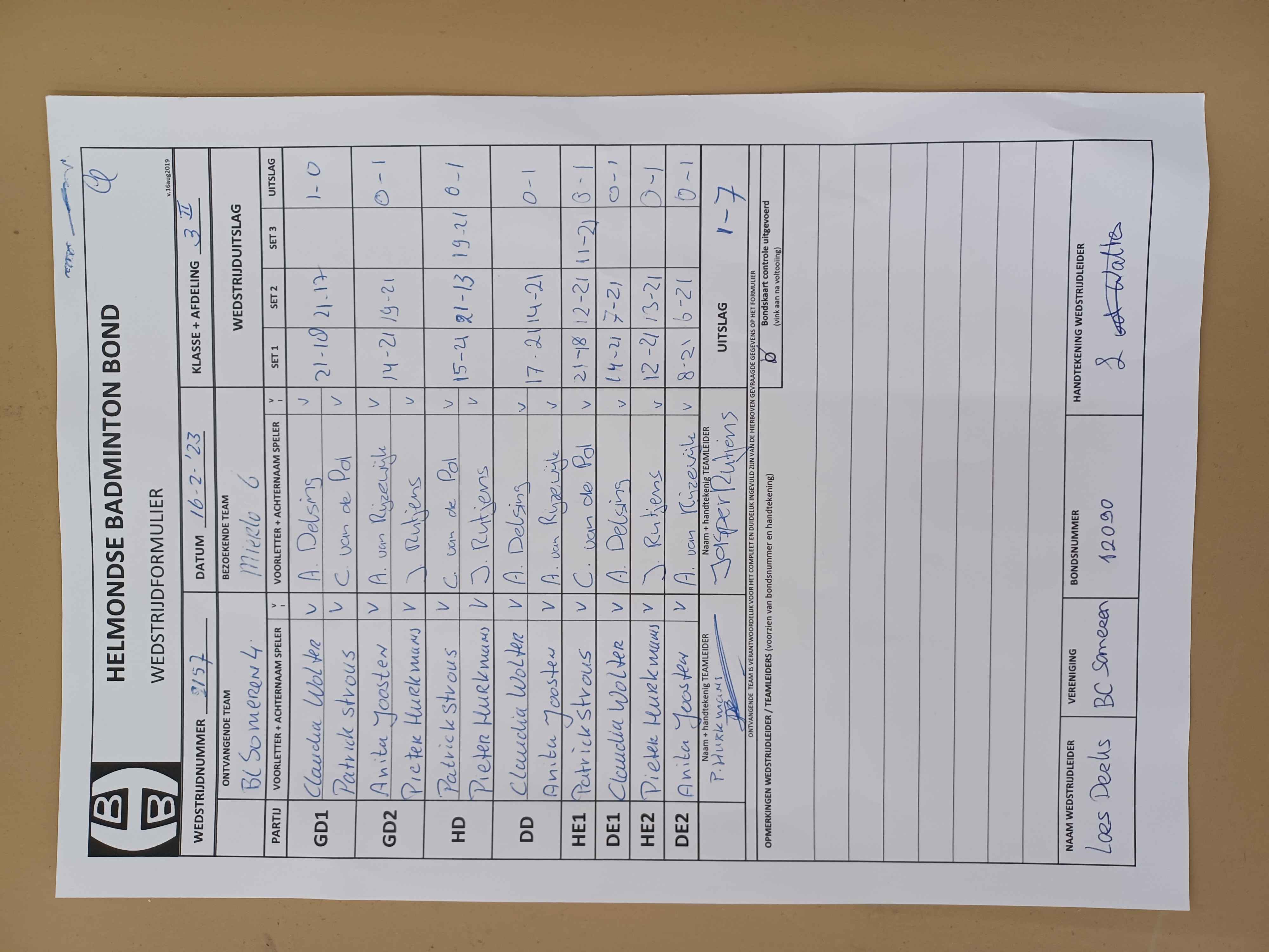 | 2157 | do. 16-02-2023 | Someren 4 | - | Mierlo 6 | 12 | 1 - 7 | |||