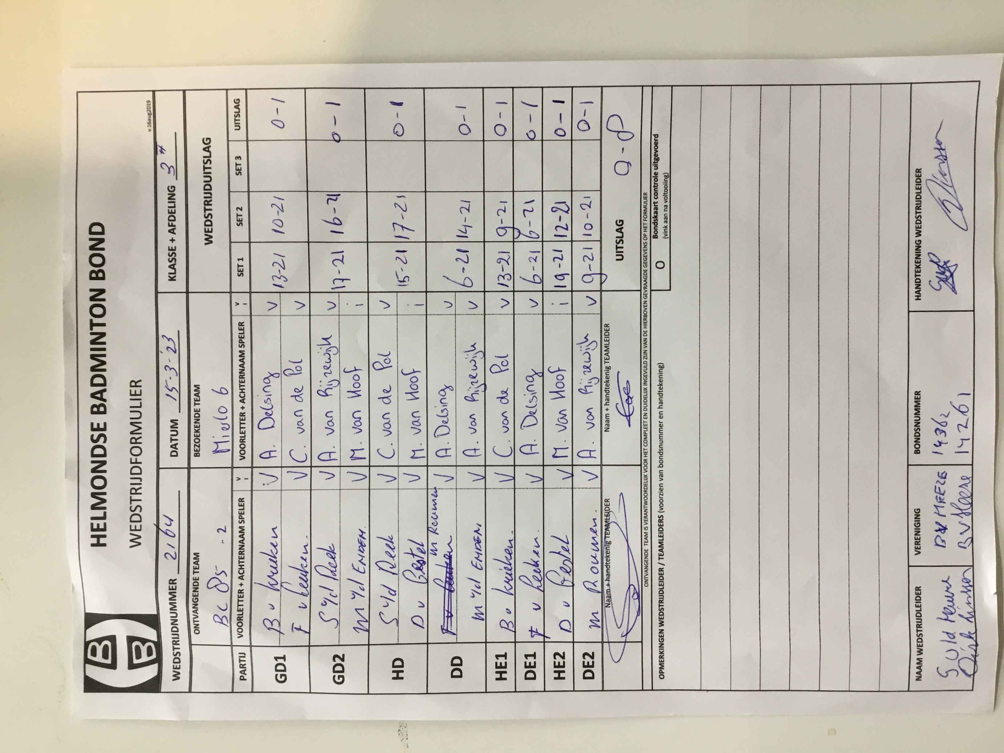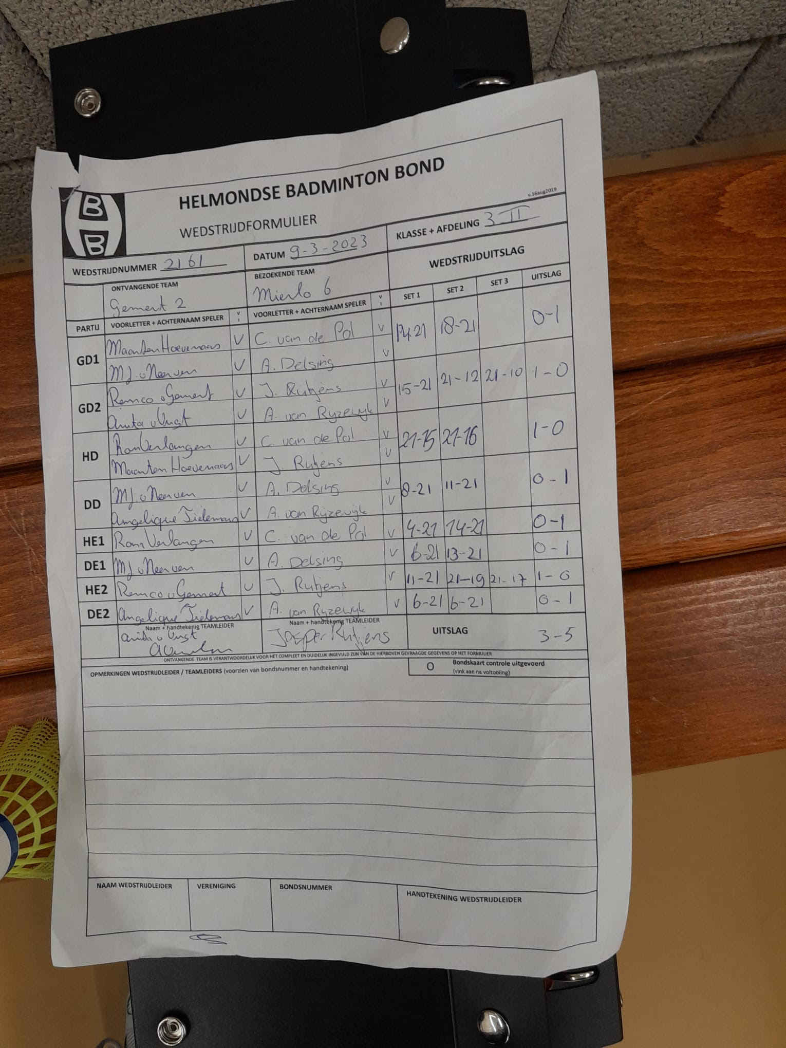 | 2161 | do. 09-03-2023 | Gemert 2 | - | Mierlo 6 | 3 | 3 - 5 | |||