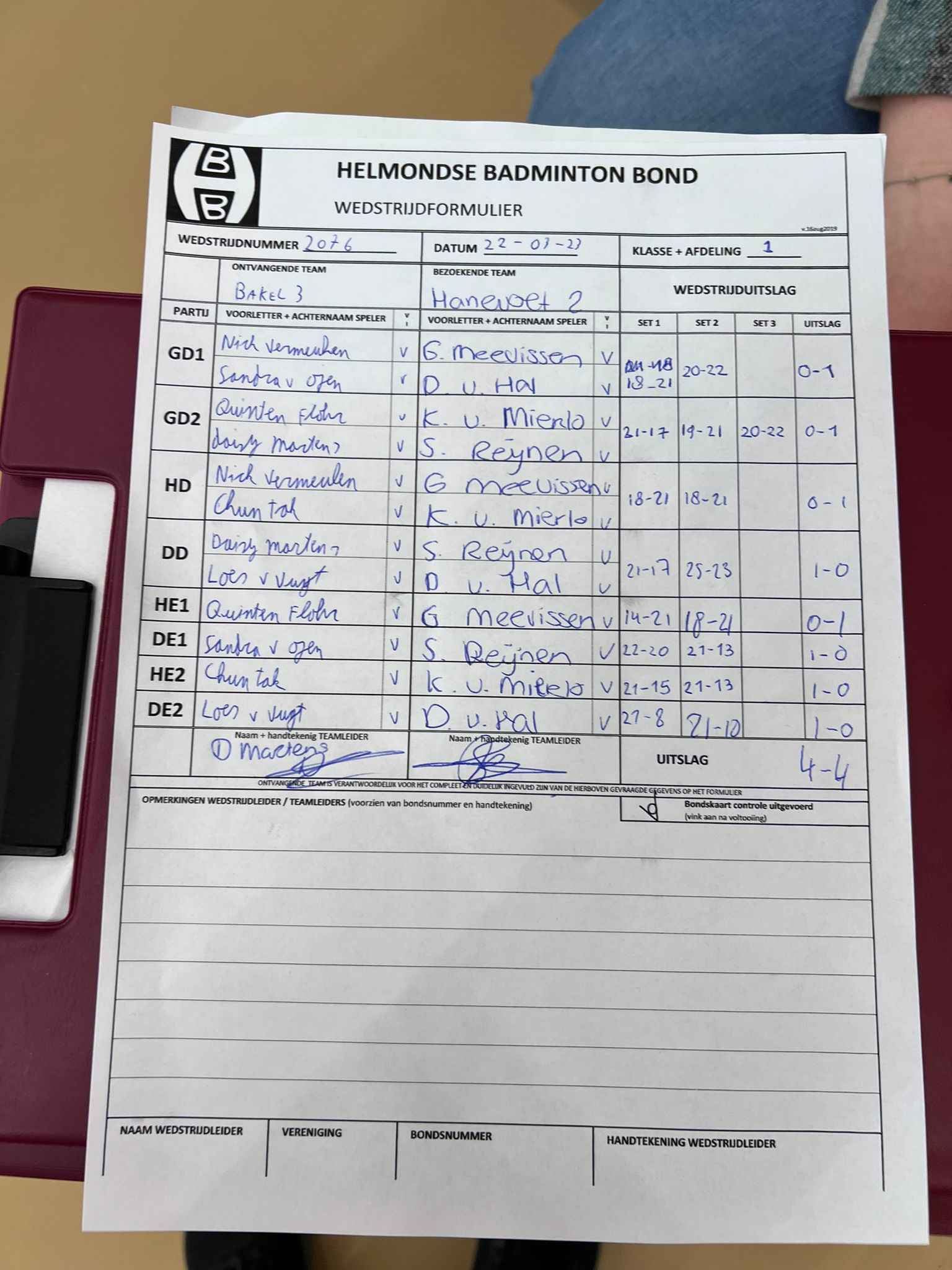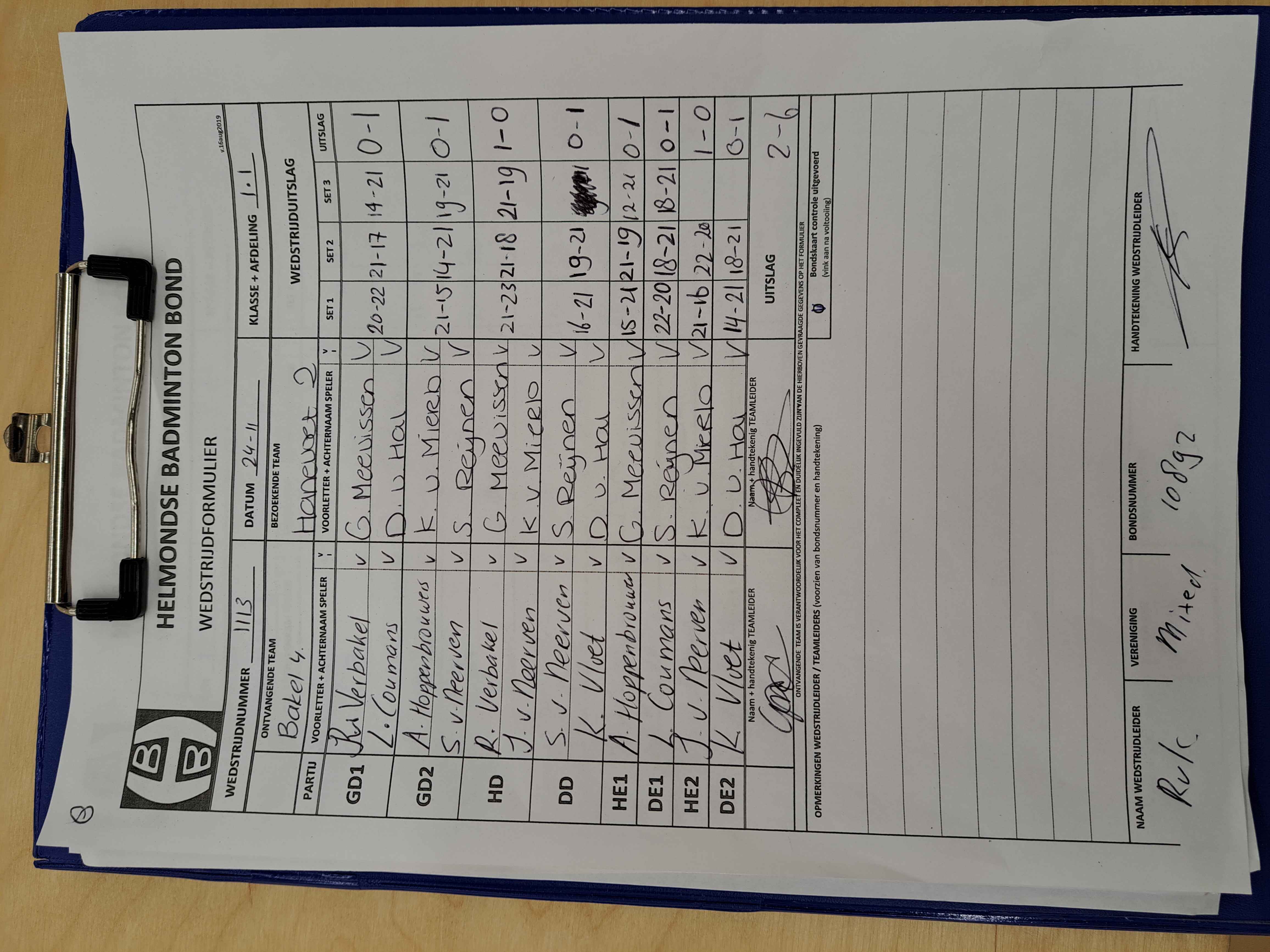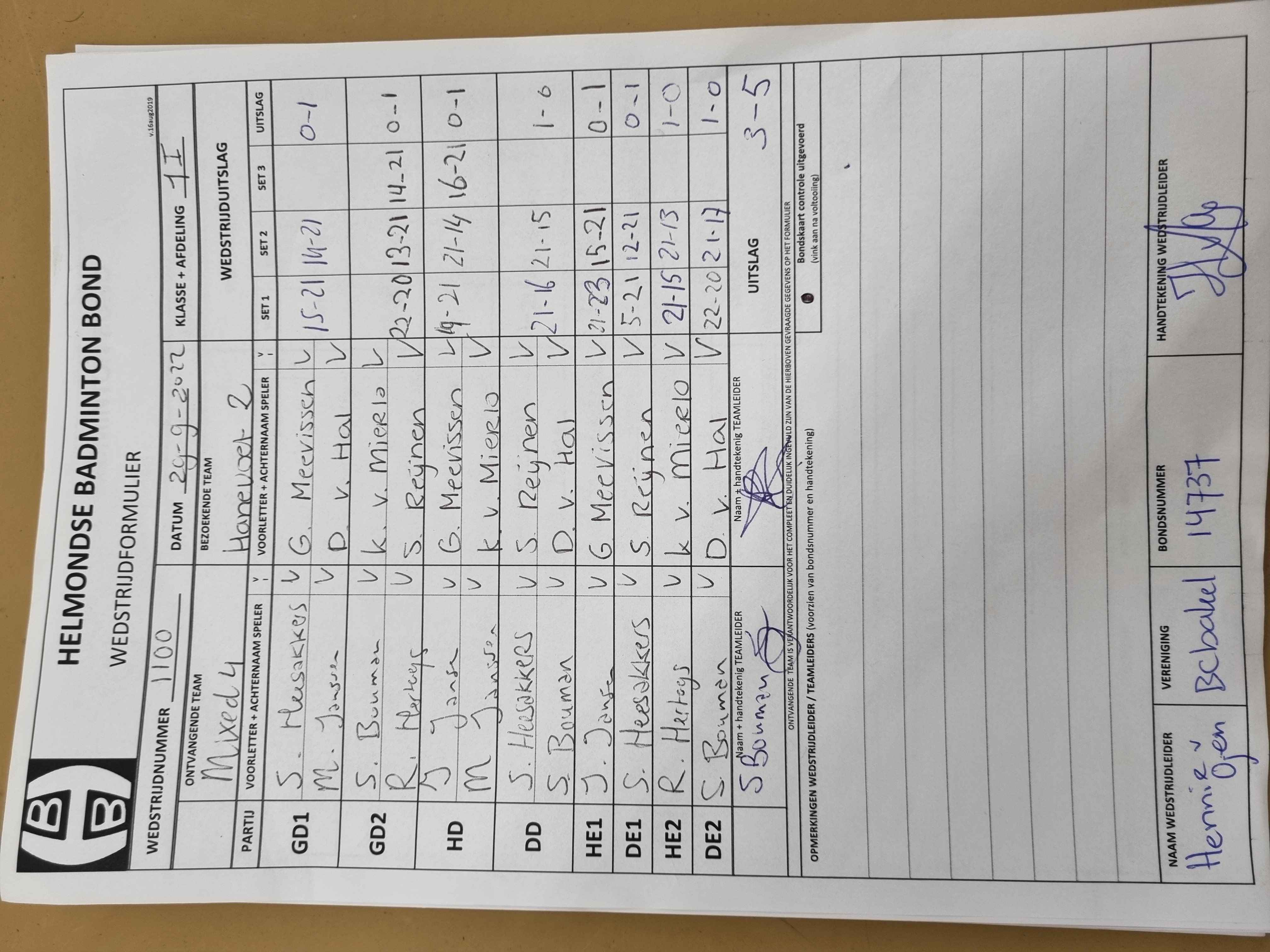 | 1100 | do. 29-09-2022 | Mixed 4 | - | Hanevoet 2 | 15 | 3 - 5 | |||