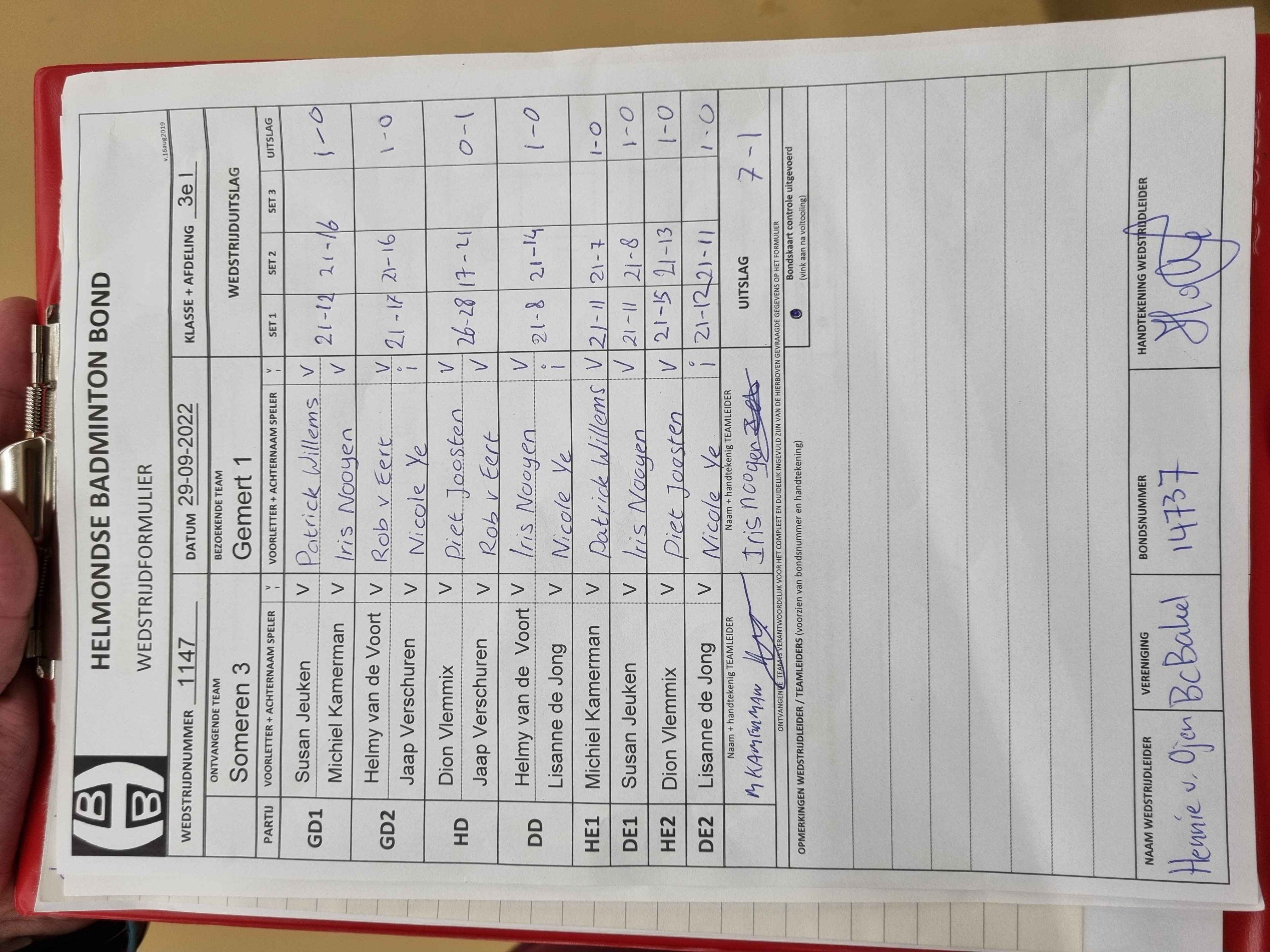 | 1147 | do. 29-09-2022 | Someren 3 | - | Gemert 1 | 11 | 7 - 1 | |||