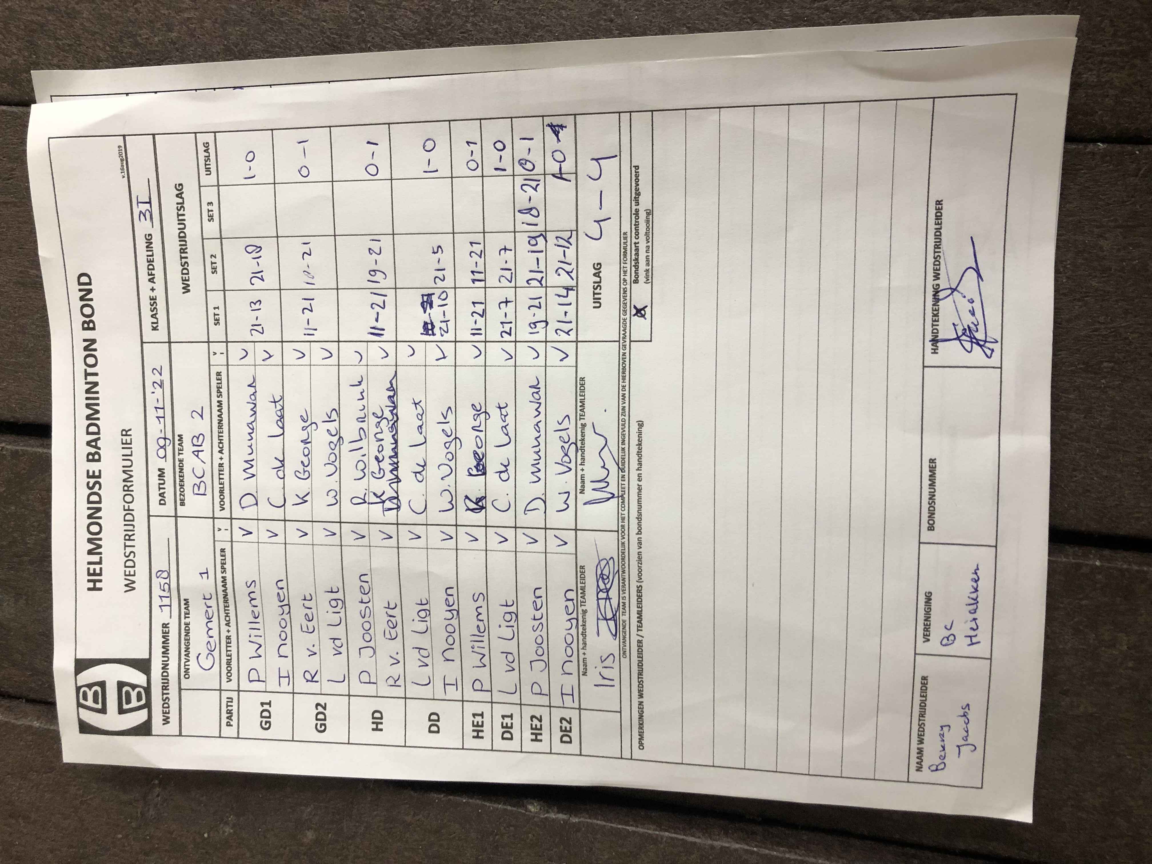 | 1158 | wo. 09-11-2022 | Gemert 1 | - | BCAB 2 | 11 | 4 - 4 | |||