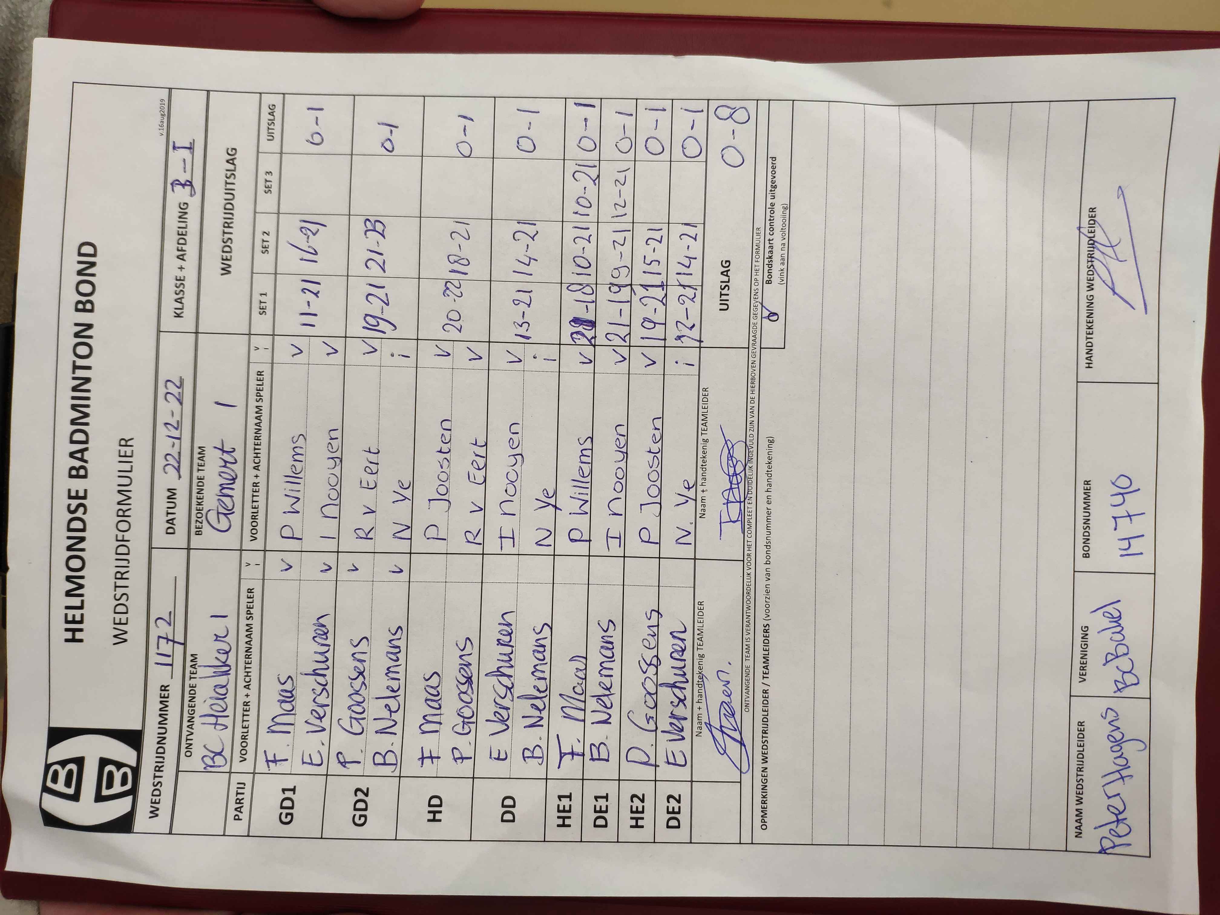 | 1172 | do. 22-12-2022 | Heiakker 1 | - | Gemert 1 | 2 | 0 - 8 | |||