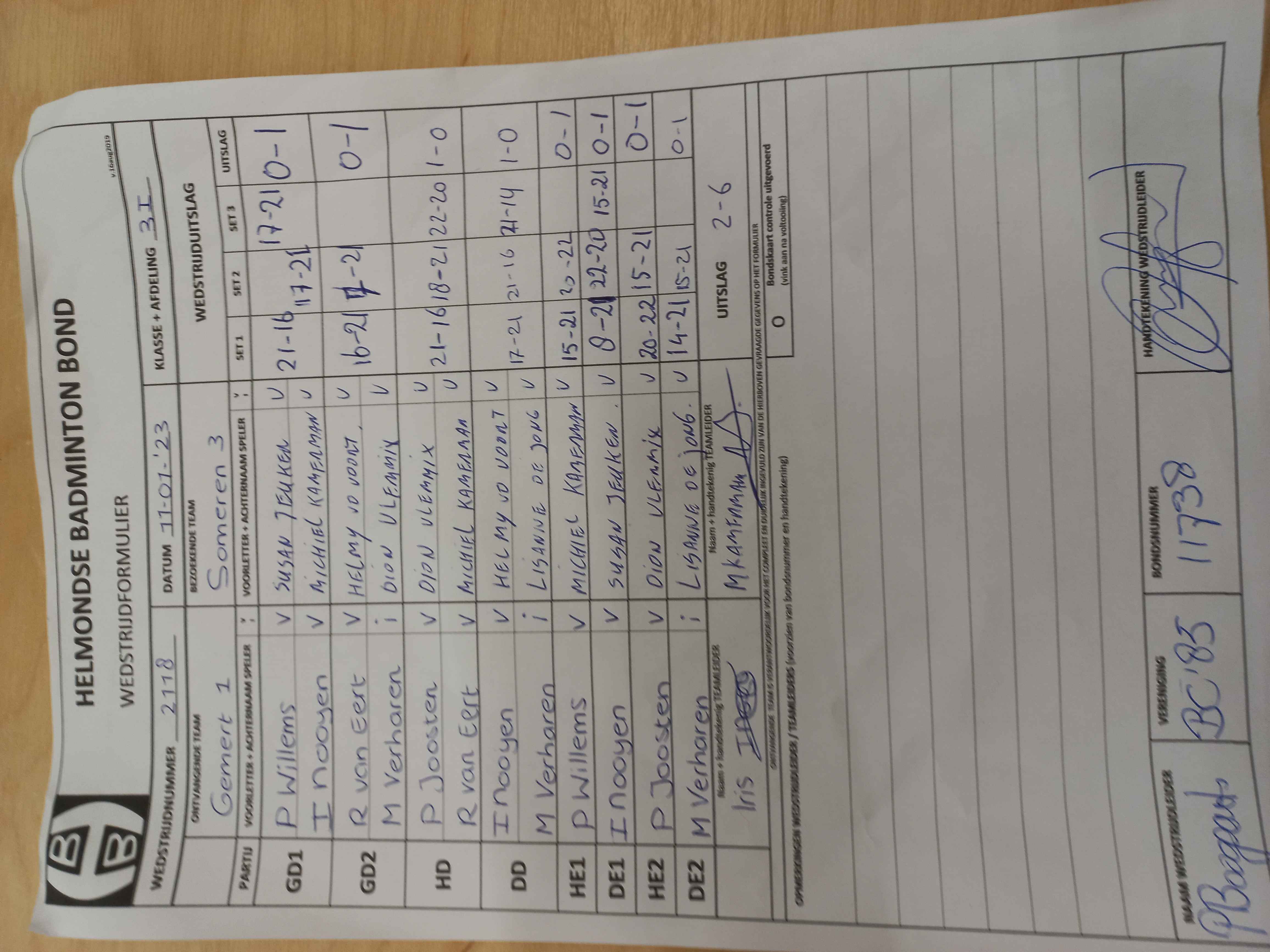 | 2118 | wo. 11-01-2023 | Gemert 1 | - | Someren 3 | 2 | 2 - 6 | |||
