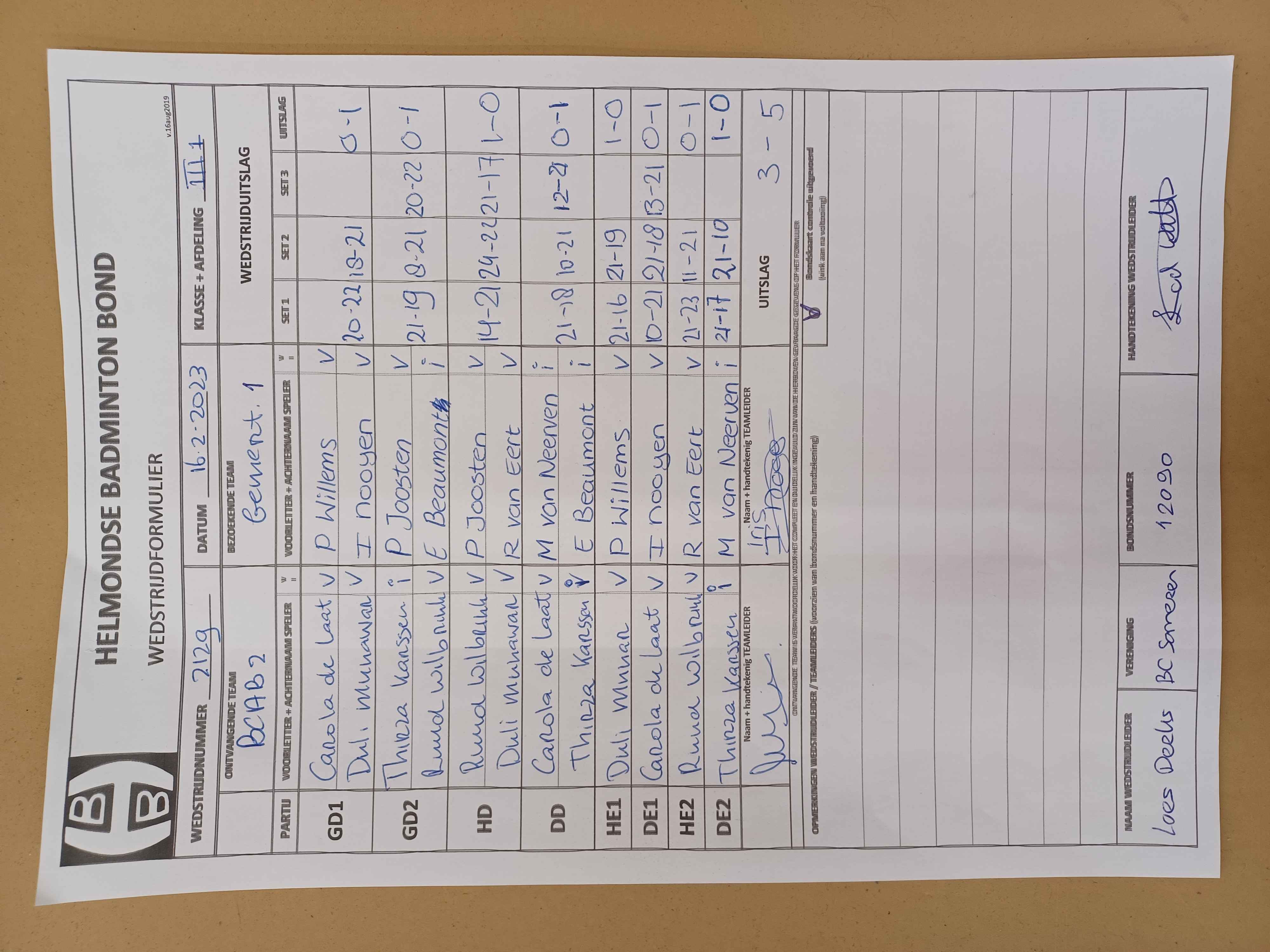 | 2129 | do. 16-02-2023 | BCAB 2 | - | Gemert 1 | 4 | 3 - 5 | |||