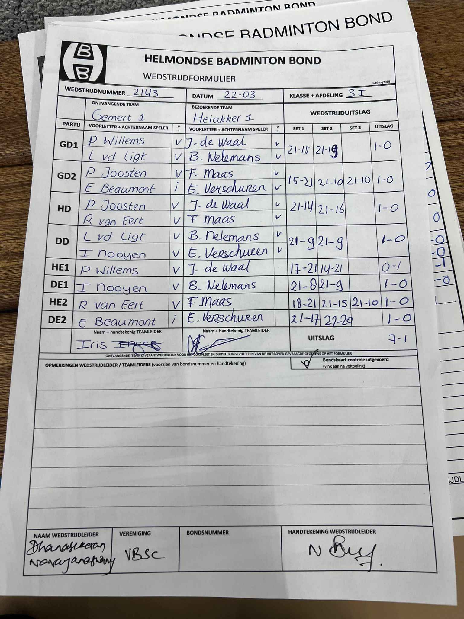 | 2143 | wo. 22-03-2023 | Gemert 1 | - | Heiakker 1 | 11 | 7 - 1 |