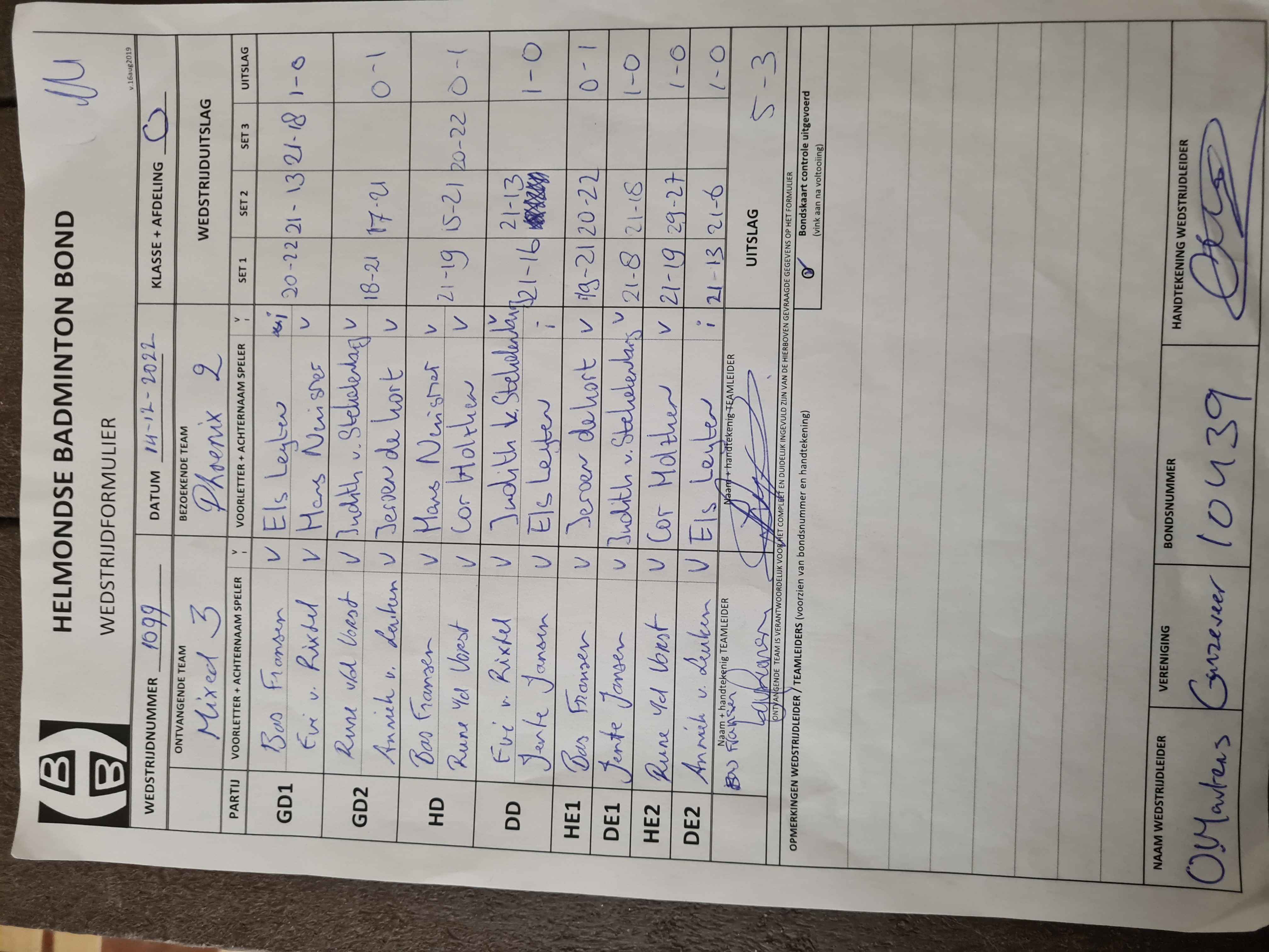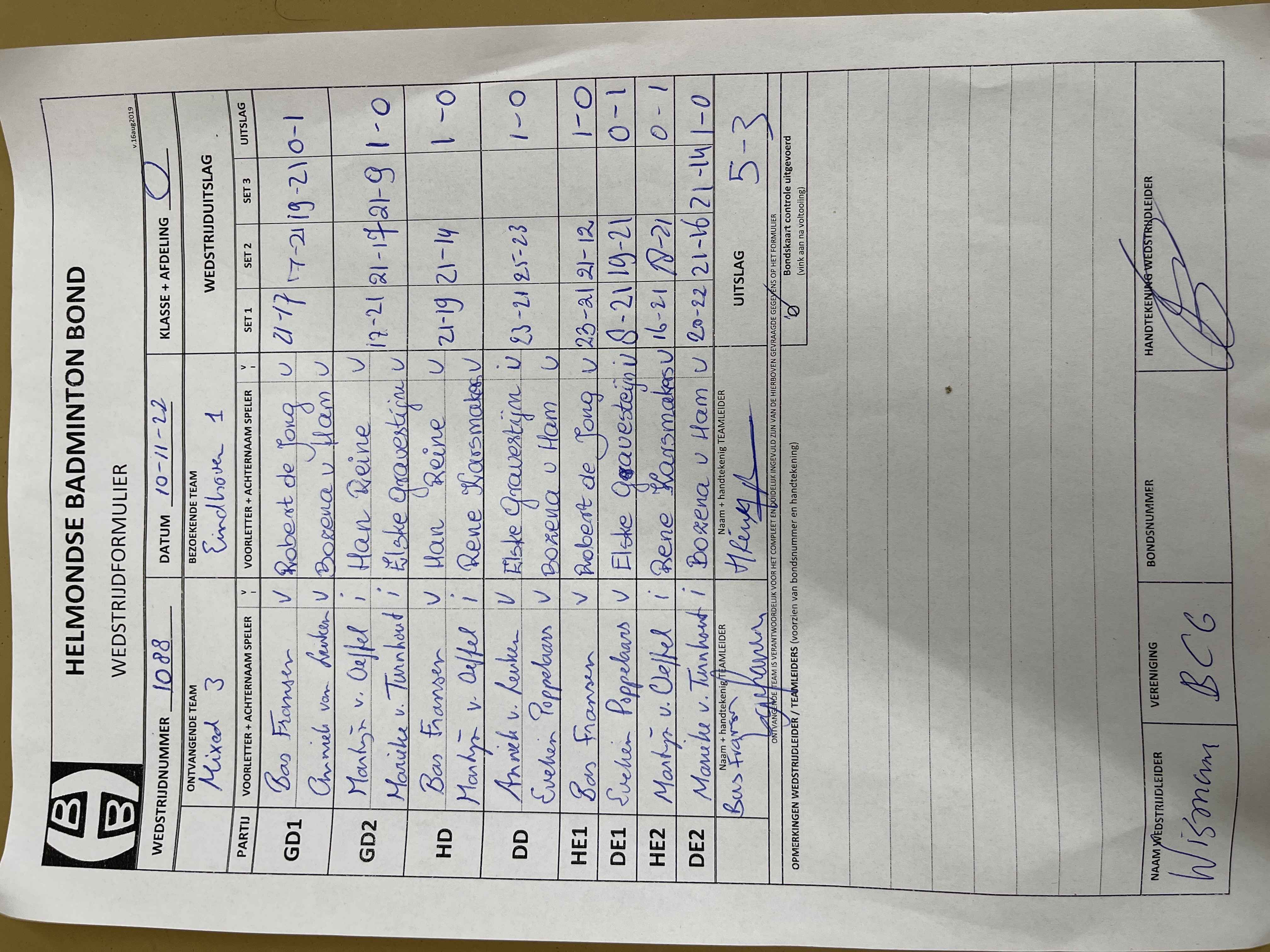 | 1088 | do. 10-11-2022 | Mixed 3 | - | Eindhoven 1 | 13 | 5 - 3 | |||