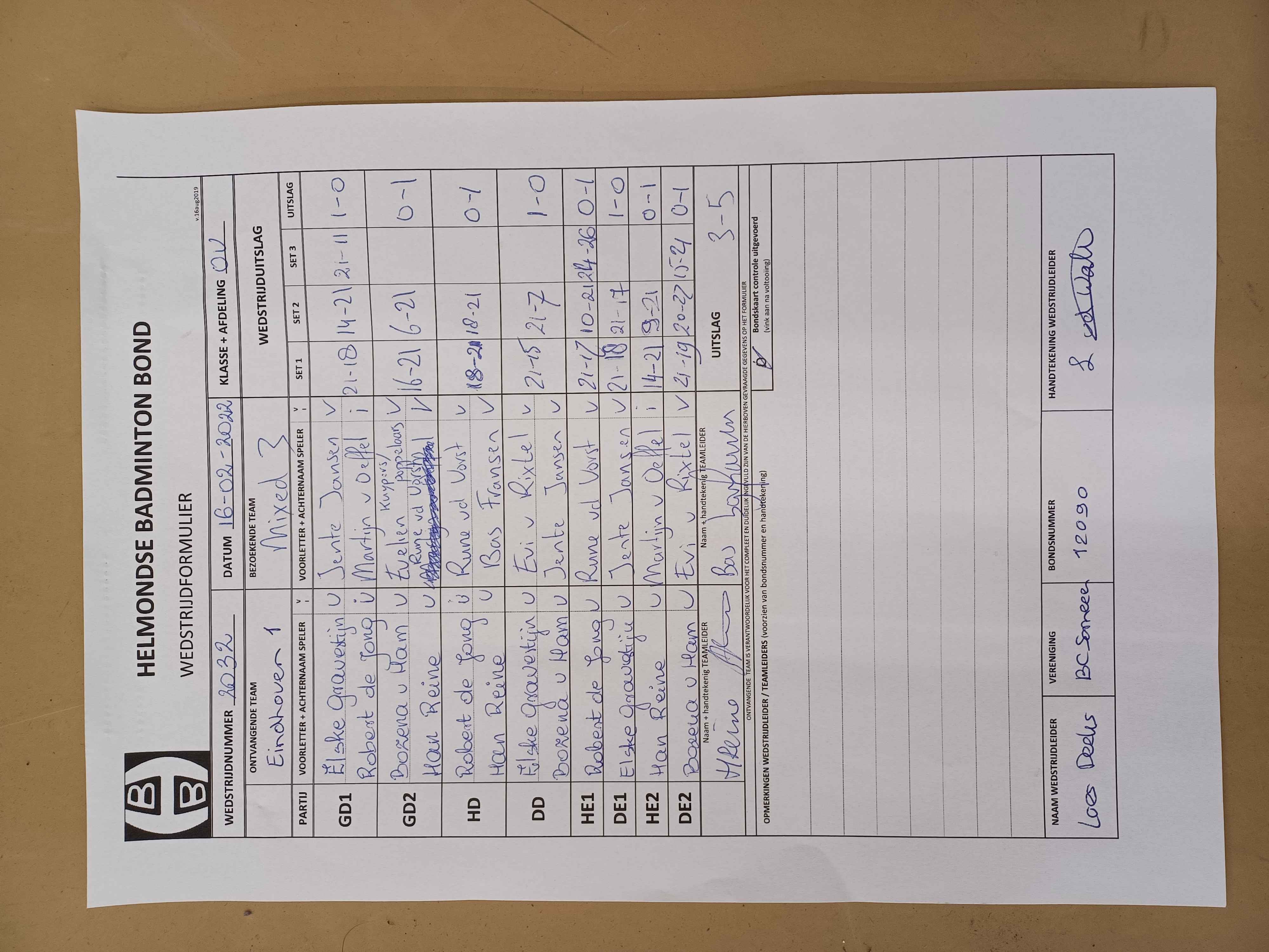 | 2032 | do. 16-02-2023 | Eindhoven 1 | - | Mixed 3 | 1 | 3 - 5 | |||