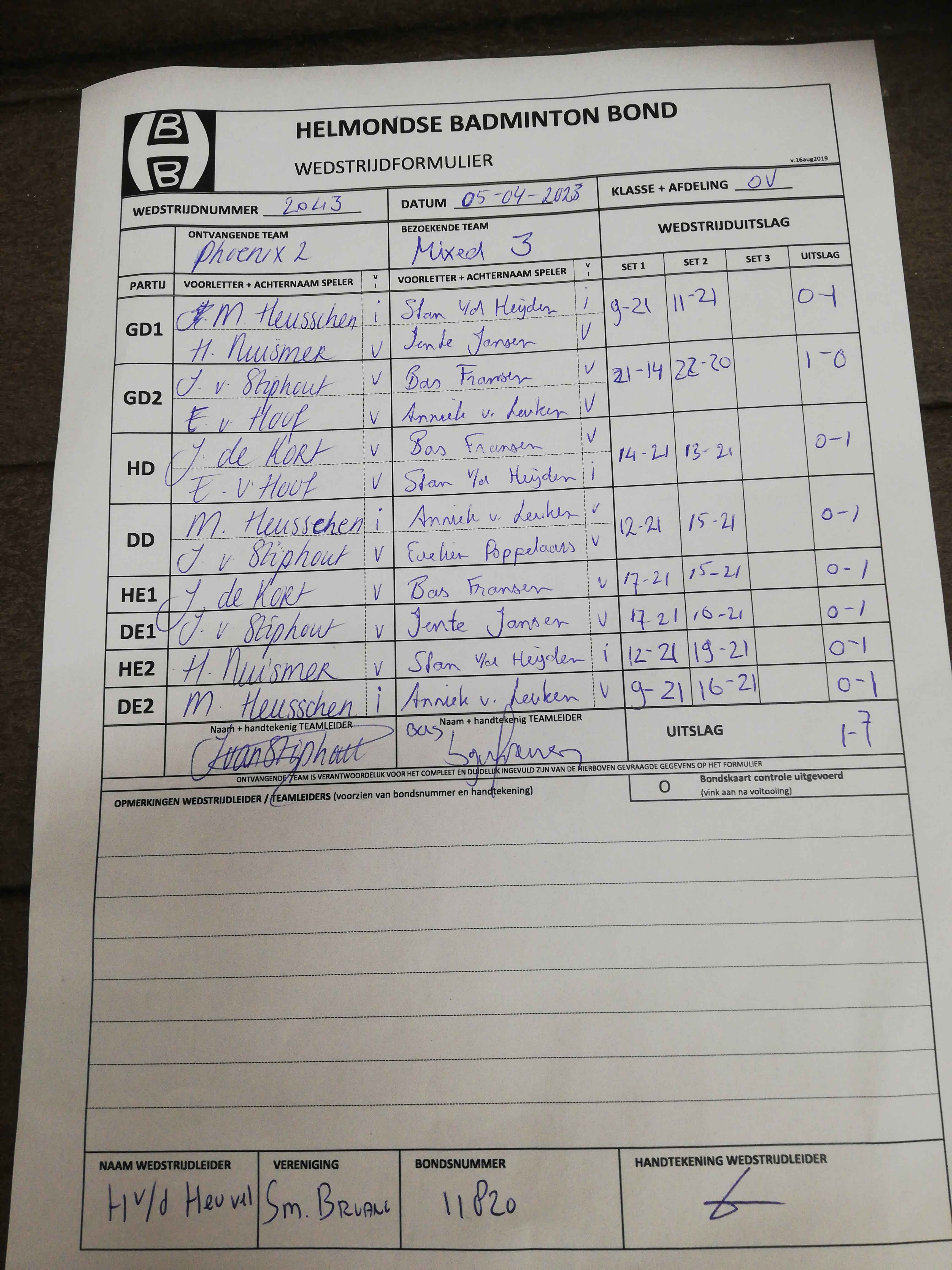 | 2036 | do. 02-03-2023 | Geldrop 1 | - | Mixed 3 | 2 | 4 - 4 | |||