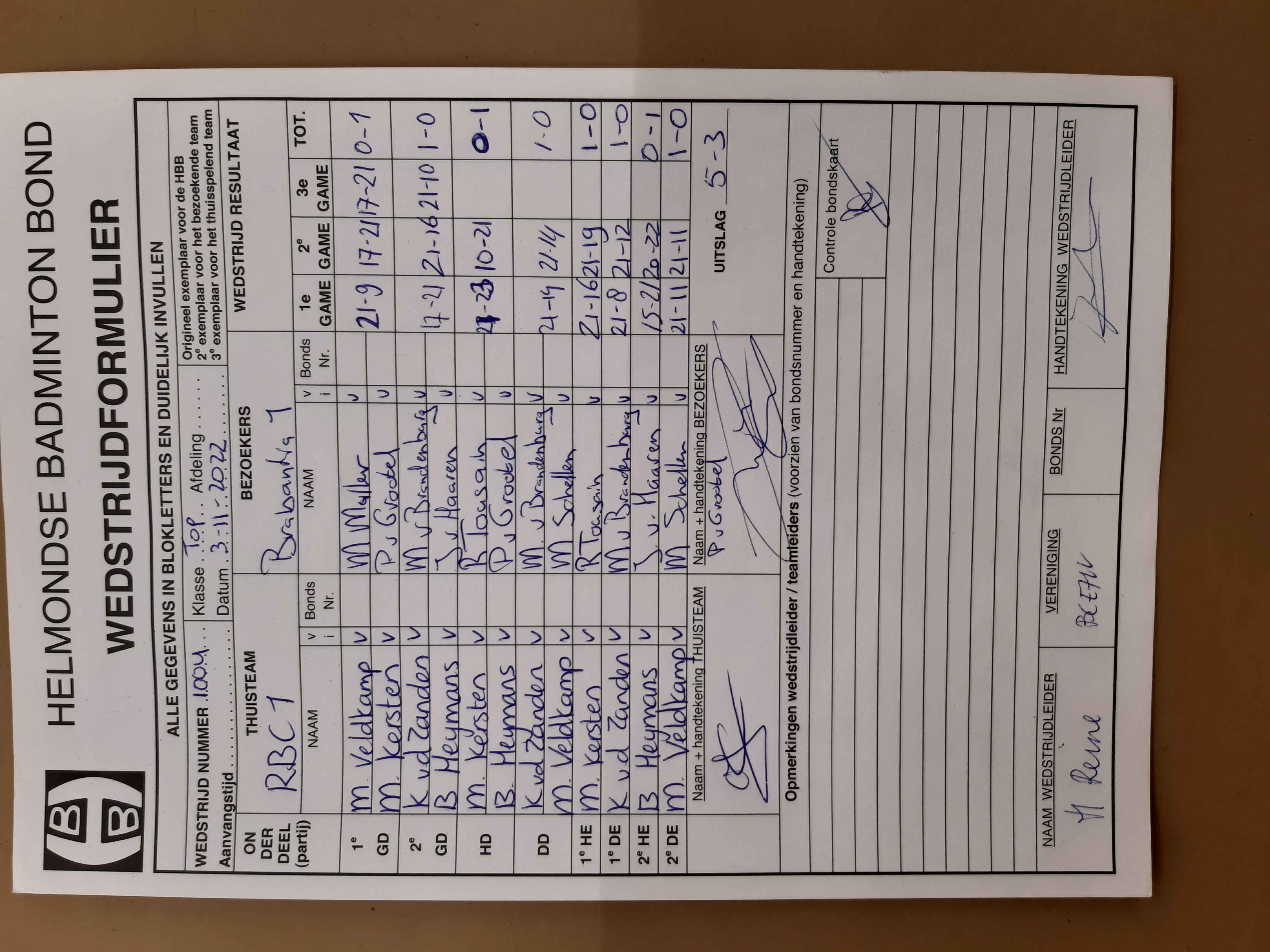 | 1004 | do. 03-11-2022 | RBC 1 | - | Brabantia 1 | 13 | 5 - 3 | |||
