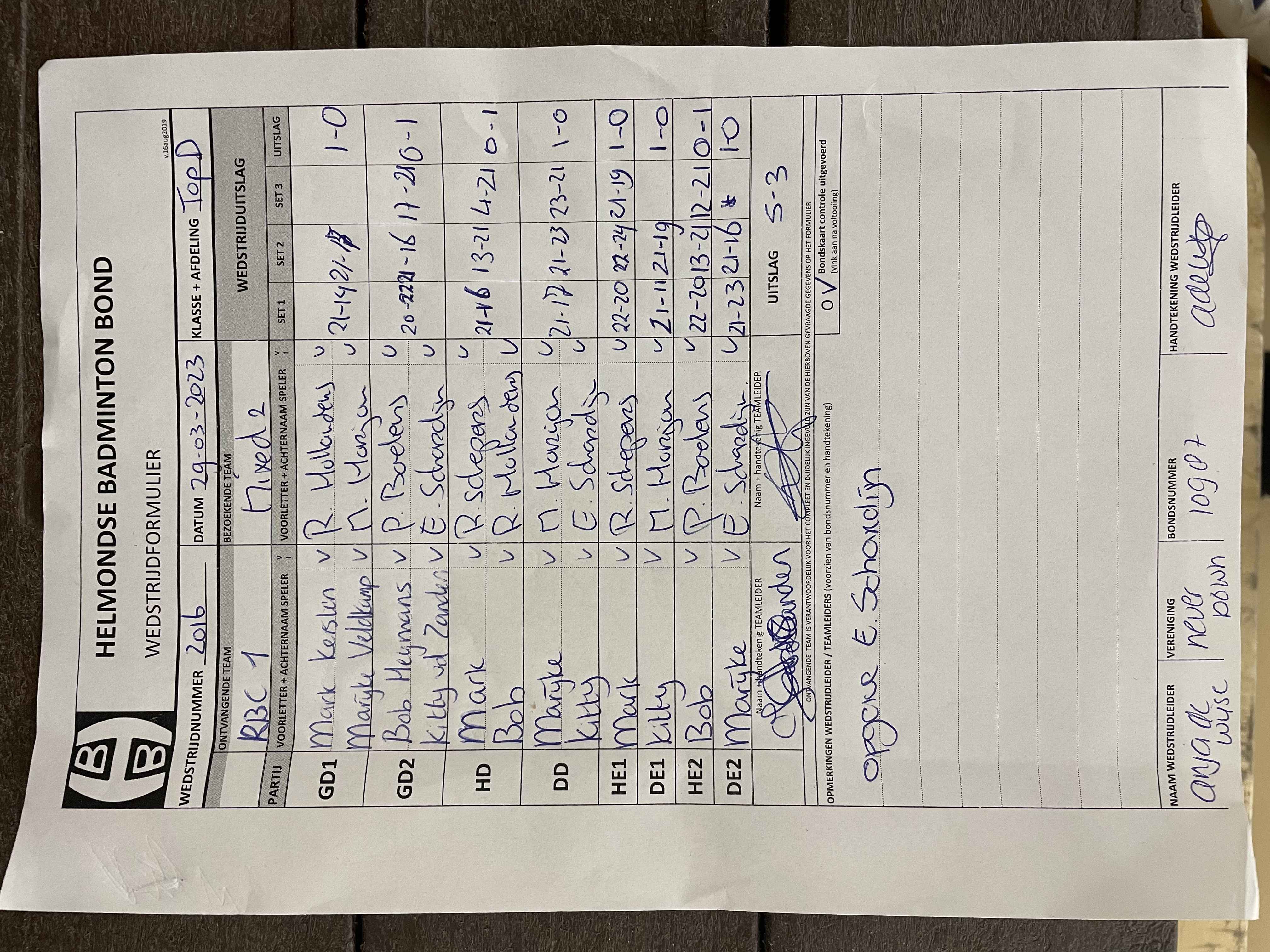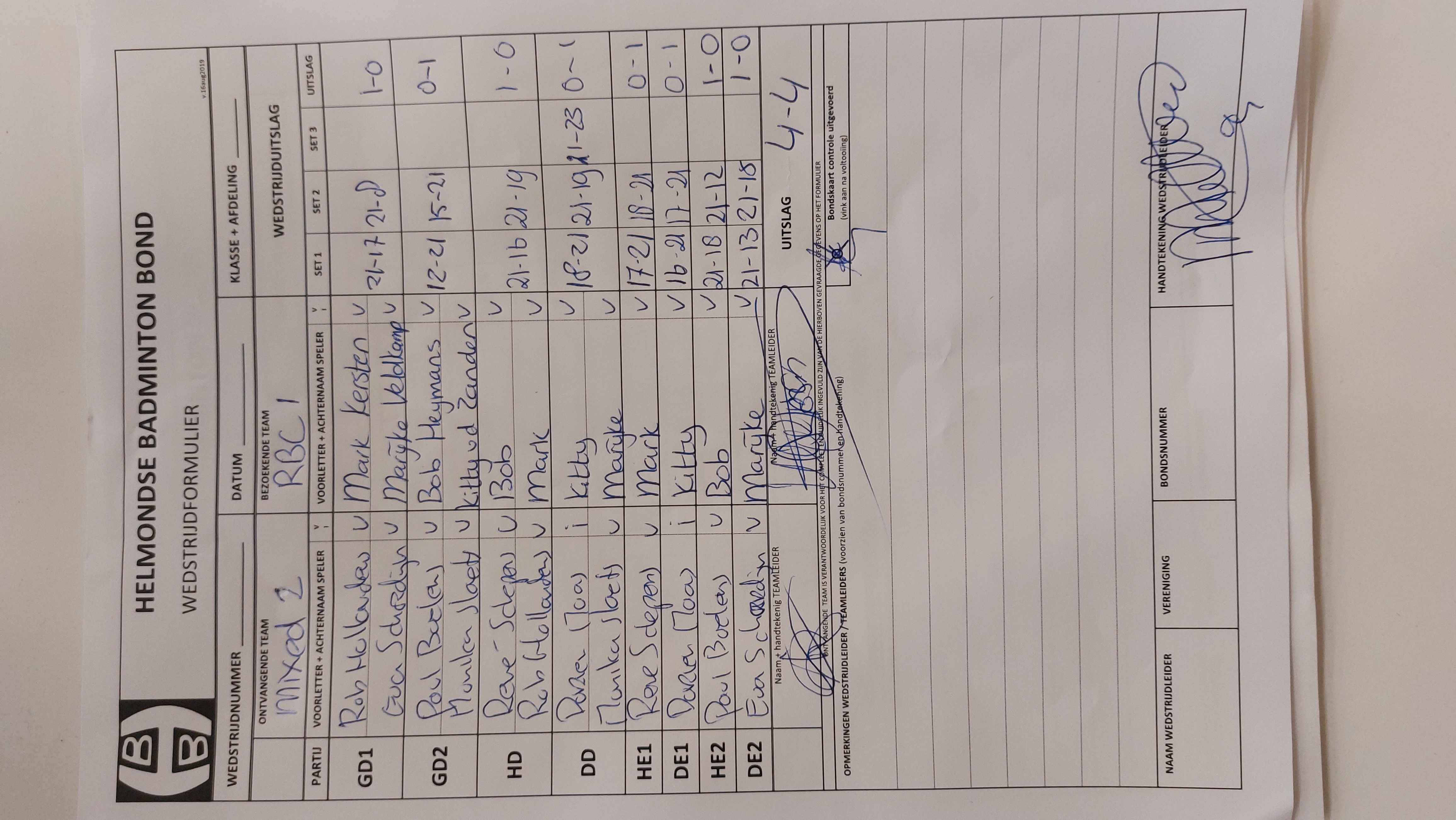 | 2016 | wo. 29-03-2023 | RBC 1 | - | Mixed 2 | 11 | 5 - 3 | |||