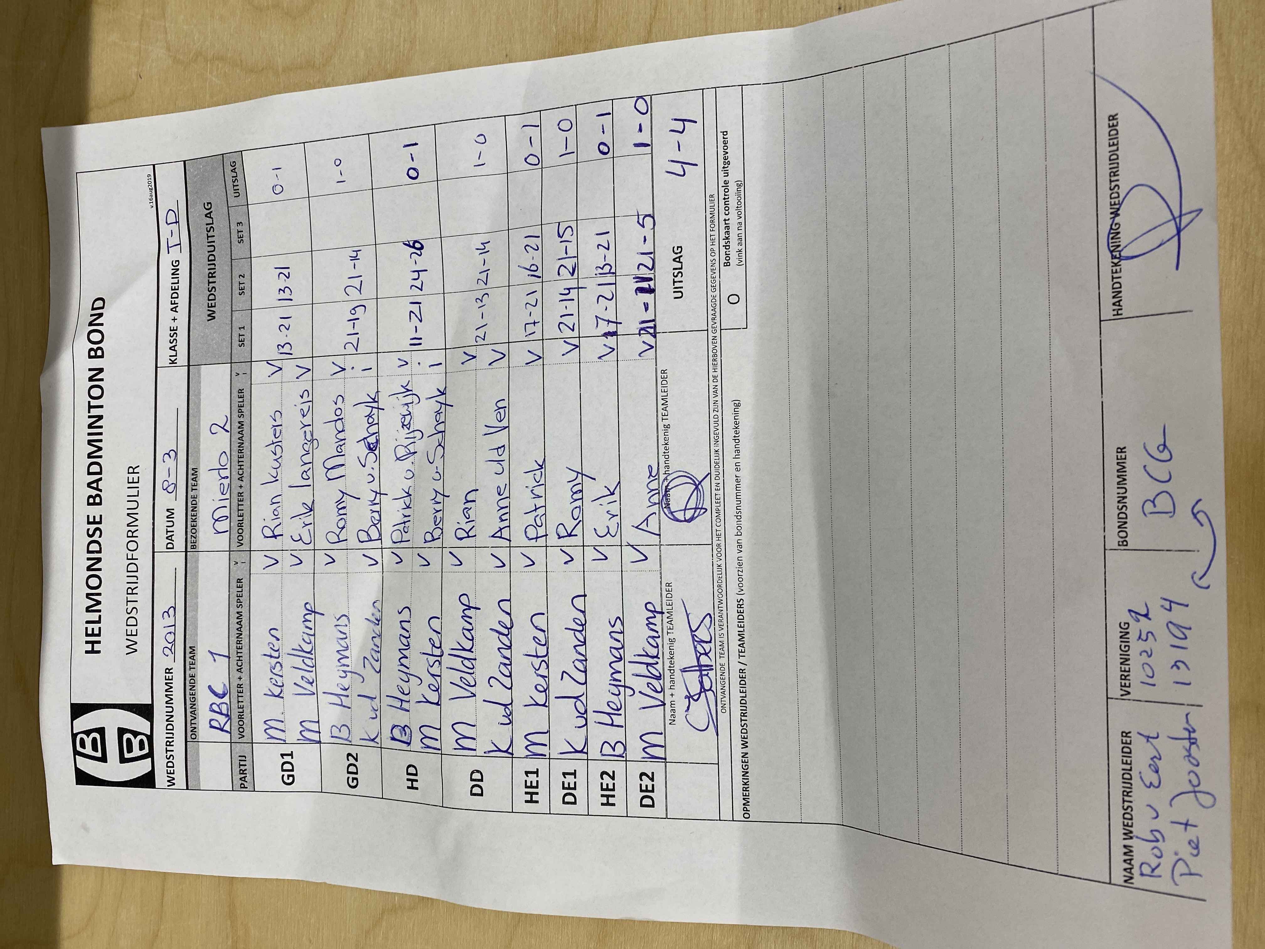 | 2013 | wo. 08-03-2023 | RBC 1 | - | Mierlo 2 | 11 | 4 - 4 | |||
