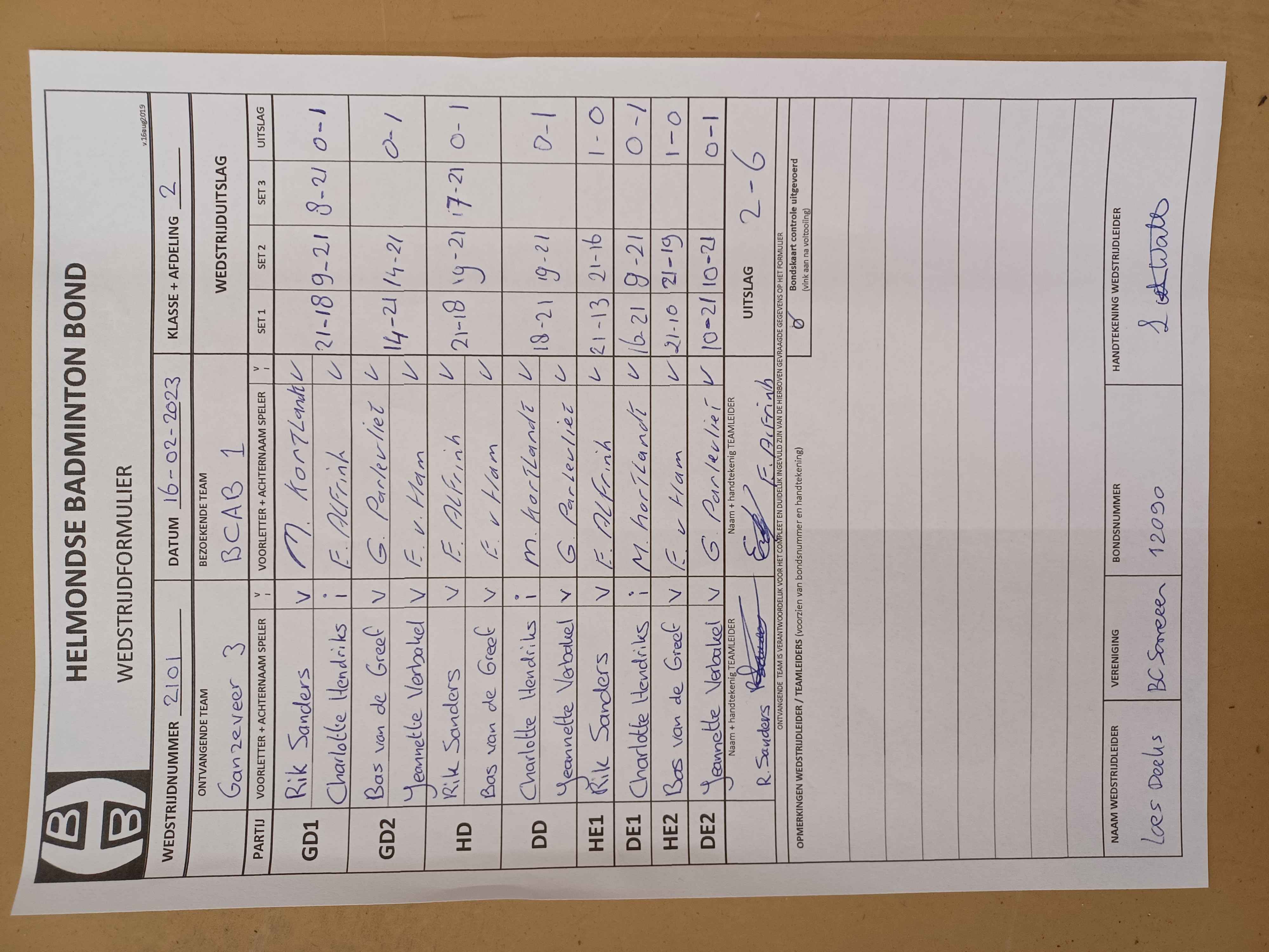 | 2099 | wo. 01-02-2023 | BCAB 1 | - | Mixed 6 | 14 | 4 - 4 | |||