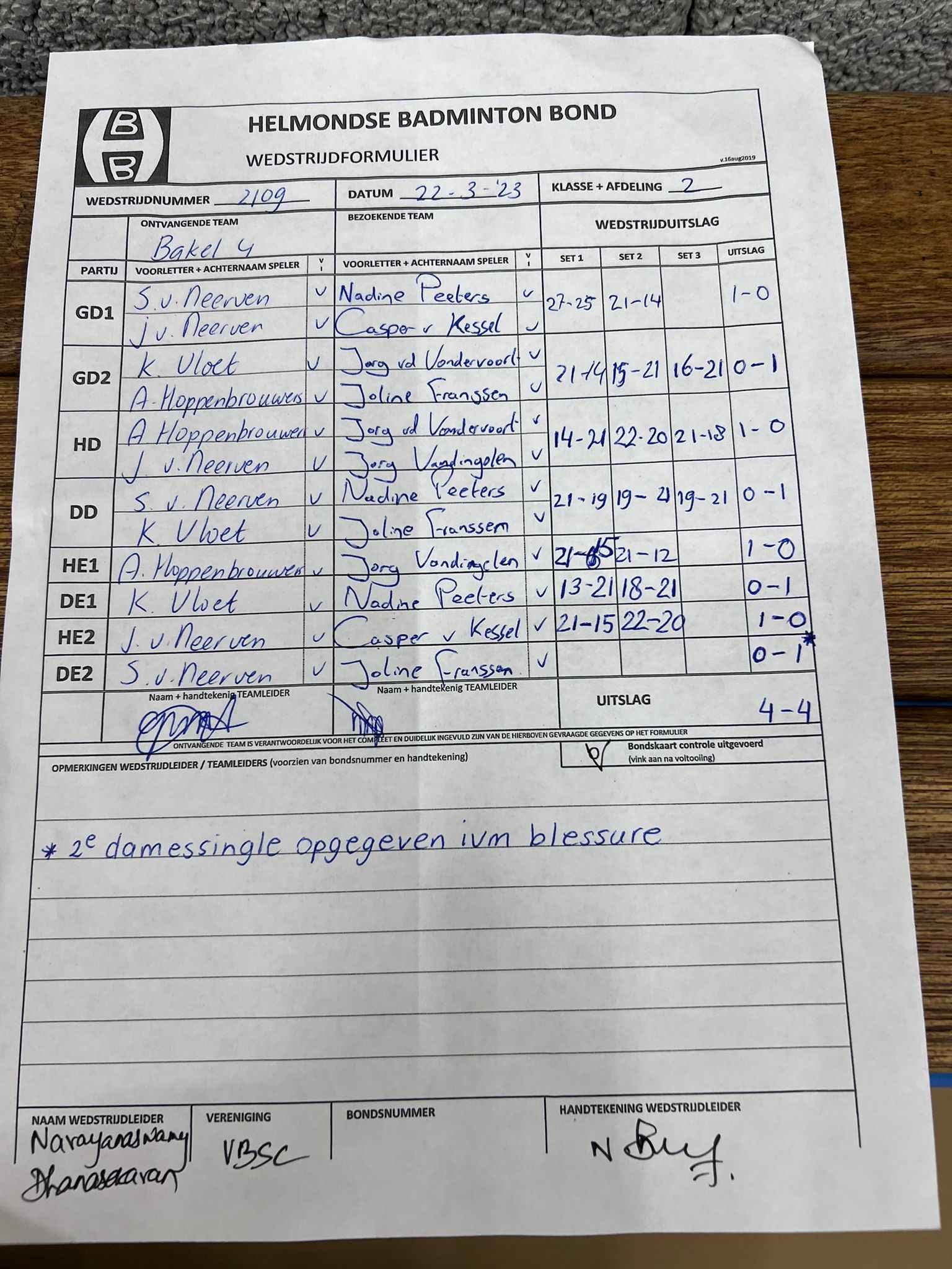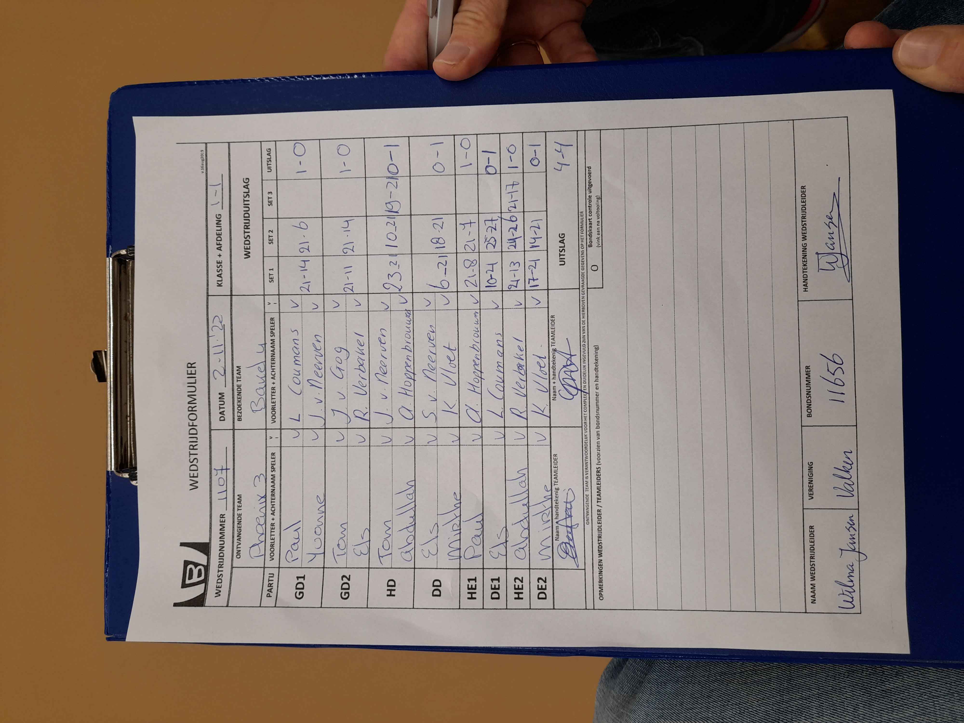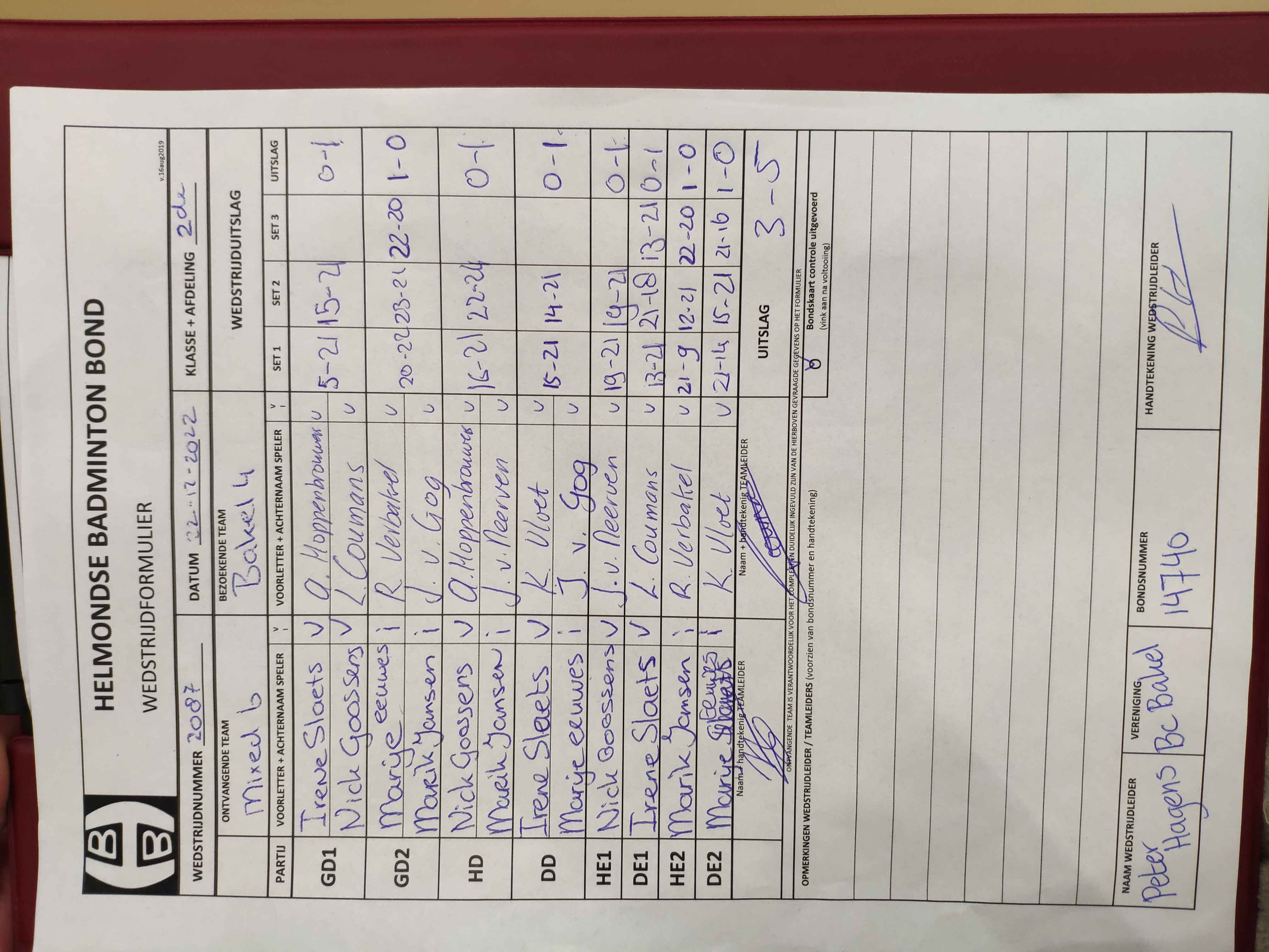 | 1109 | wo. 09-11-2022 | Bakel 4 | - | Mixed 4 | 14 | 3 - 5 | |||