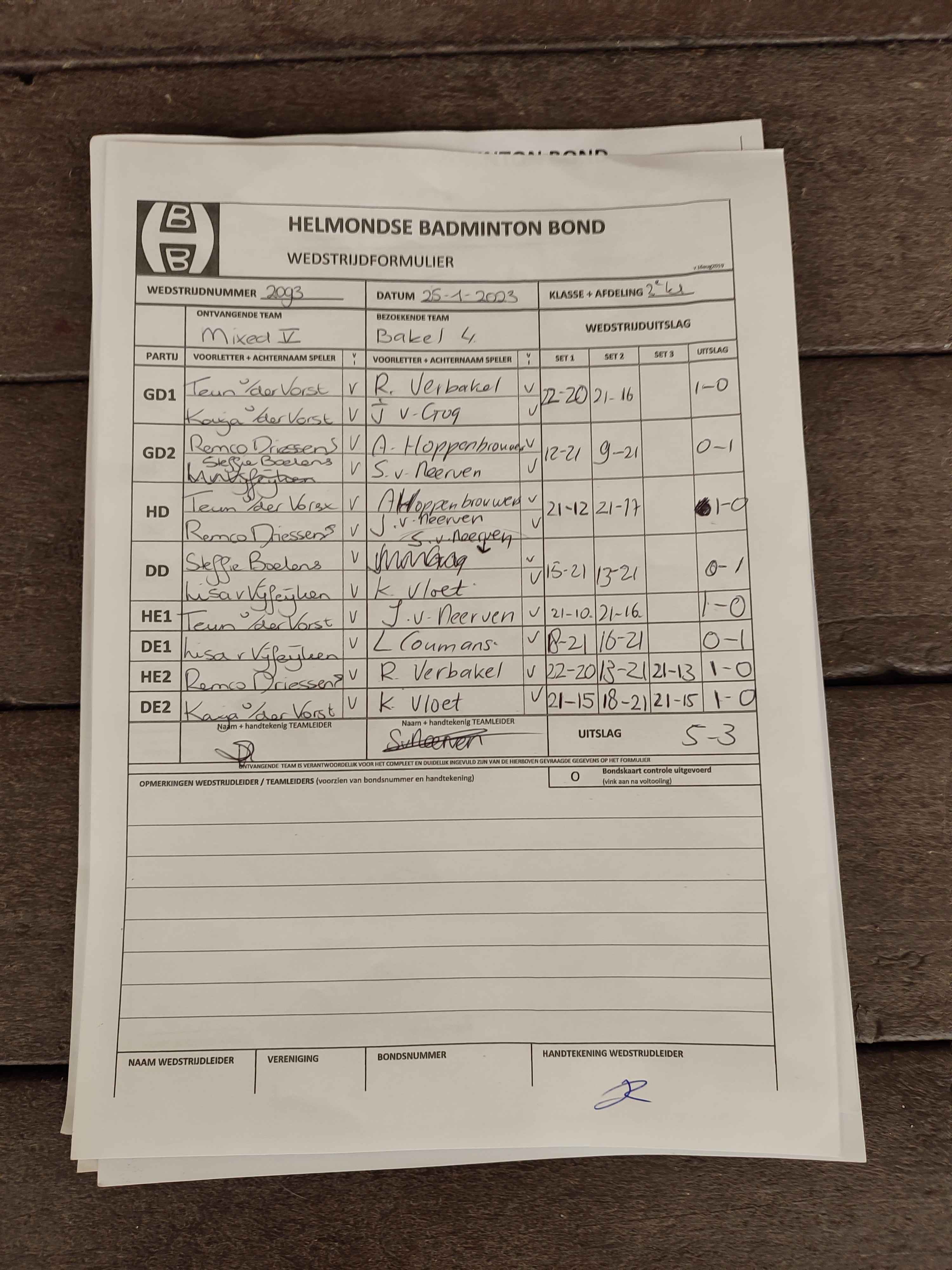 | 2093 | wo. 25-01-2023 | Mixed 5 | - | Bakel 4 | 1 | 5 - 3 | |||