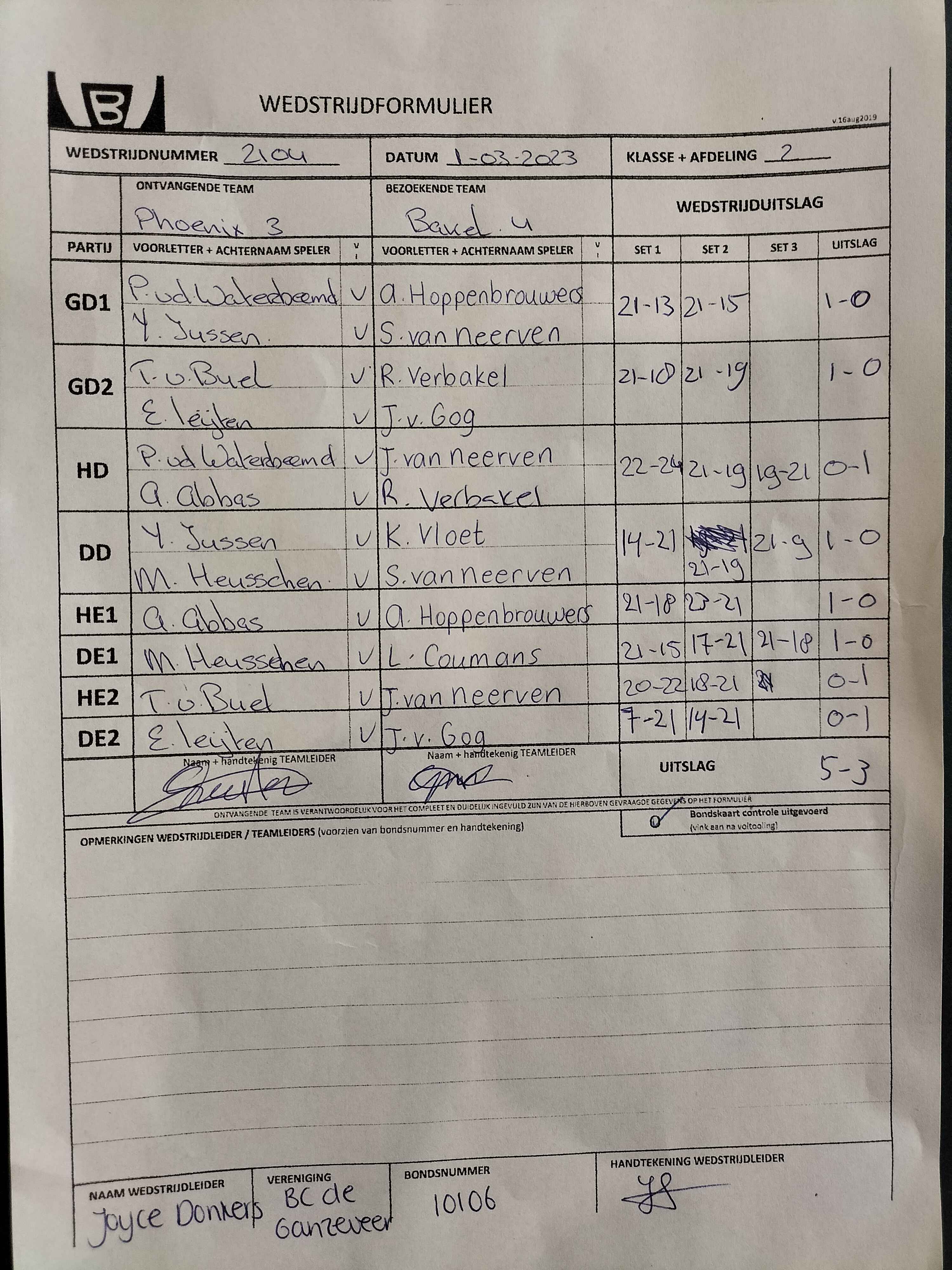 | 2104 | wo. 01-03-2023 | Phoenix 3 | - | Bakel 4 | 5 | 5 - 3 | |||