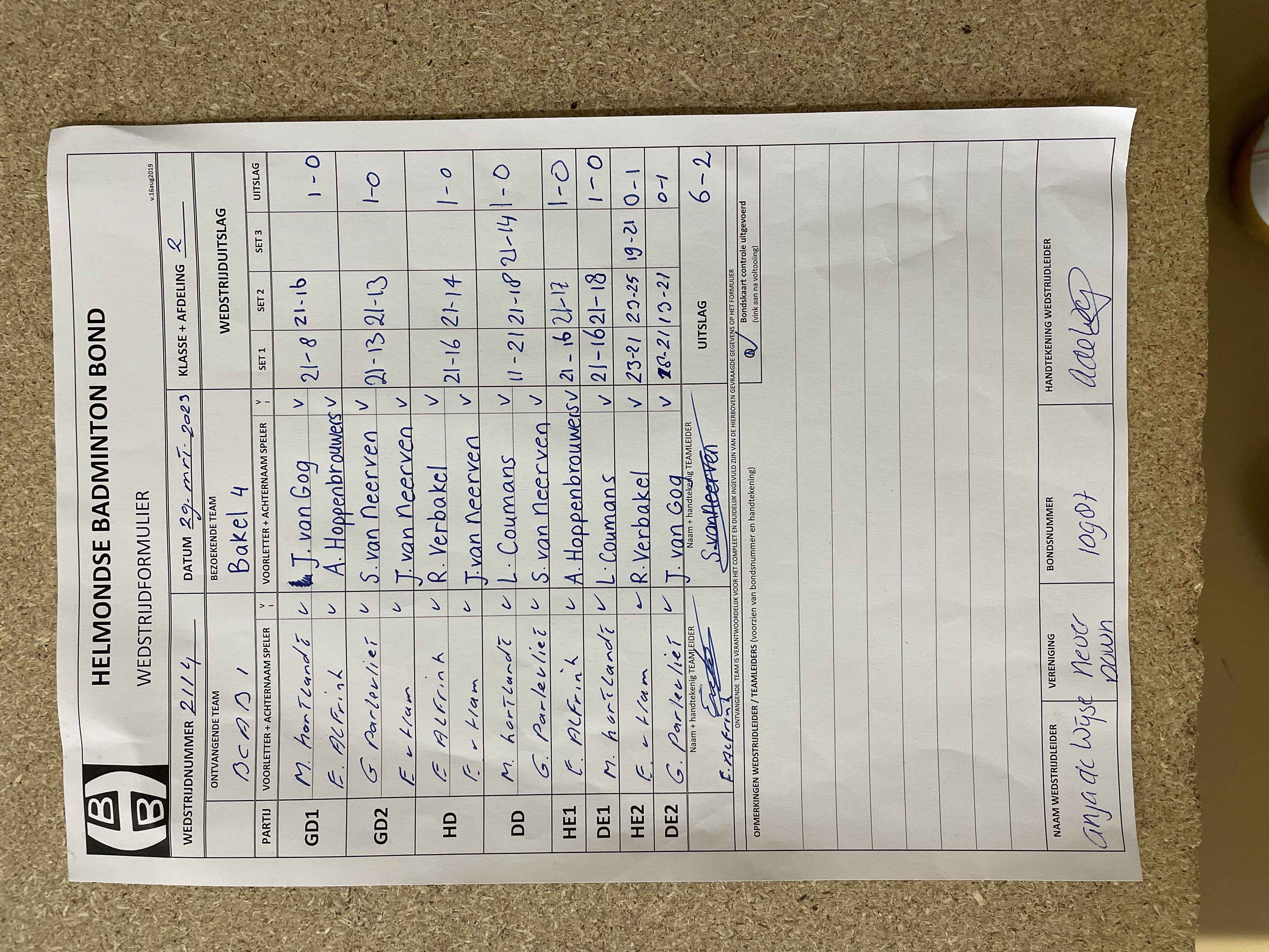 | 2102 | wo. 15-02-2023 | ASML 1 | - | Bakel 4 | 4 | 5 - 3 | |||