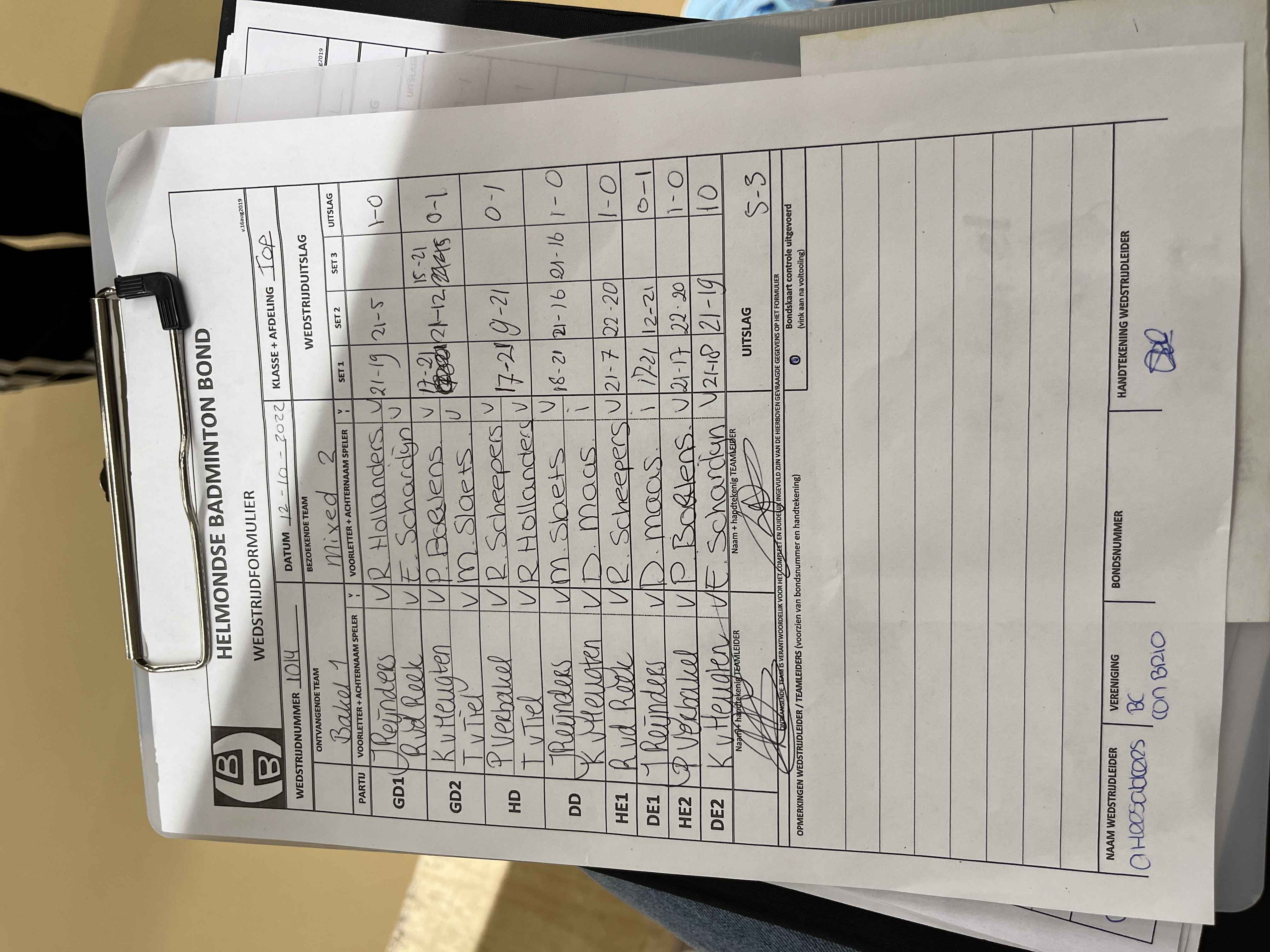 | 1014 | wo. 12-10-2022 | Bakel 1 | - | Mixed 2 | 2 | 5 - 3 | |||