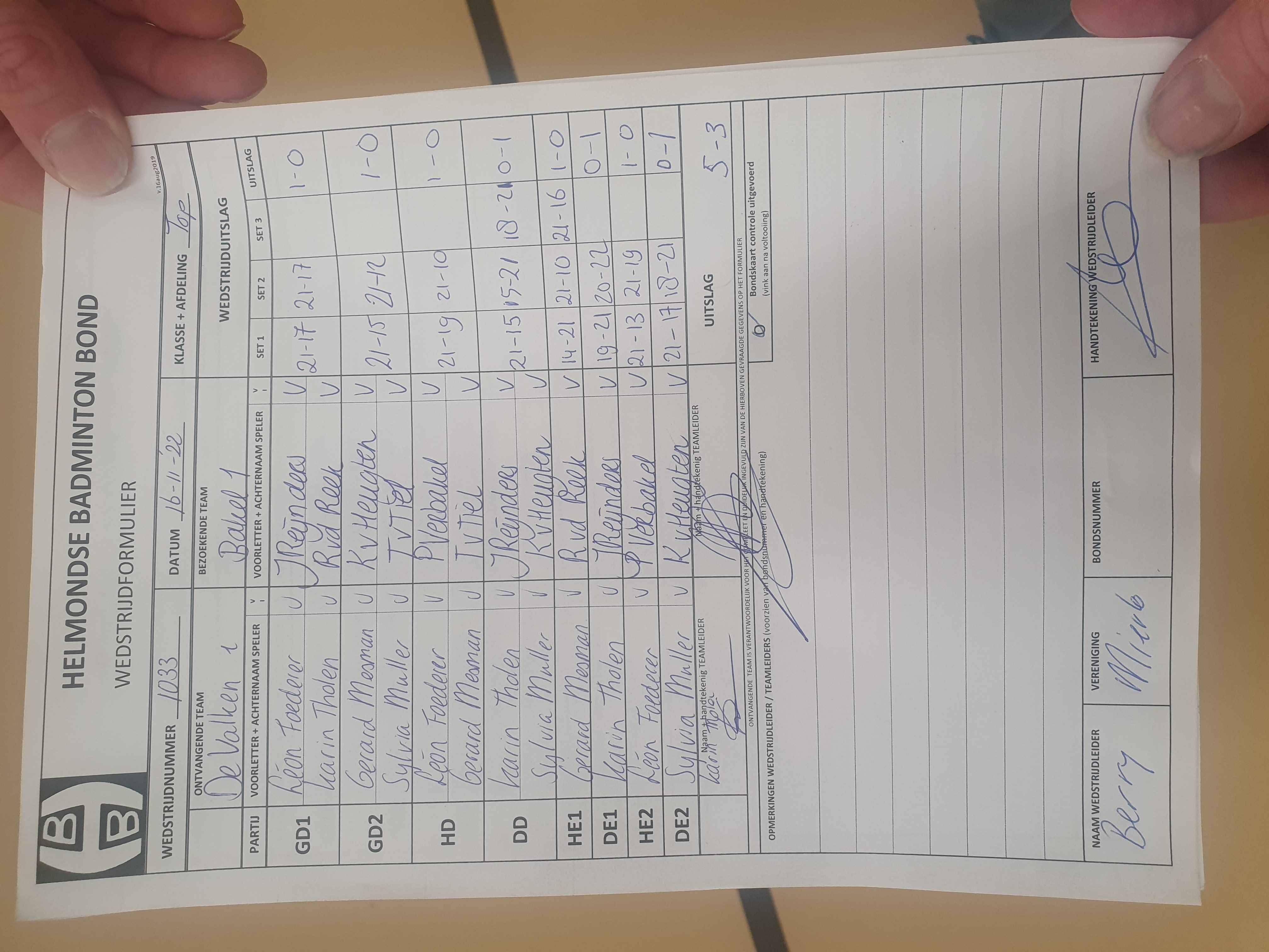 | 1033 | wo. 16-11-2022 | De Valken 1 | - | Bakel 1 | 13 | 5 - 3 | |||