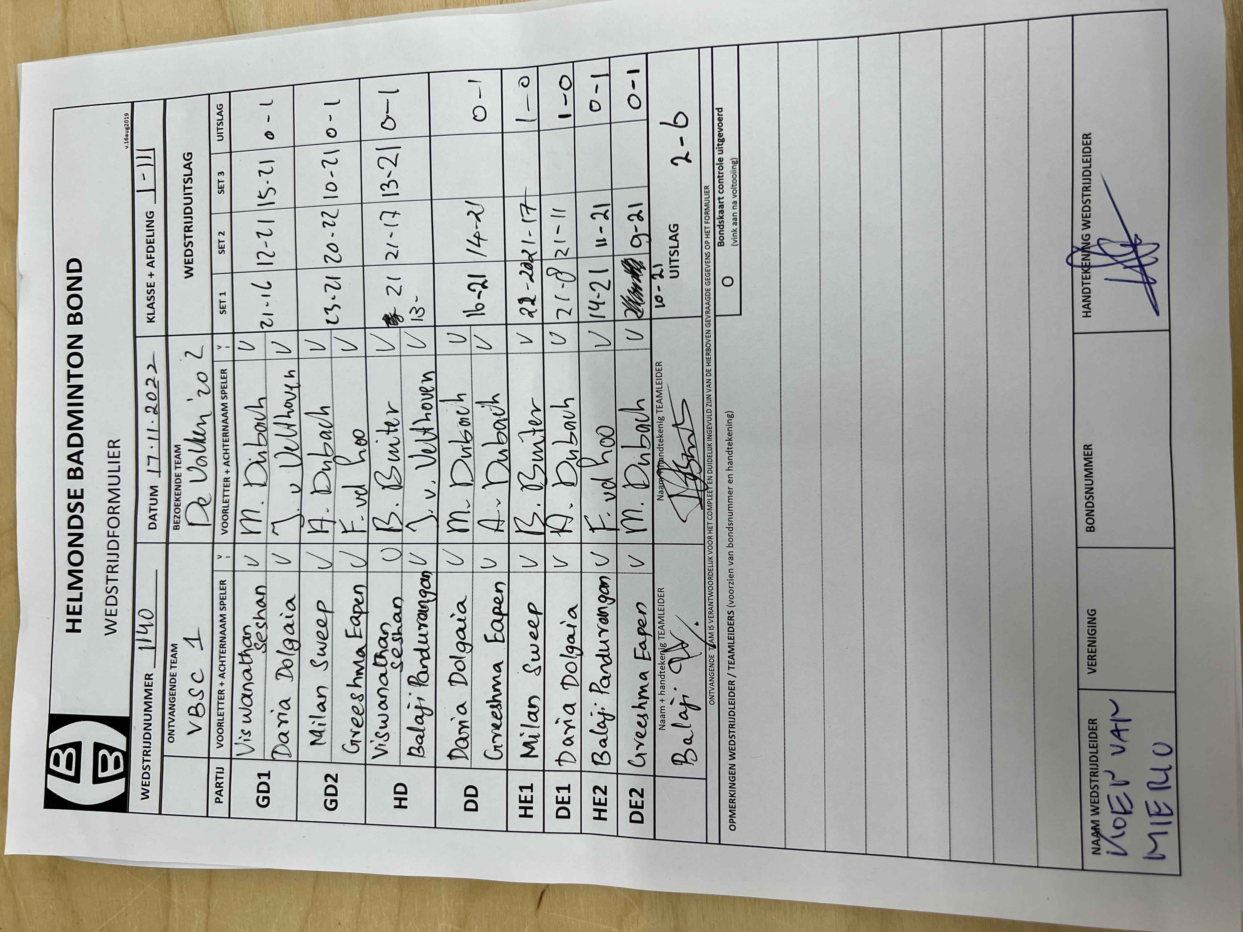 | 2071 | do. 09-03-2023 | VBSC 1 | - | Ganzeveer 2 | 11 | 6 - 2 | |||