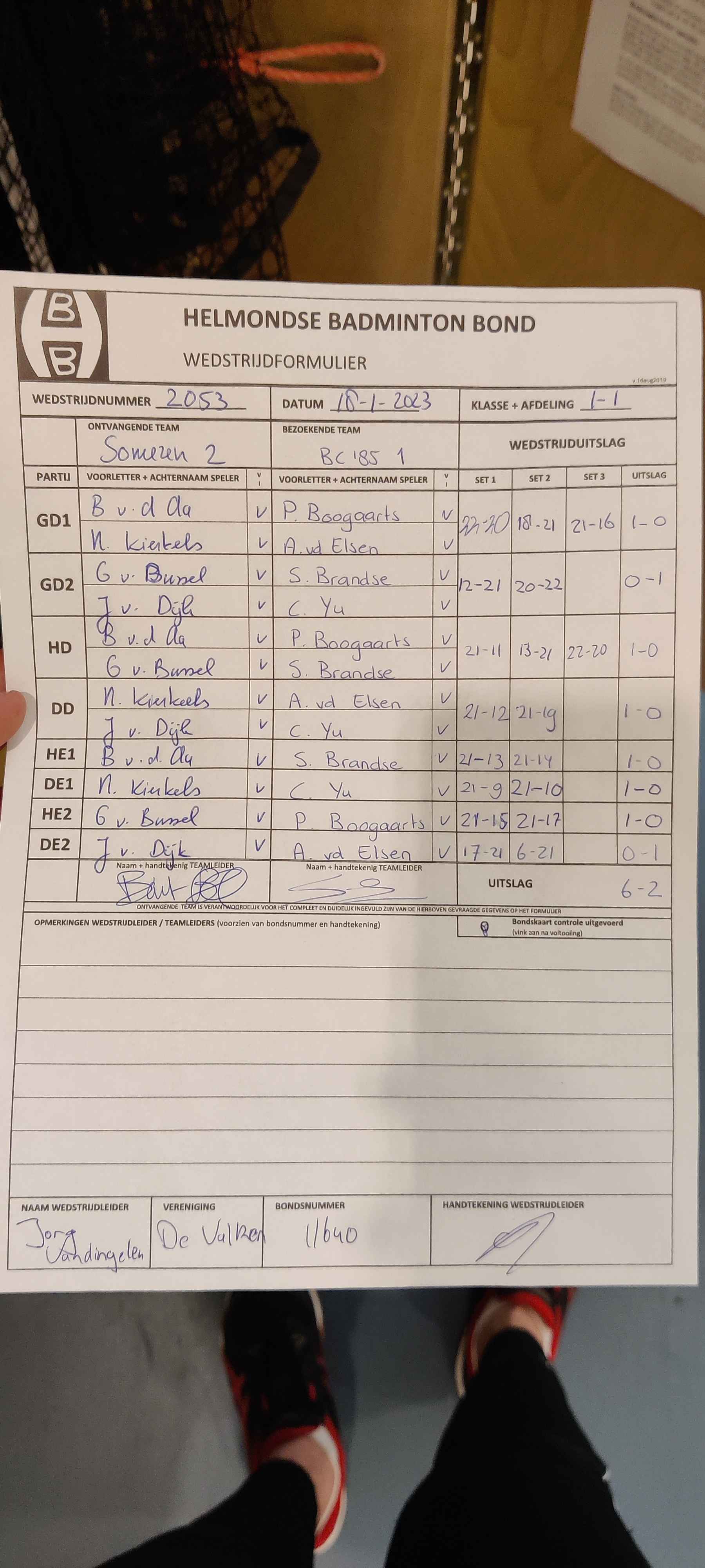 | 2053 | wo. 18-01-2023 | Someren 2 | - | BC '85 1 | 1 | 6 - 2 | |||