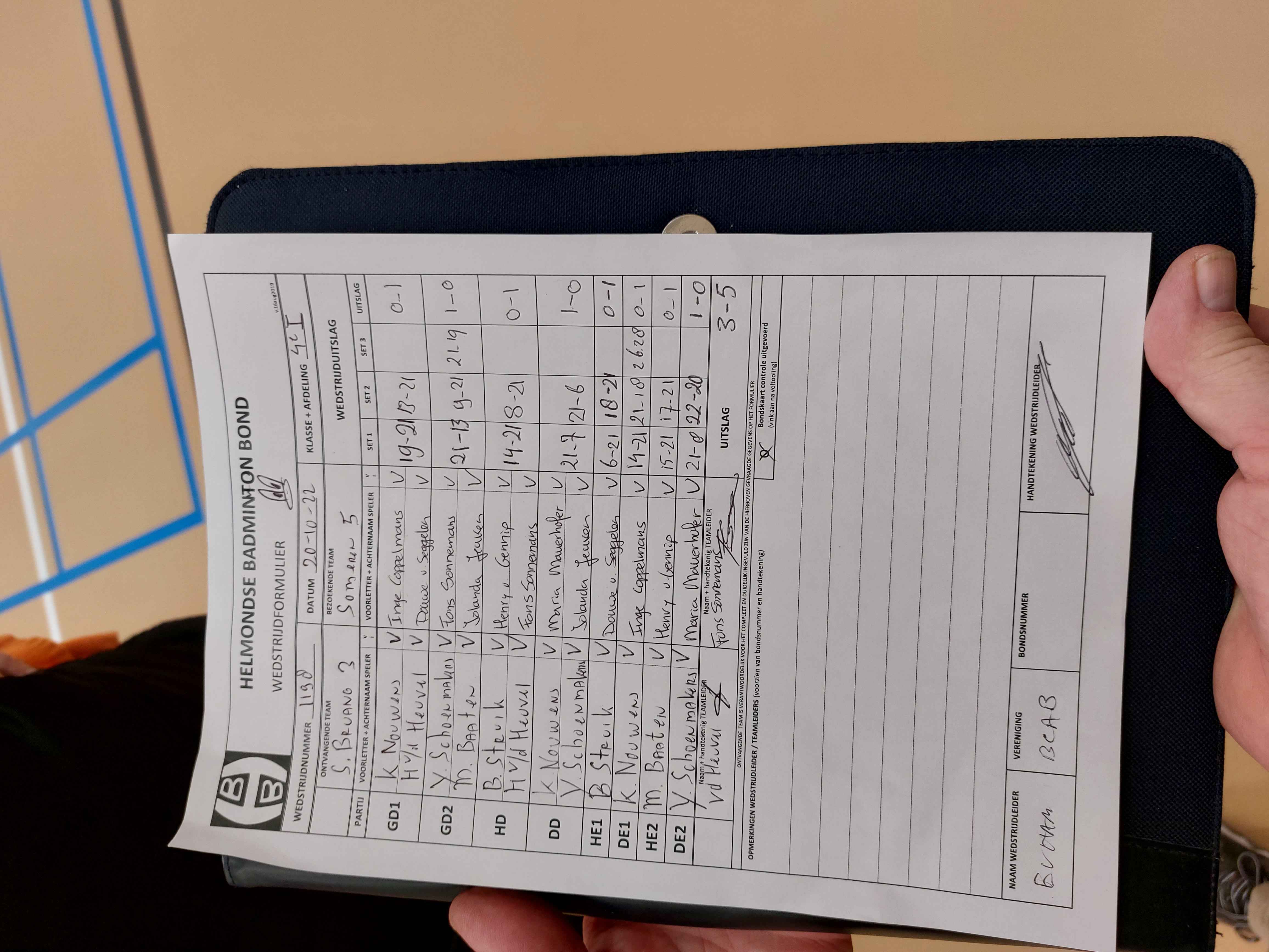 | 1198 | do. 20-10-2022 | Smashing Bruang 3 | - | Someren 5 | 3 | 3 - 5 | |||