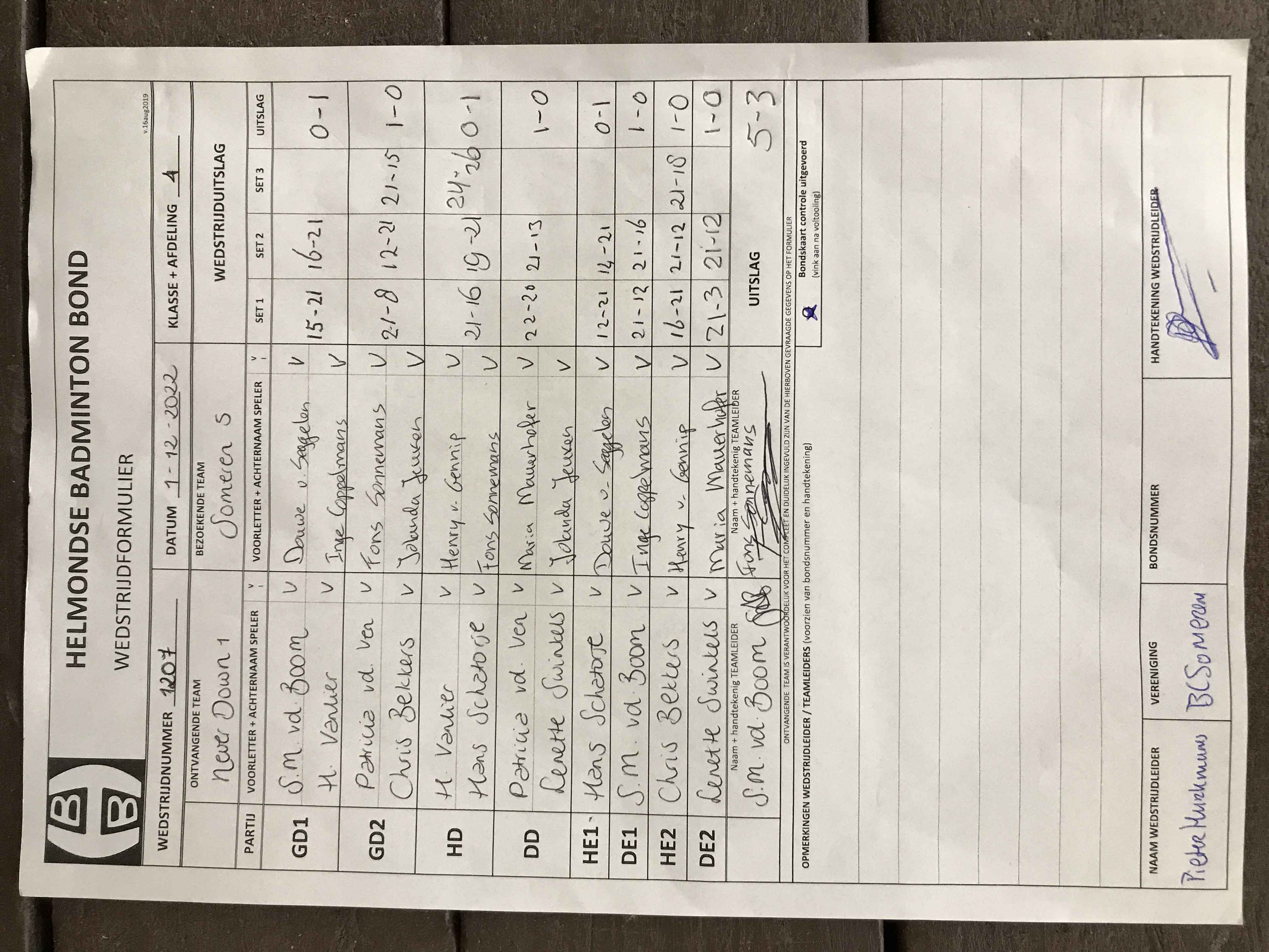 | 1207 | do. 01-12-2022 | Never Down 1 | - | Someren 5 | 12 | 5 - 3 | |||