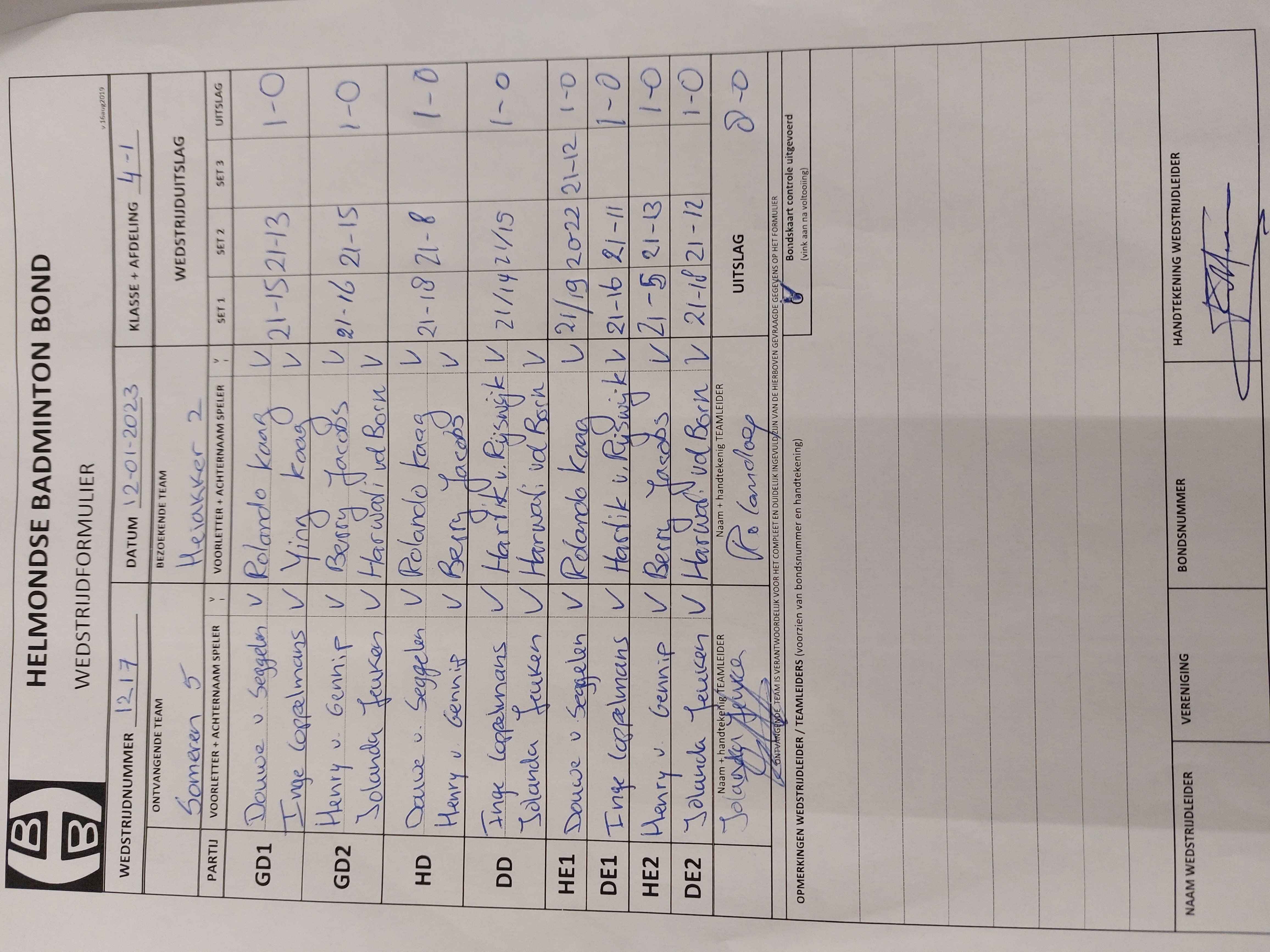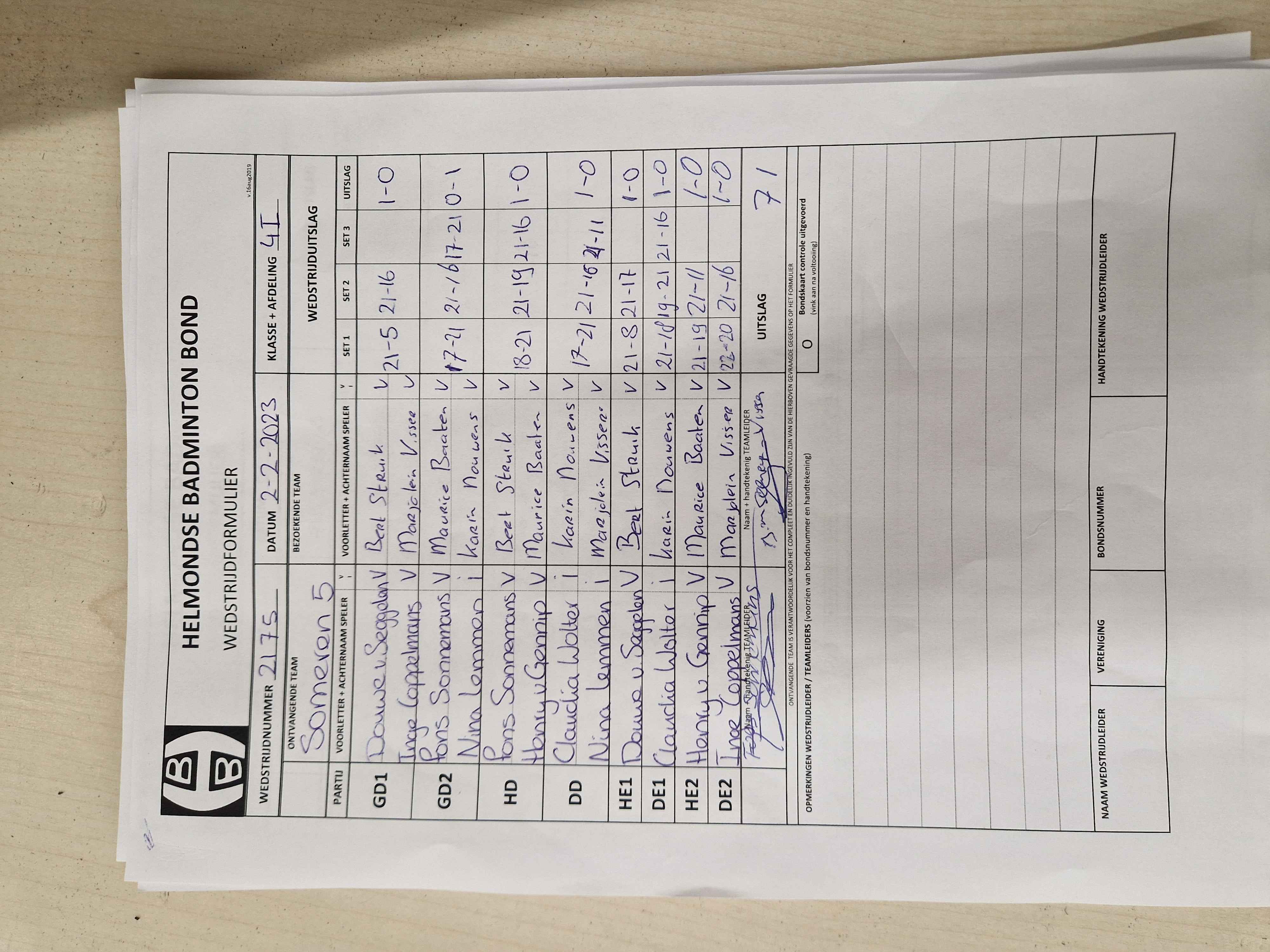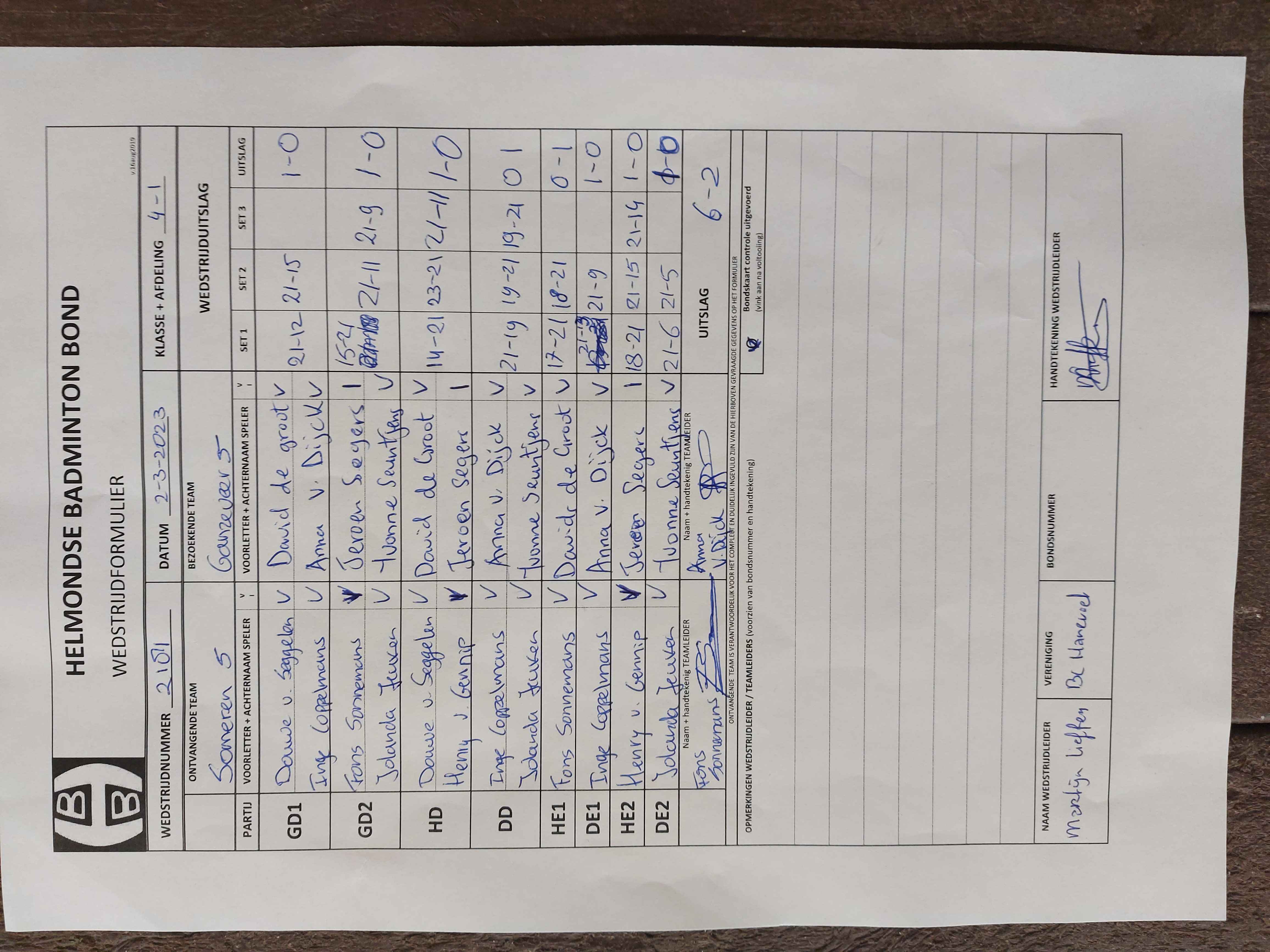 | 2178 | do. 09-02-2023 | Someren 5 | - | Gemert 4 | 14 | 6 - 2 | |||
