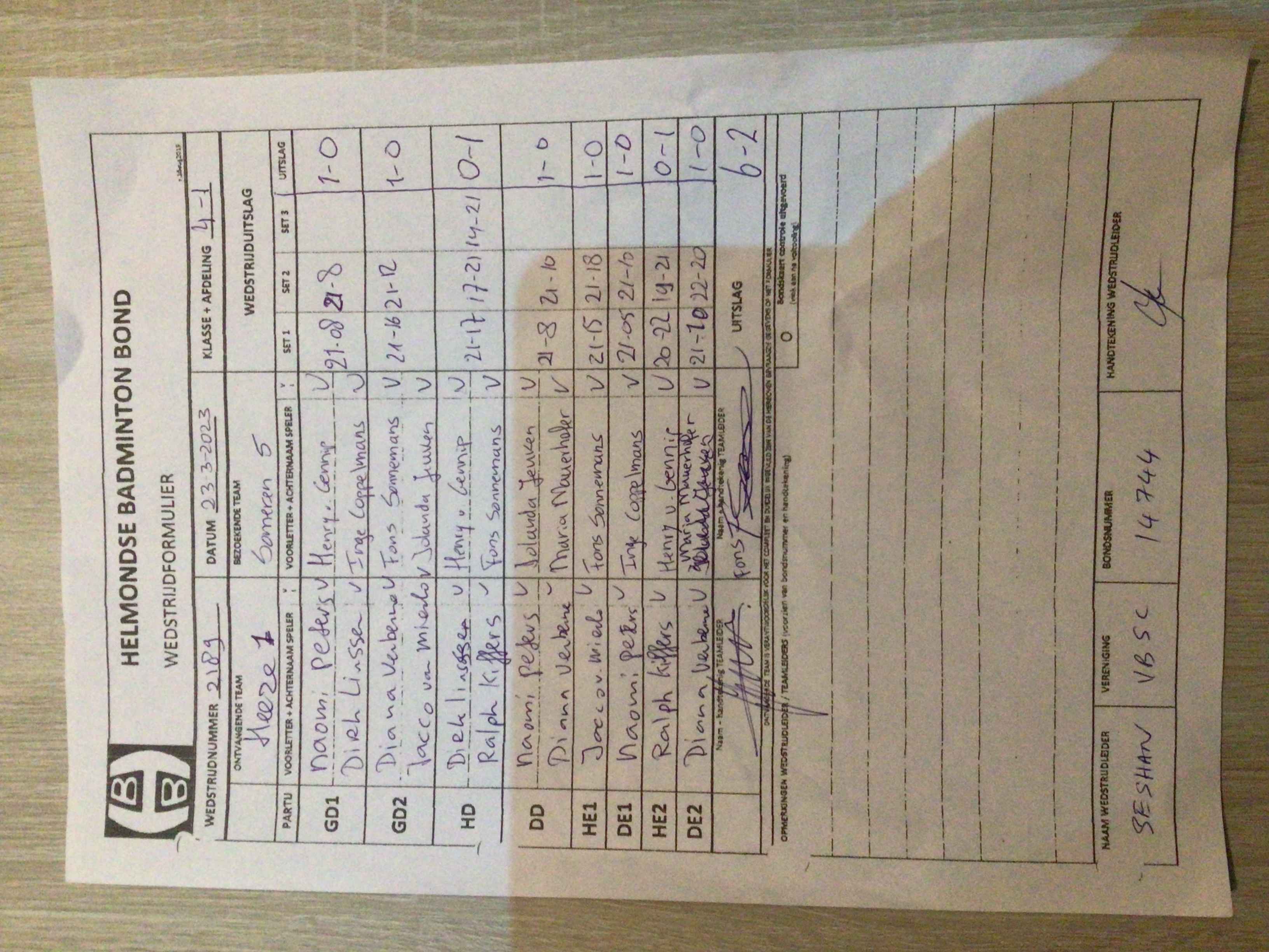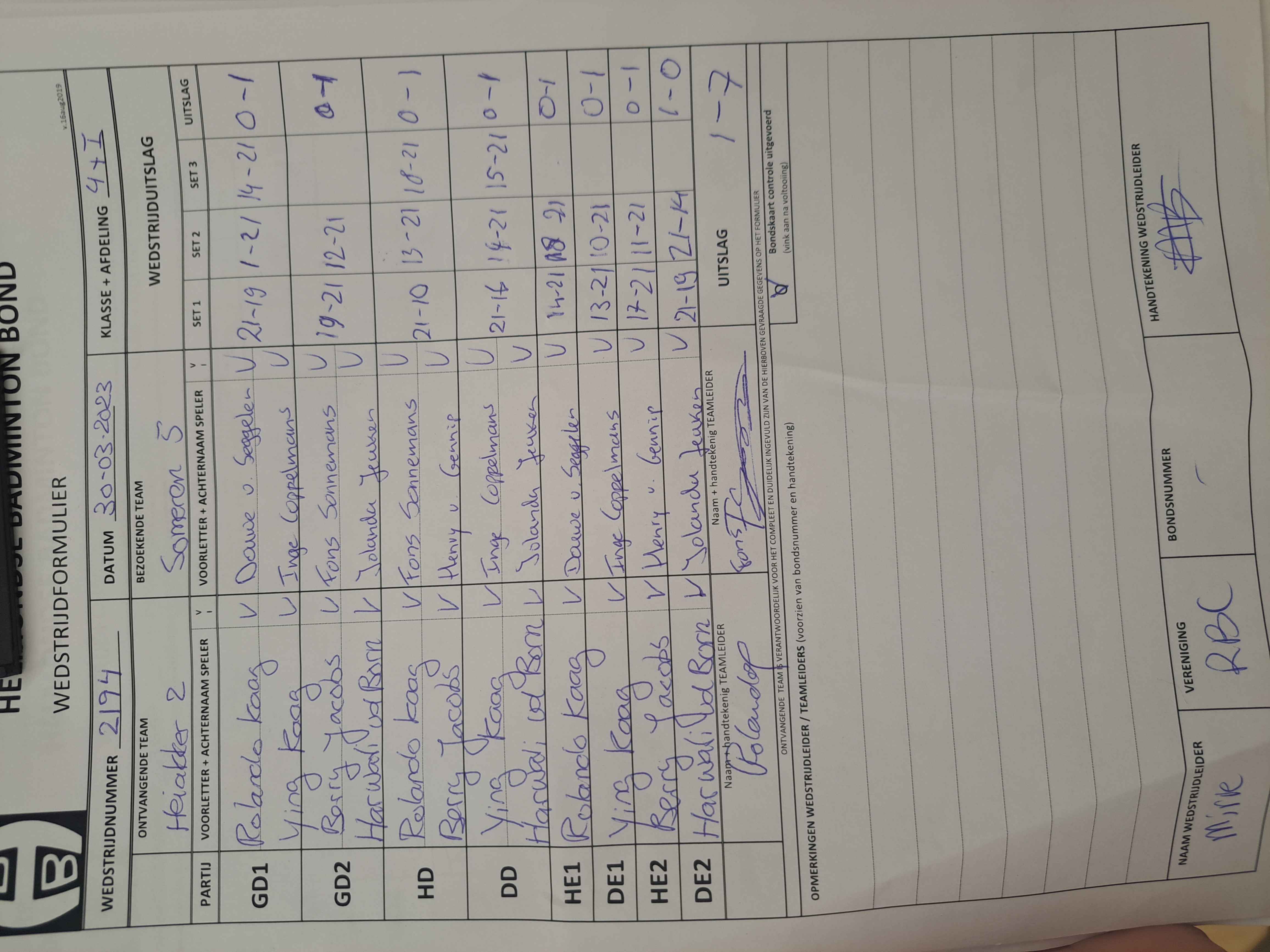 | 2189 | do. 23-03-2023 | Heeze 1 | - | Someren 5 | 2 | 6 - 2 | |||