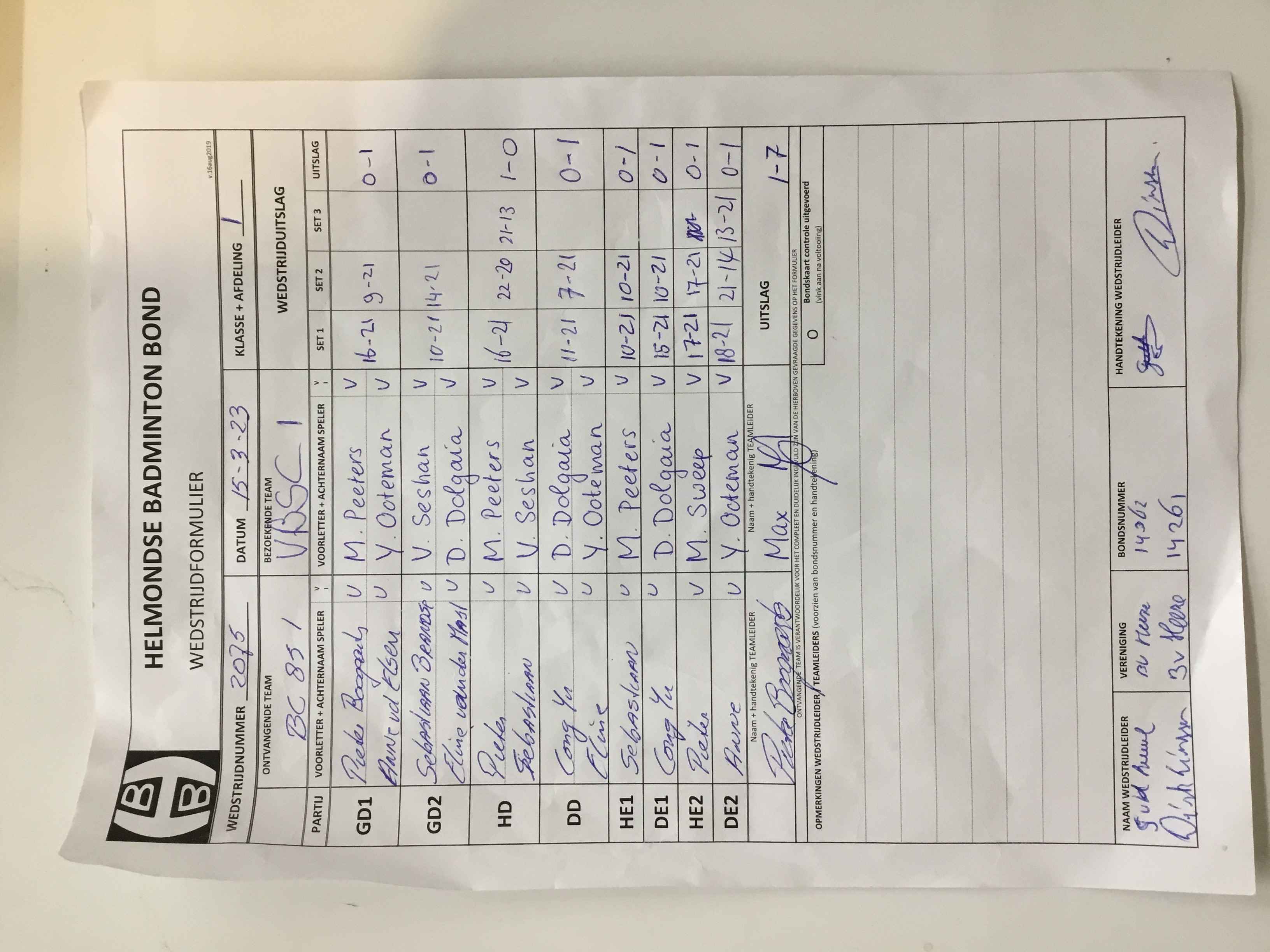 | 2075 | wo. 15-03-2023 | BC '85 1 | - | VBSC 1 | 12 | 1 - 7 | |||