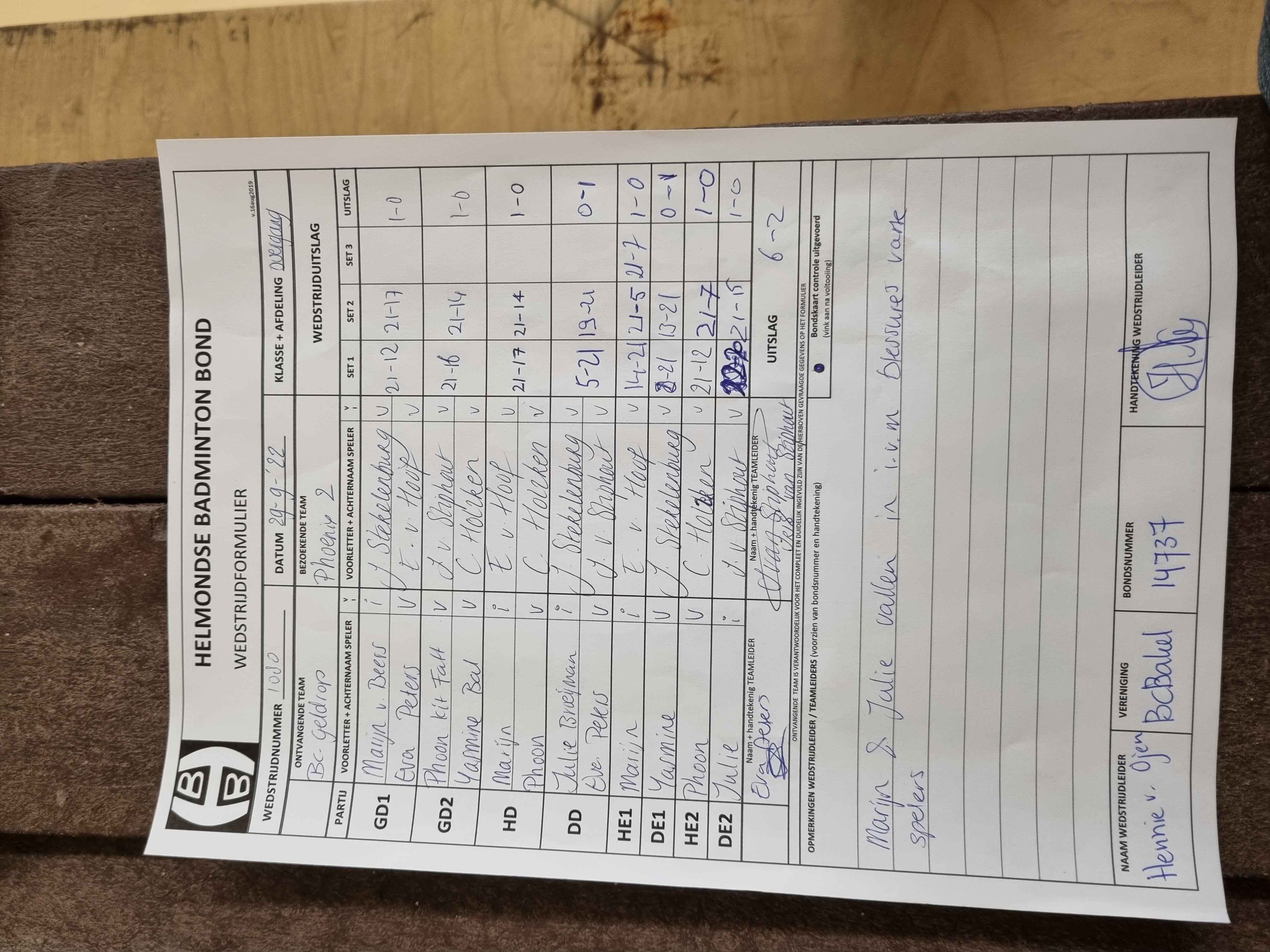 | 1080 | do. 29-09-2022 | Geldrop 1 | - | Phoenix 2 | 4 | 6 - 2 | |||