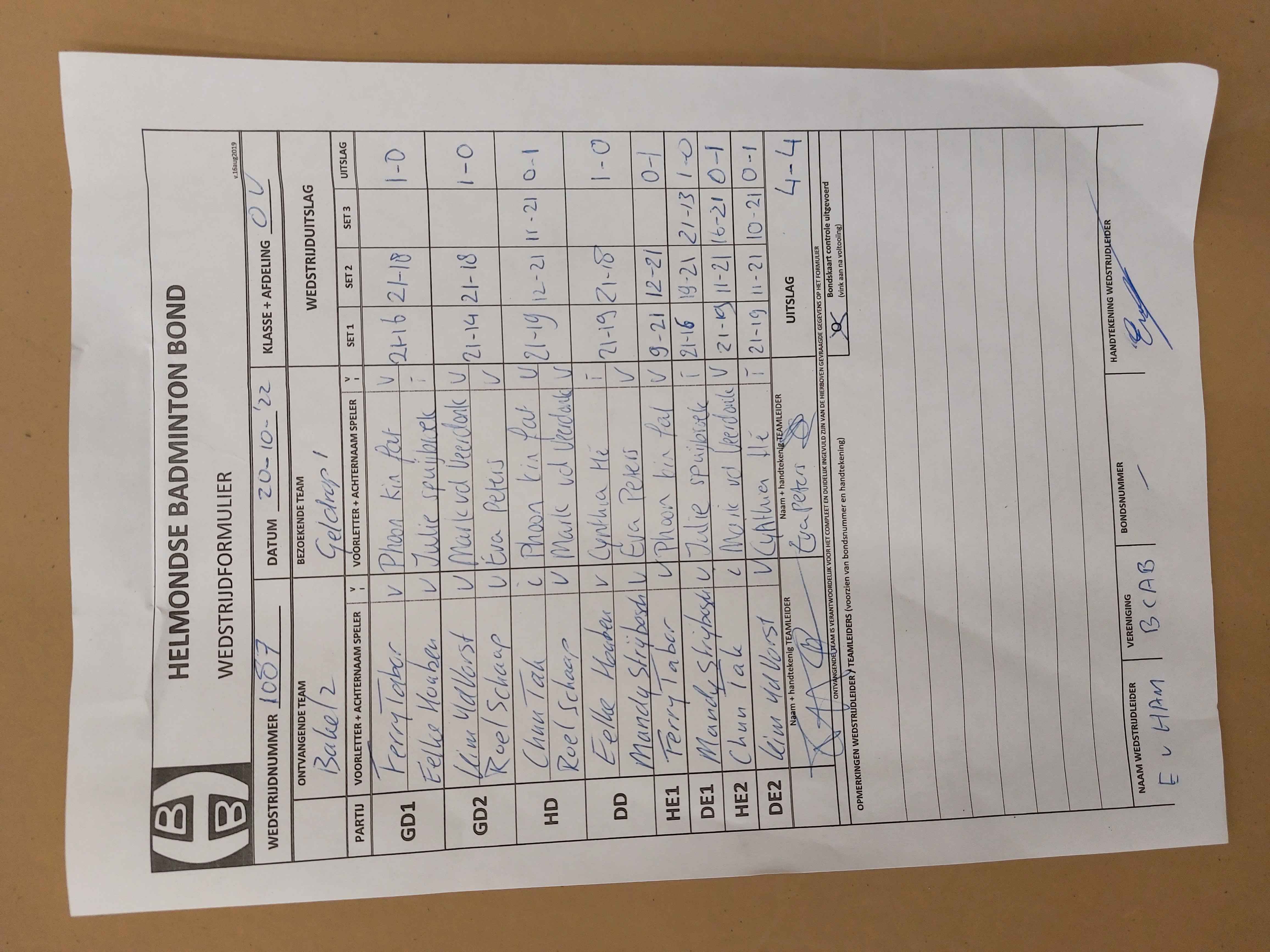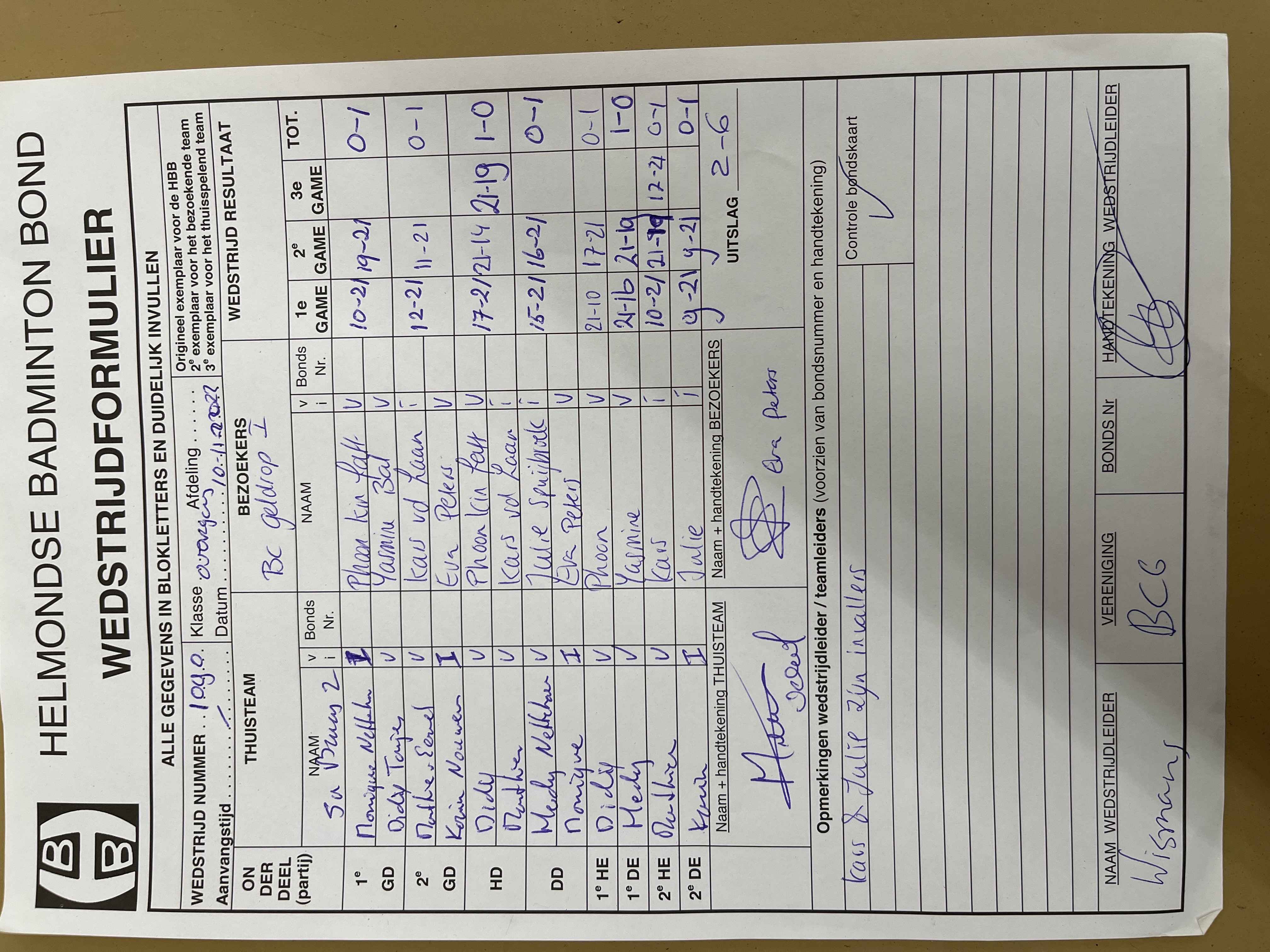 | 1090 | do. 10-11-2022 | Smashing Bruang 2 | - | Geldrop 1 | 14 | 2 - 6 | |||