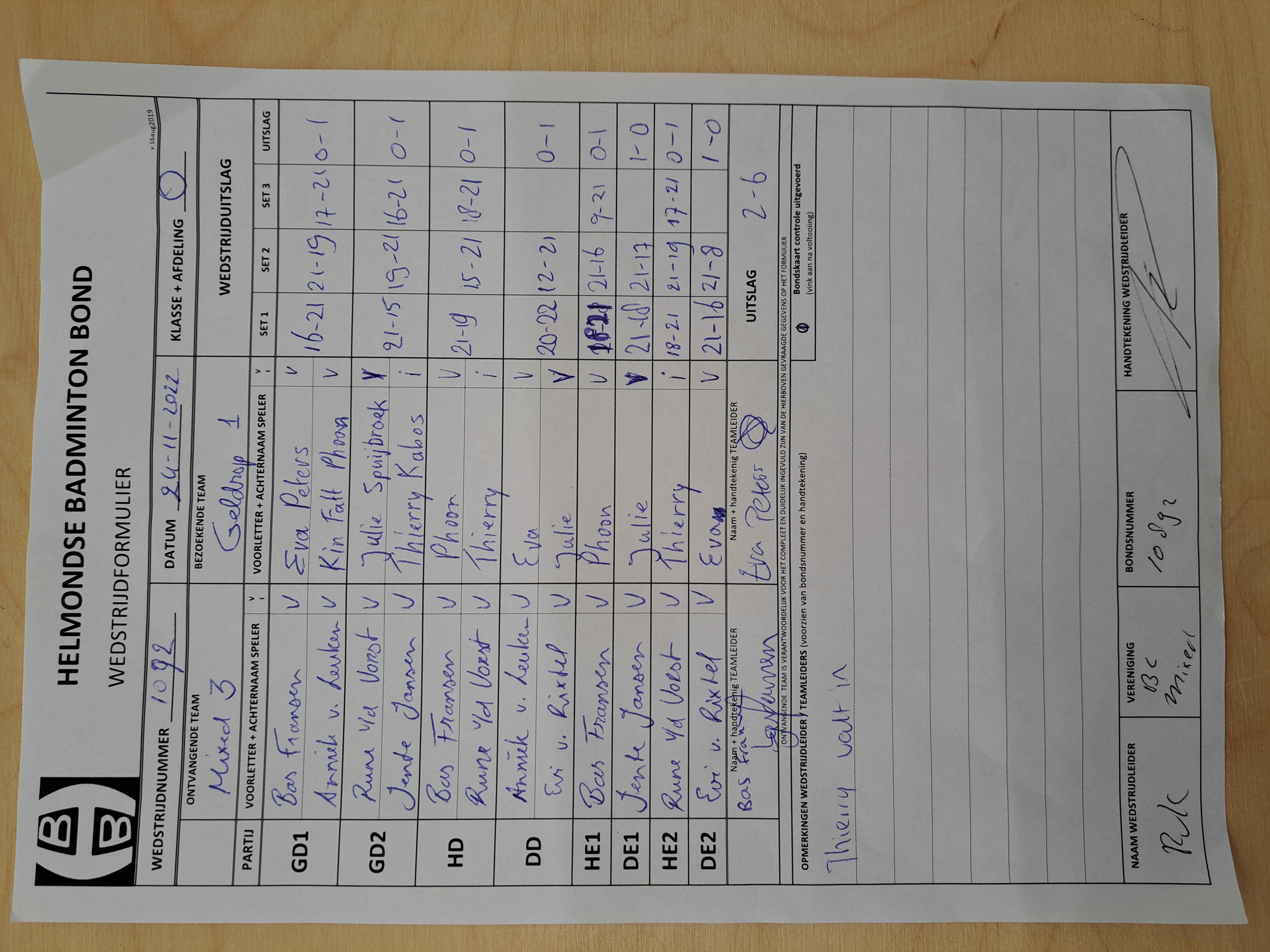 | 1092 | do. 24-11-2022 | Mixed 3 | - | Geldrop 1 | 4 | 2 - 6 | |||