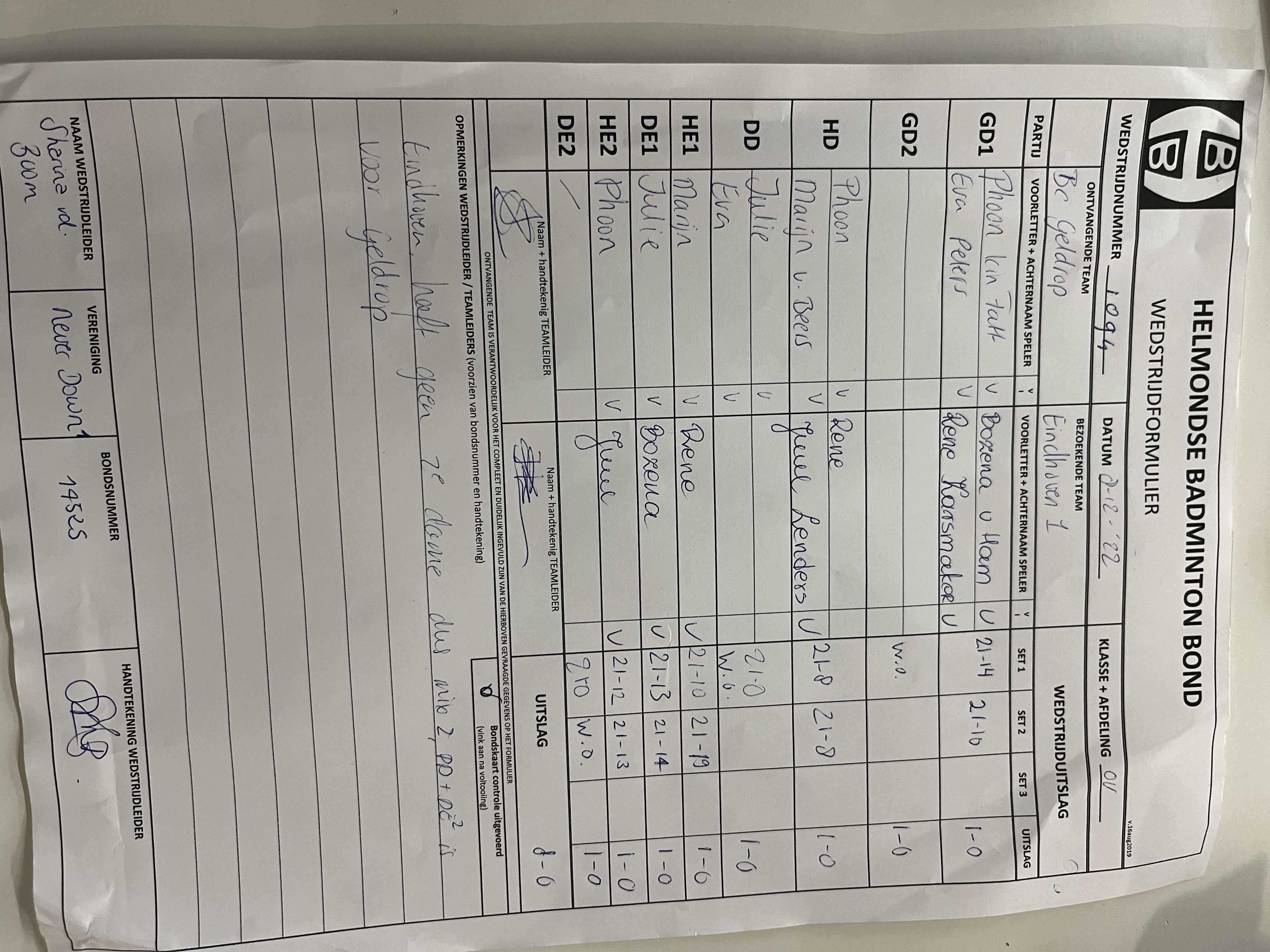 | 1094 | do. 08-12-2022 | Geldrop 1 | - | Eindhoven 1 | 1 | 8 - 0 | |||
