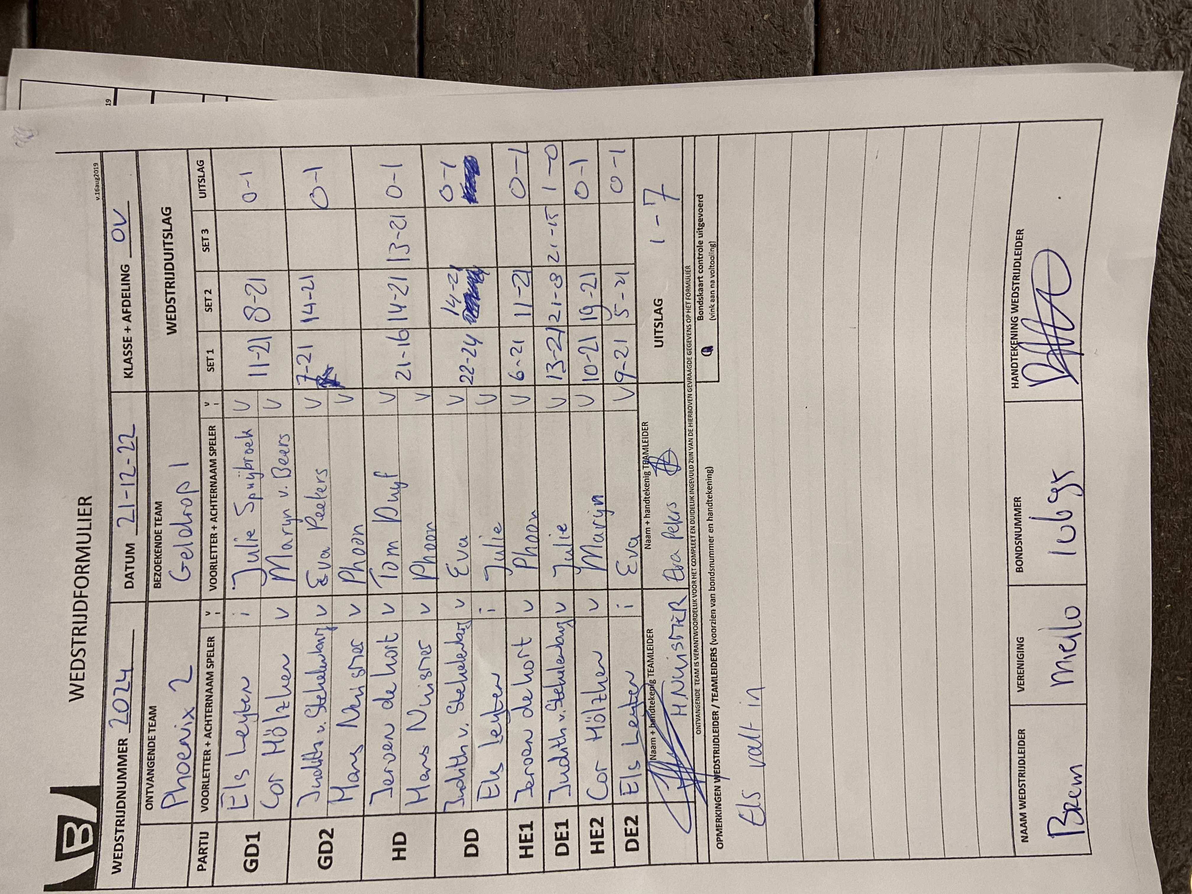 | 2024 | wo. 21-12-2022 | Phoenix 2 | - | Geldrop 1 | 15 | 1 - 7 | |||