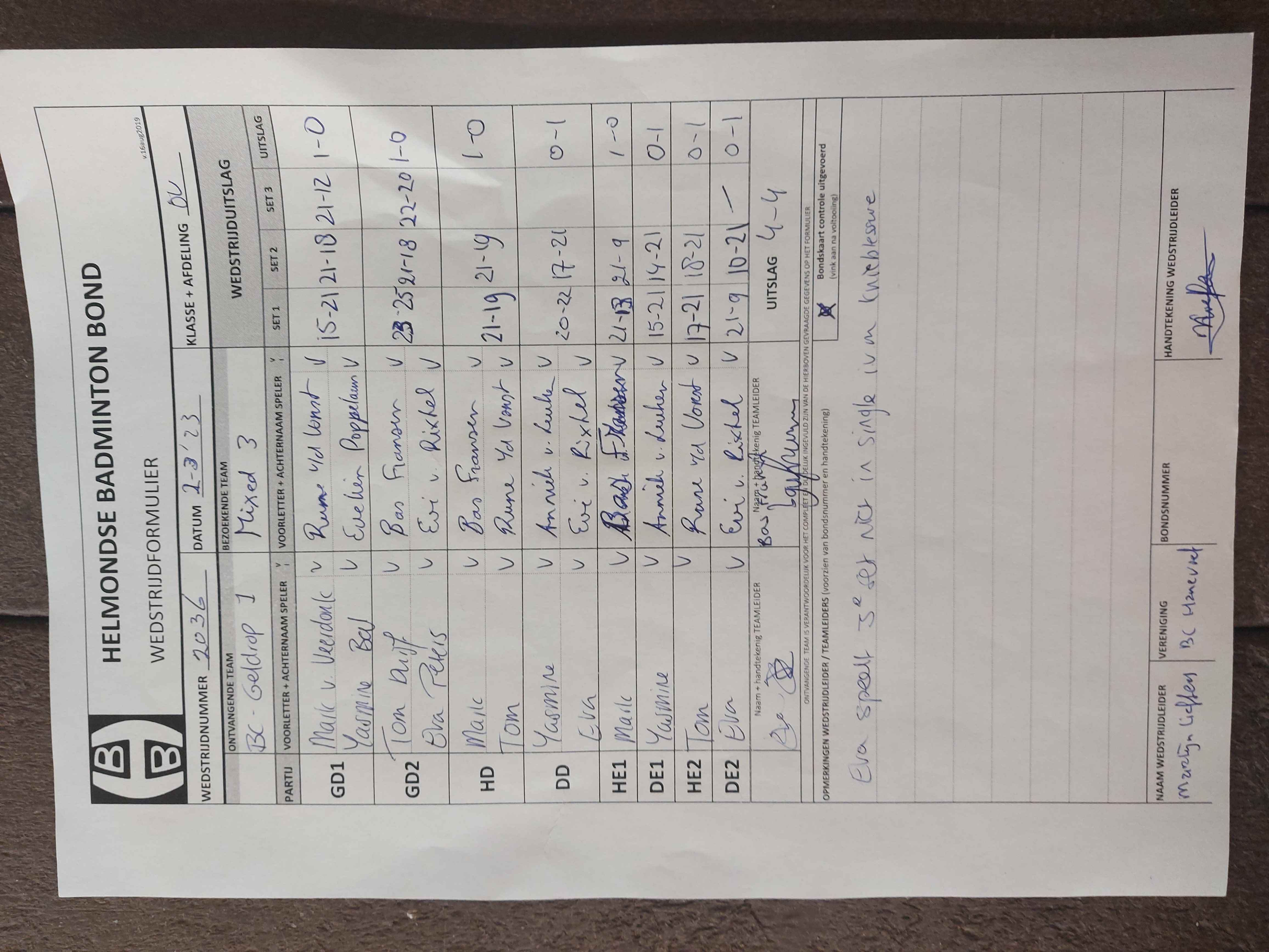| 2036 | do. 02-03-2023 | Geldrop 1 | - | Mixed 3 | 2 | 4 - 4 | |||