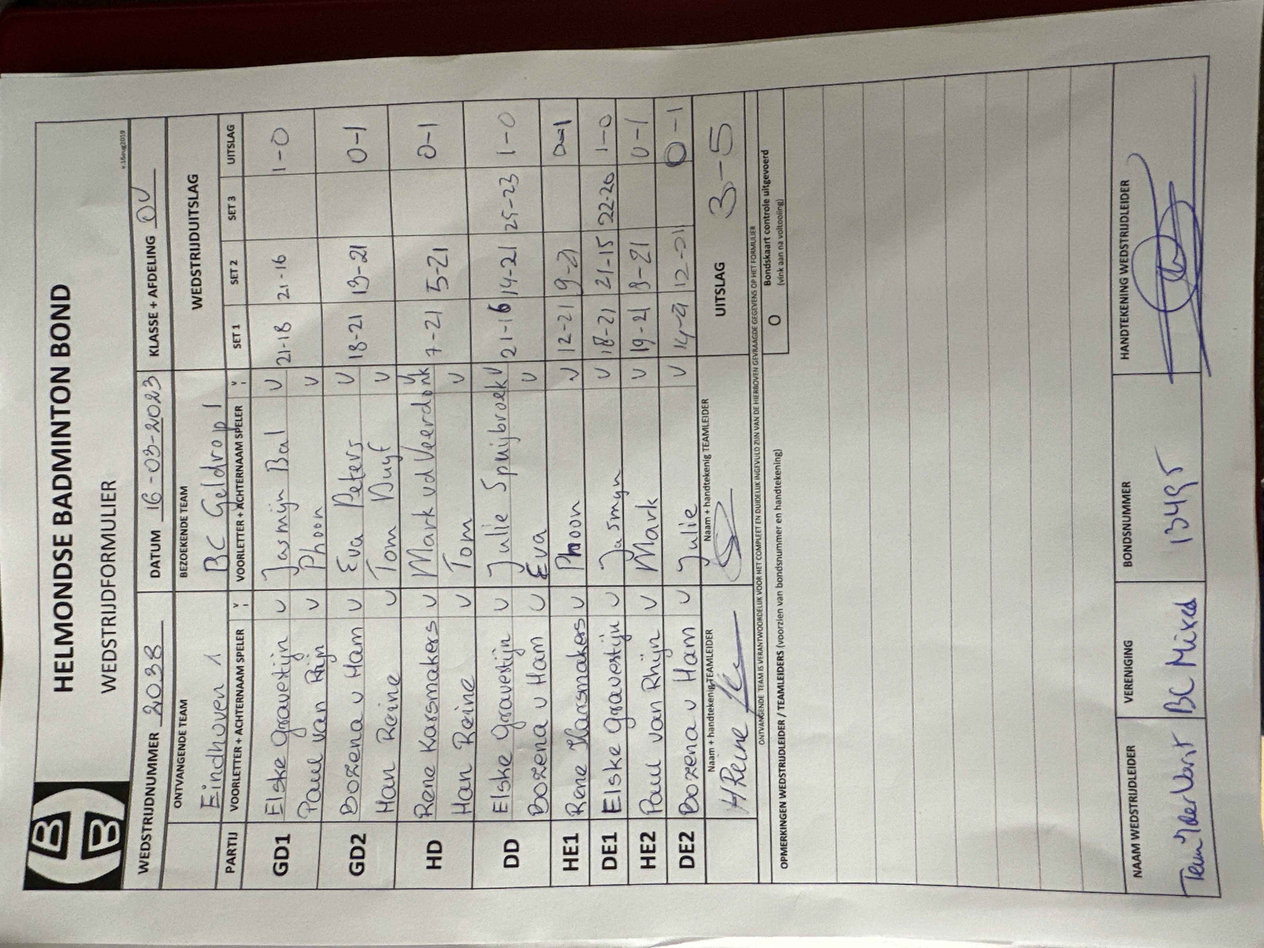 | 2038 | do. 16-03-2023 | Eindhoven 1 | - | Geldrop 1 | 4 | 3 - 5 |